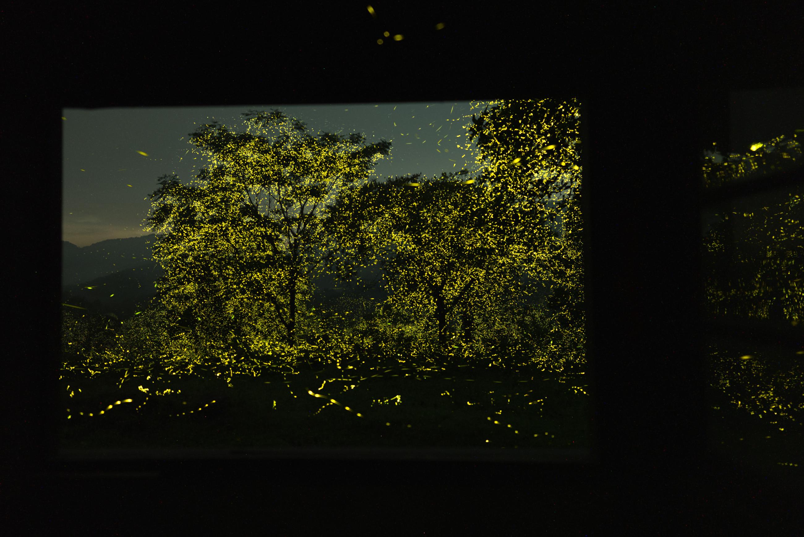 Such large congregations of fireflies are very rare, and this series captures the phenomenon of fireflies turning an entire forest into a magical carpet of yellowish-green light. The images were created by stacking several photographs.
