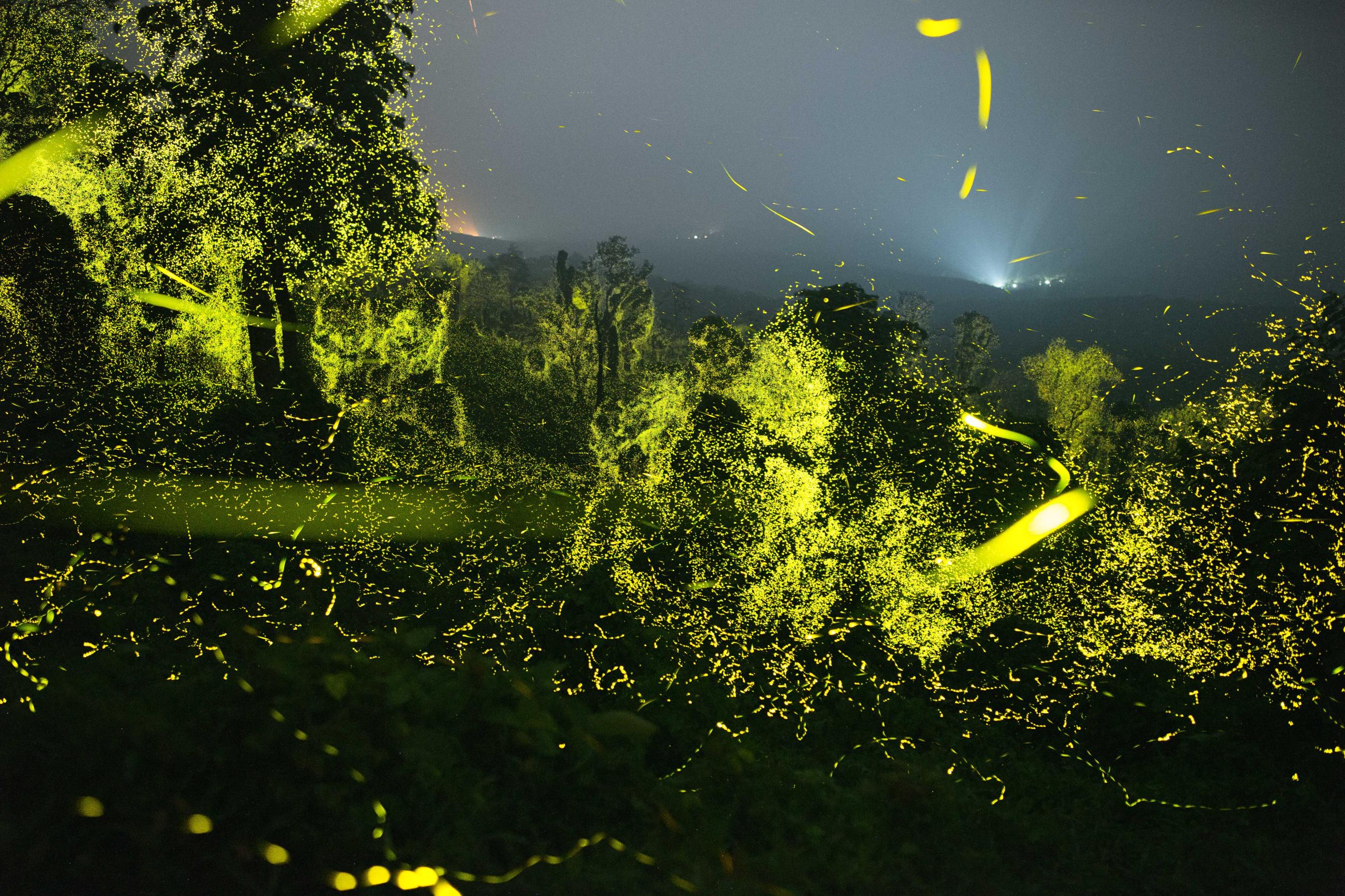 I was fascinated by the hundreds of fireflies flashing at the edge of the forest, but recalled hearing stories of trees laden with fireflies deep in the forest. So, in April 2022, I set out to a remote area of the reserve with forest officials. Flashes of green started appearing at twilight and as the place grew dark, millions of fireflies started synchronising their flashes across several trees. The flashes would start in one tree and continue across other trees like a Mexican wave.