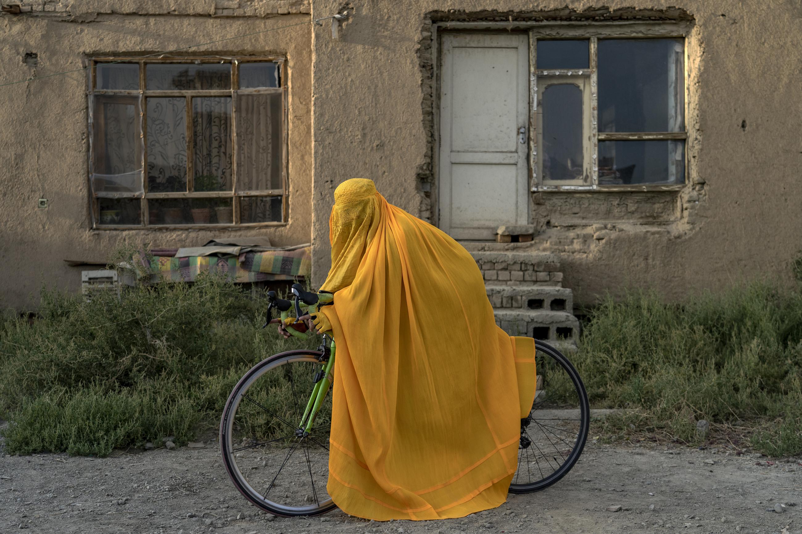 A number of women and girls who used to play sports pose for portraits with the equipment of the sports they loved. They hid their identities with their burqas, the robes and hood that cover the face, leaving only a mesh to see through. They don’t normally wear the burqa, but said they sometimes choose to when they go outside and want to remain anonymous and avoid harassment. The ban on sports is just one way the Taliban has shut down life for girls and women since their takeover in August 2021. It has also barred girls from attending middle and high school; ordered all women to be thrown out of universities; severely limited women’s ability to work outside the home; and, in November 2022, the Taliban’s Ministry of Virtue prohibited women and girls from going to parks or gyms.