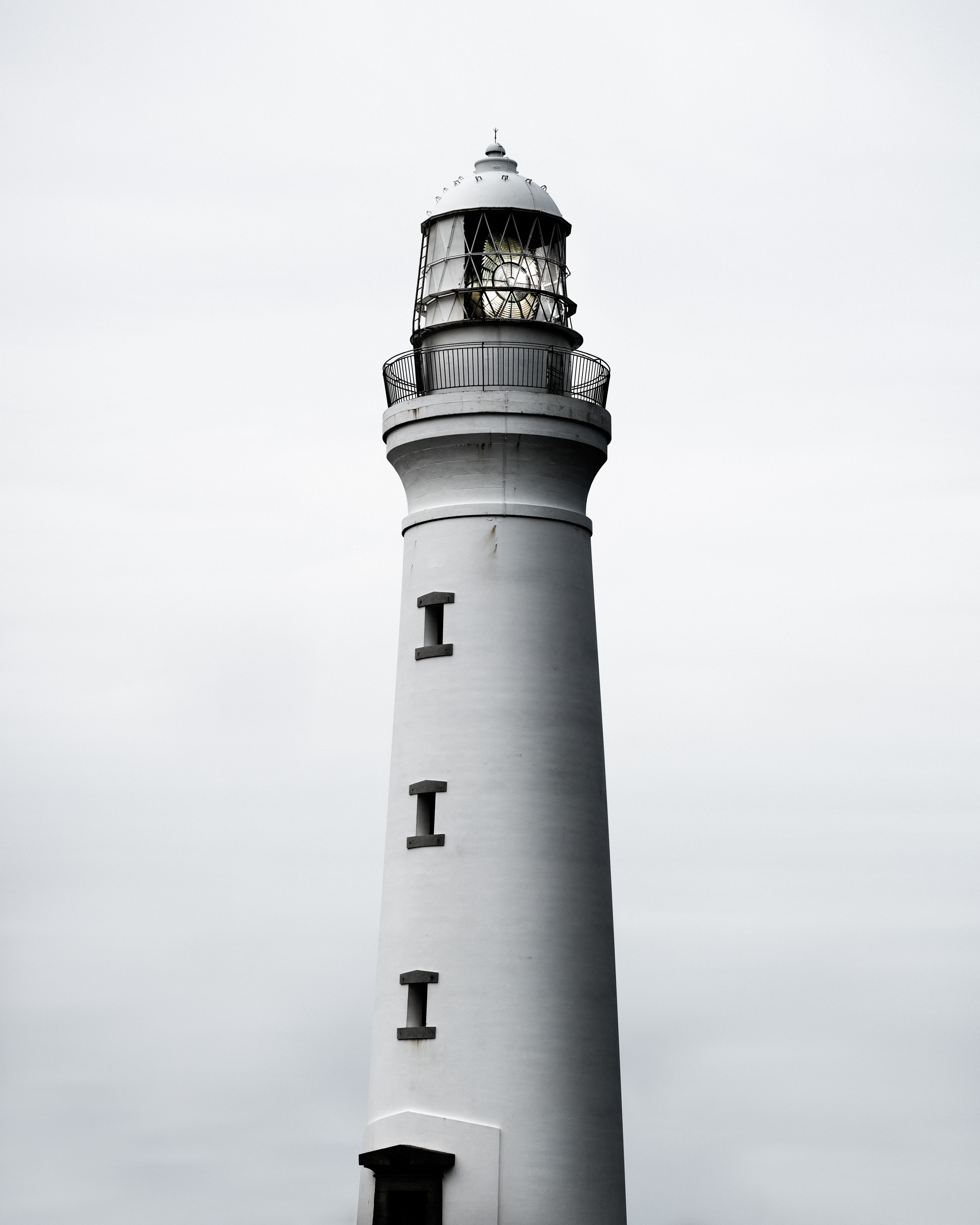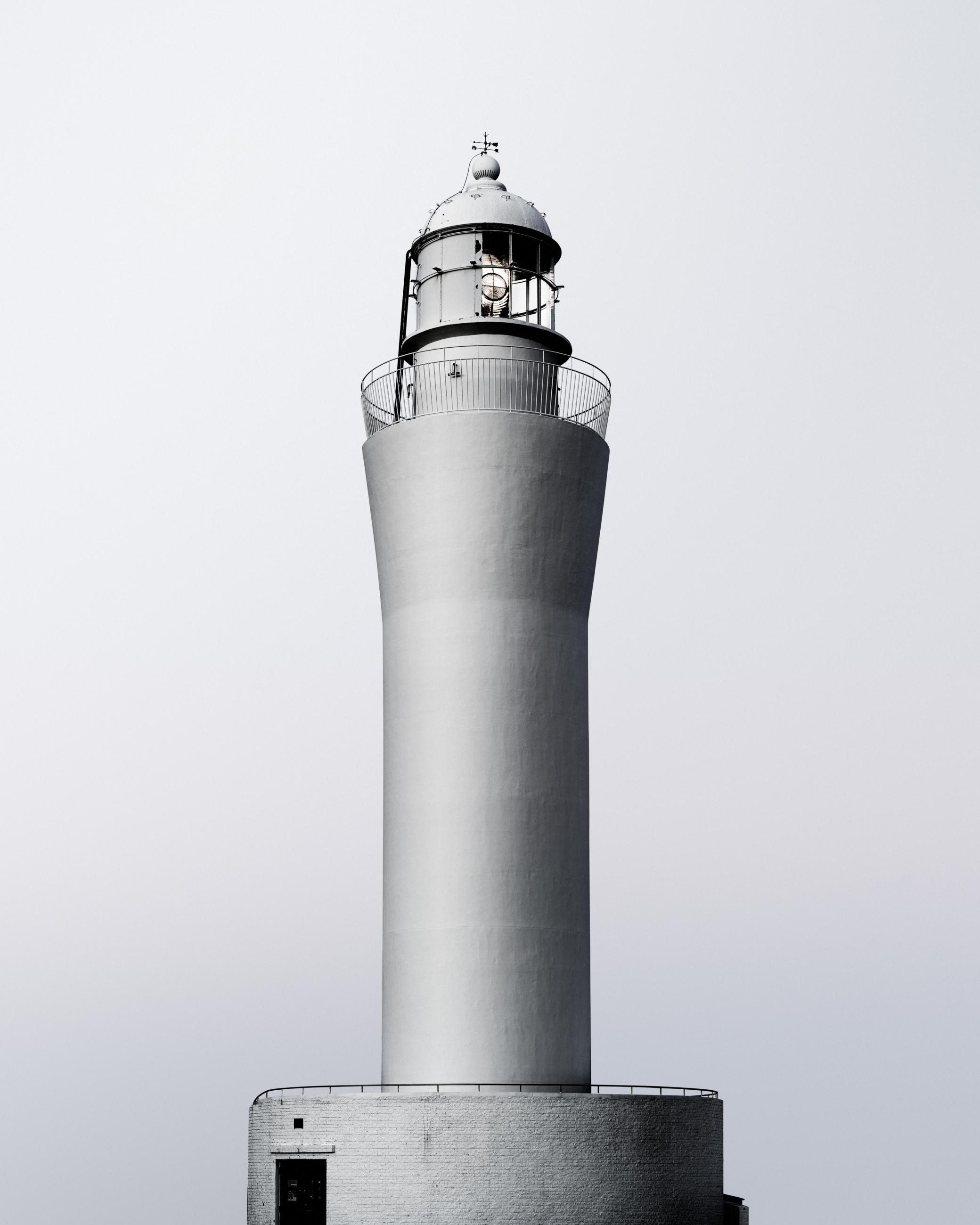 The first Western-style lighthouse was built in 1869, and they became essential for safe sea travel. However, with the spread of GPS technology, many lighthouses have outlived their usefulness. There are still 64 functioning lighthouses in Japan; the lighthouses shown in this series remain in operation at their respective capes. In order to highlight the beauty of the lighthouses I took two horizontal photographs and joined them to create a larger image, before adjusting the colours and contrast.