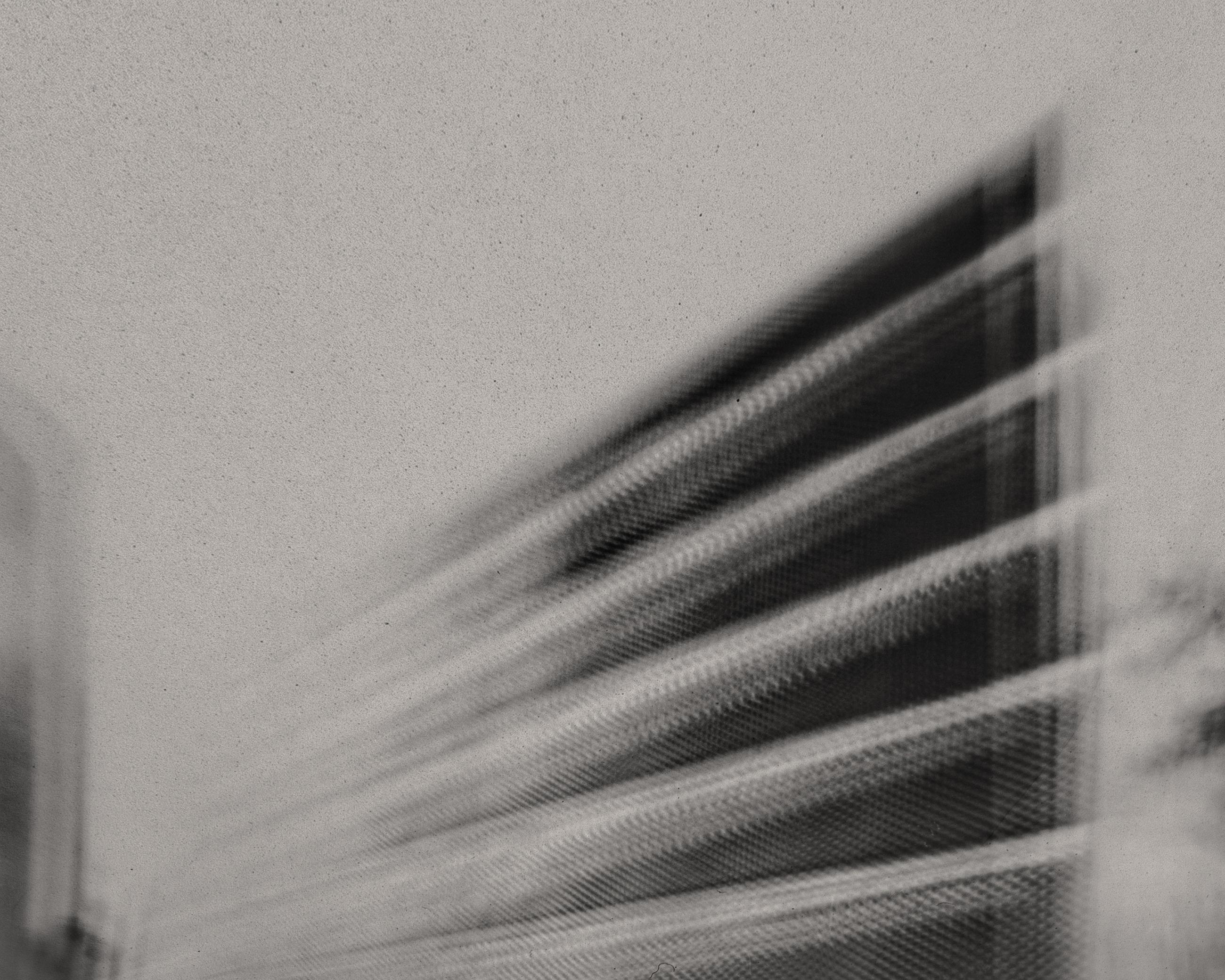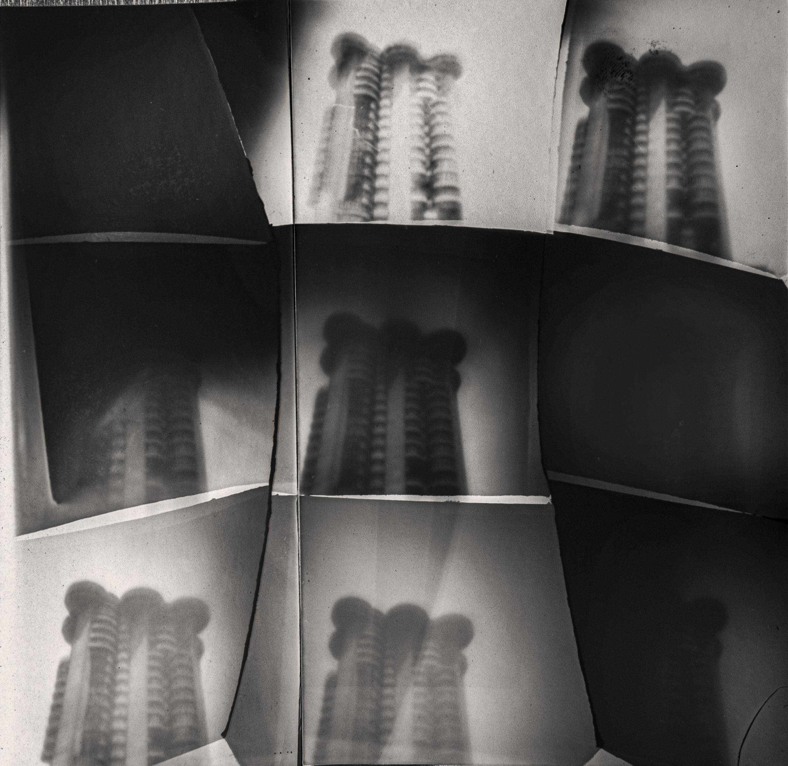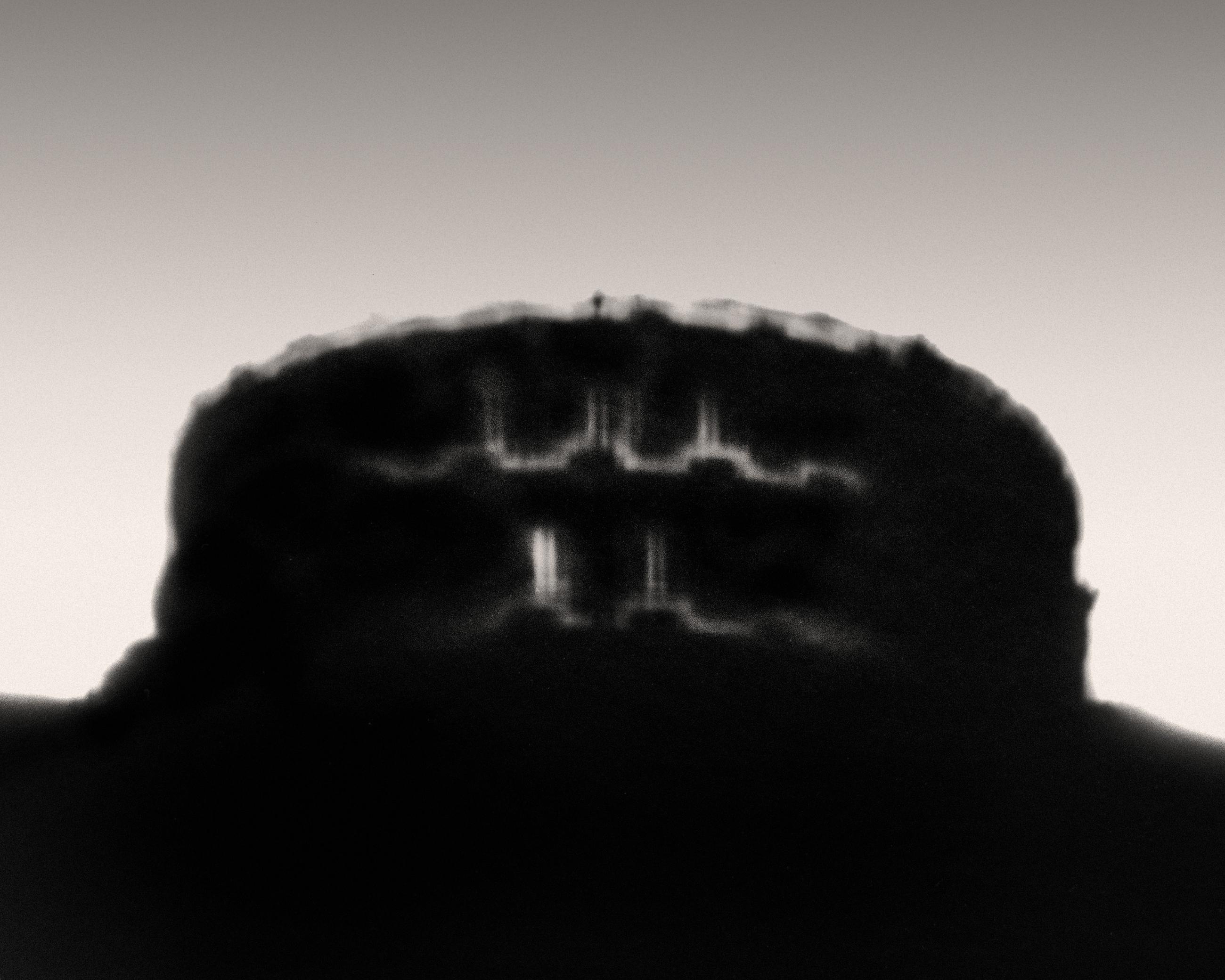 Photographing brutalist structures in Spain with a pinhole camera is based on the notion that they might be viewed differently, through long exposures which produce a less defined image with blurred lines. The resulting photographs show brutalist constructions overlaid with light, creating a dreamlike effect.
