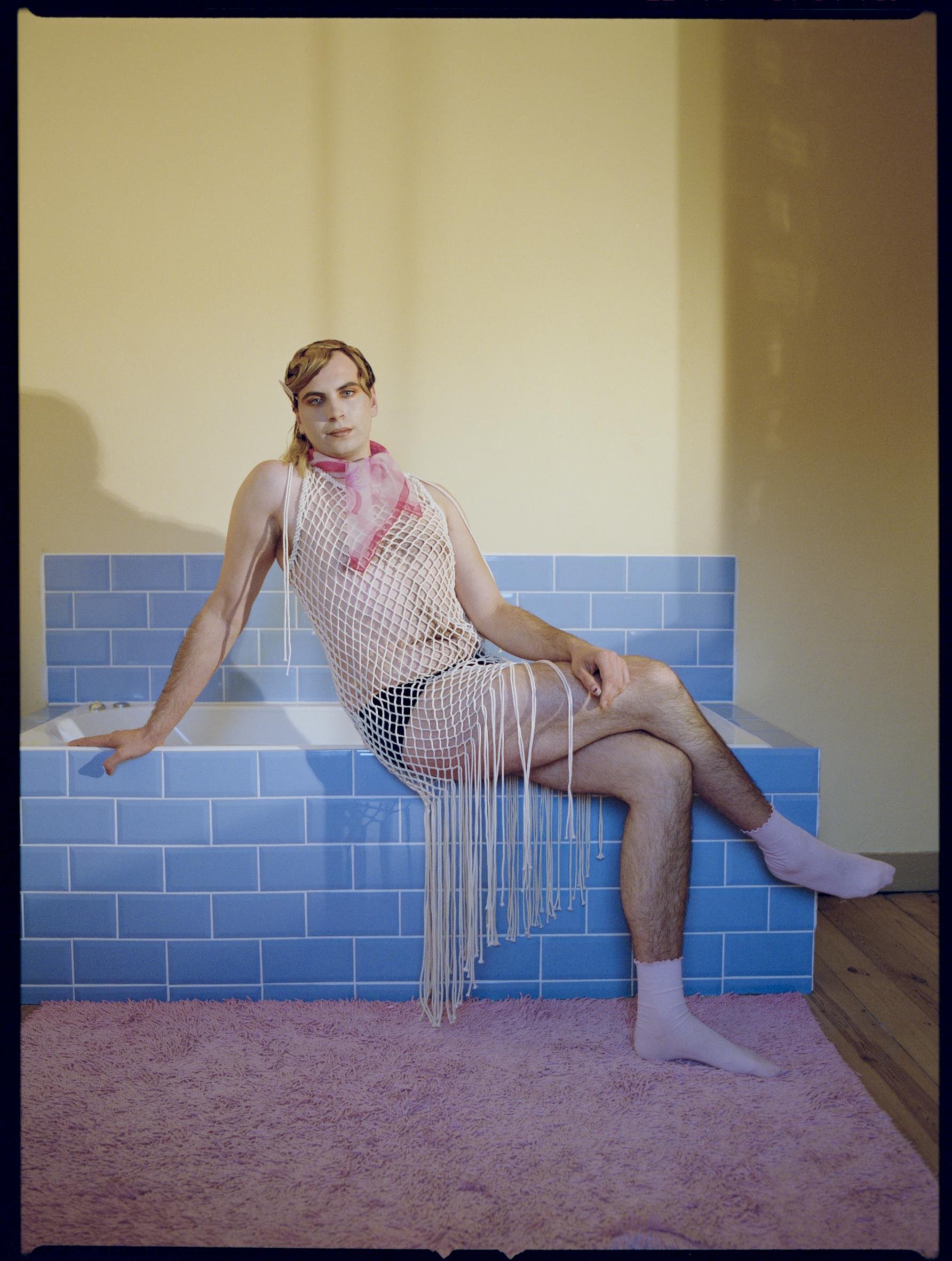 Nixie is a non-binary person who lives with Eddy, who is also non-binary. At the time of this portrait, which was taken in 2021 at their home in Ghent, Belgium, Eddy was pregnant. They are now raising the child with a gender-neutral parenting style.