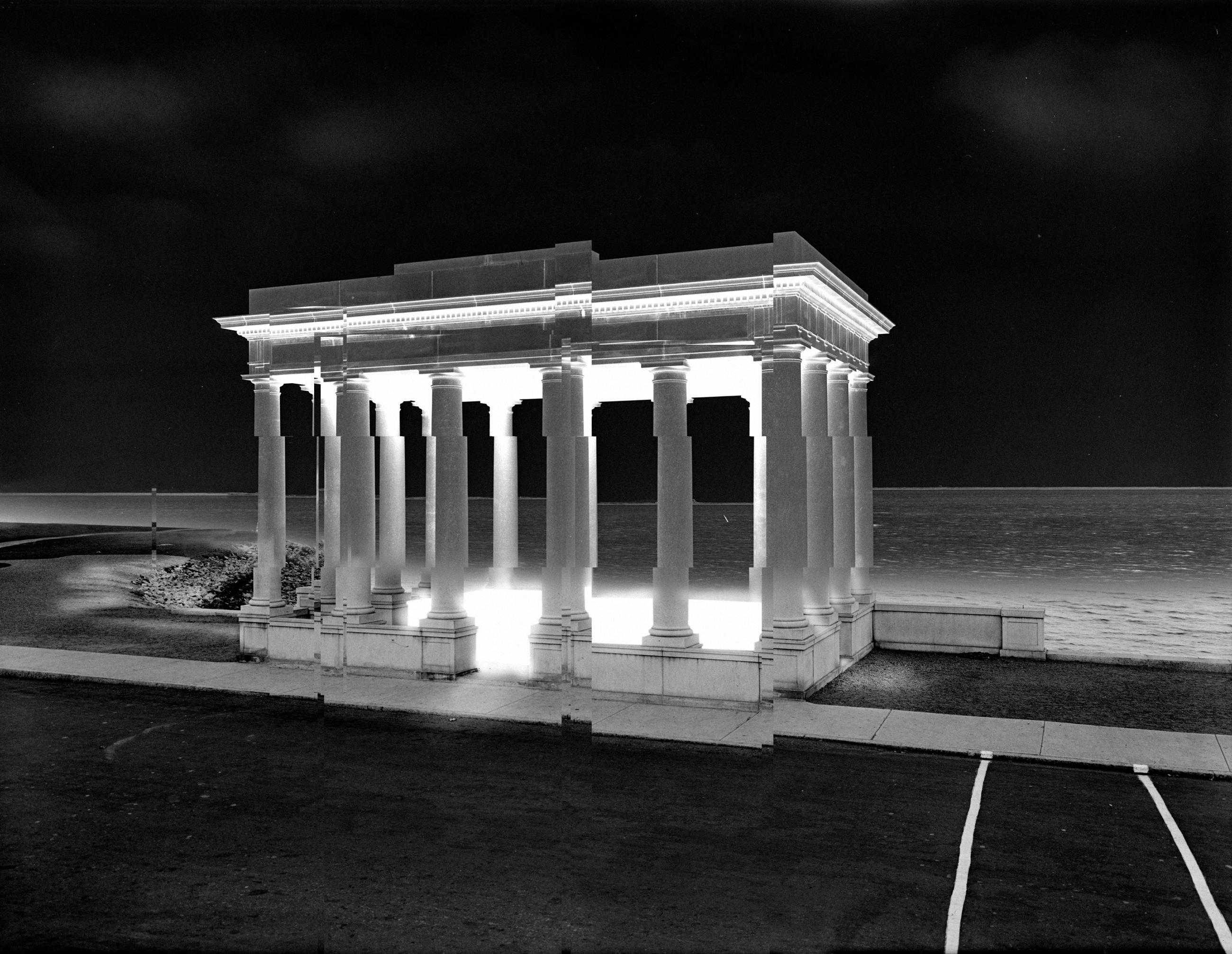 These pictures represent the question of what remains of cities; what persists of our so-called civilization. The landscapes are bathed in deep blacks and burning whites, with velvety greys tracing the progress of roots and ripples in water. My background as a painter allows me to depict the textures and patterns with care. These collages become a game between analog and digital; a one-time jump that creates a surreal world and generates a gaze into a new reality that plays with perception. The viewer is led through scenes that are slow to unravel, that ask for and reward longer viewing.