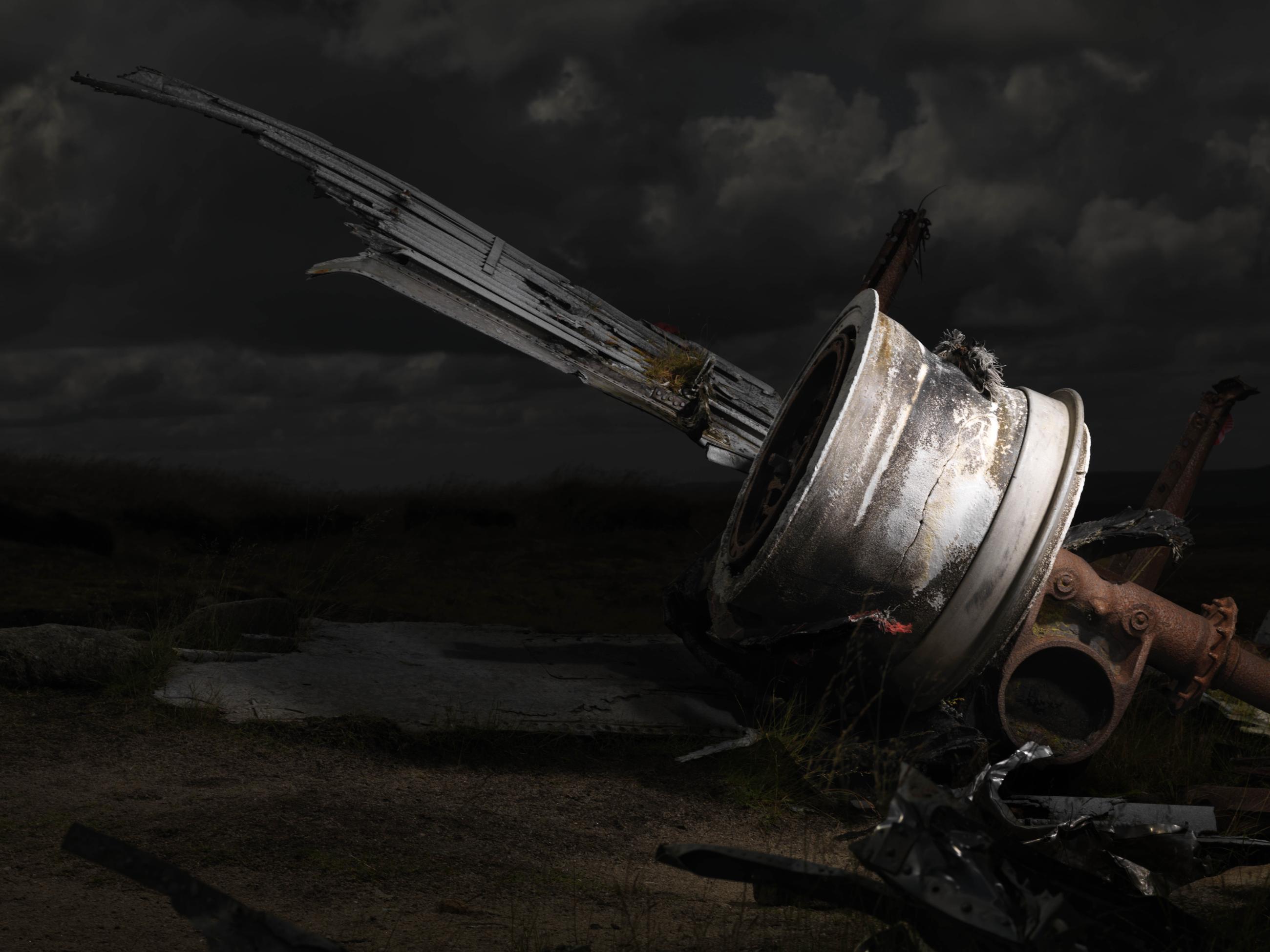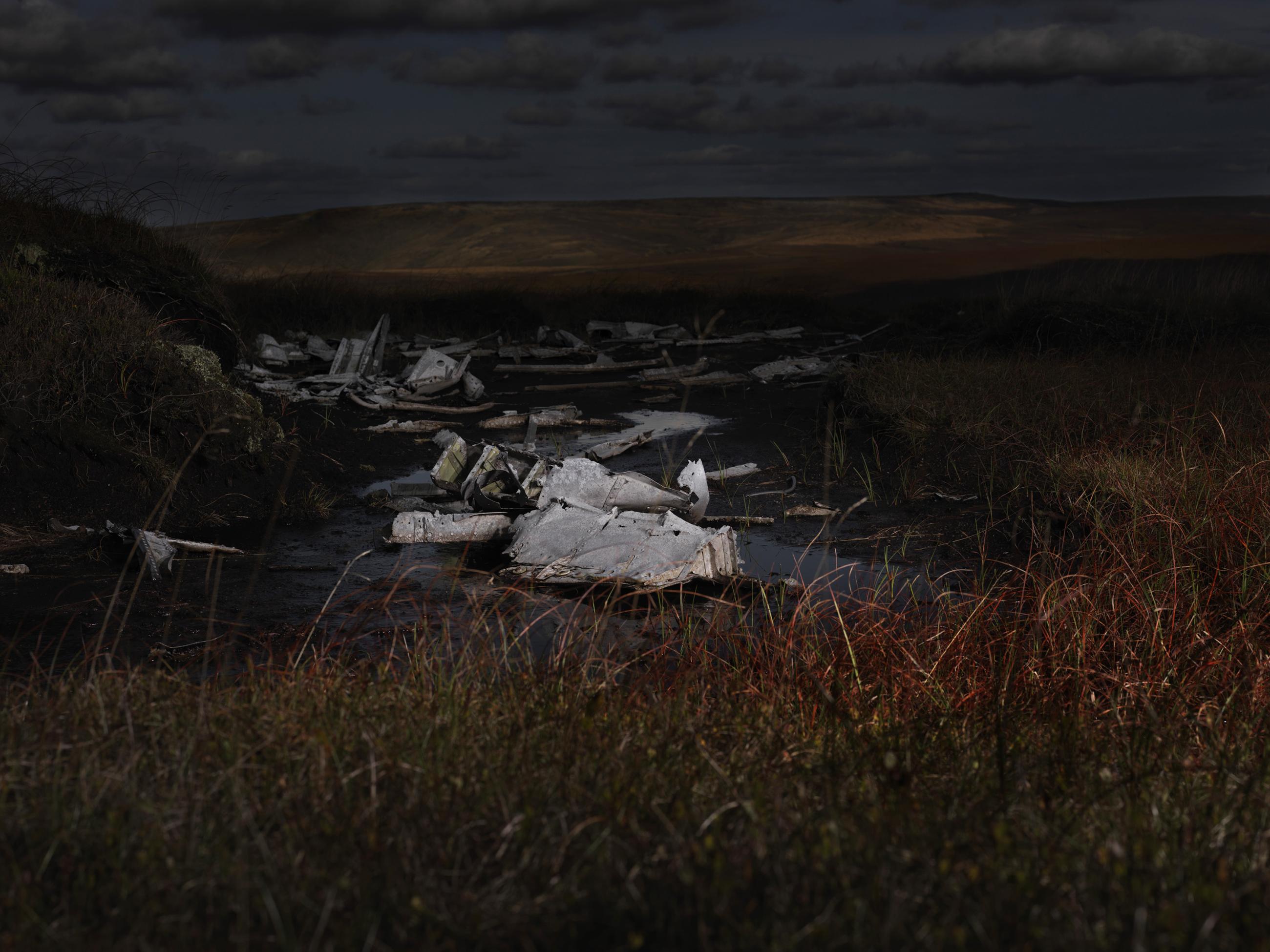 Out hiking in the bleak endless hills of the Peak District I came across the B-29 crash site, its warped structures interrupting the skyline with metal debris that drew my eye. The forms have been displaced by the force of a crash that happened more than 50 years ago, and have survived the harsh weather in the Peak District to create sculptural forms. I am fascinated not only by the different textures that erosion has left in this, and other aircraft crash sites in the area, but also by the fact that few people have seen these objects.