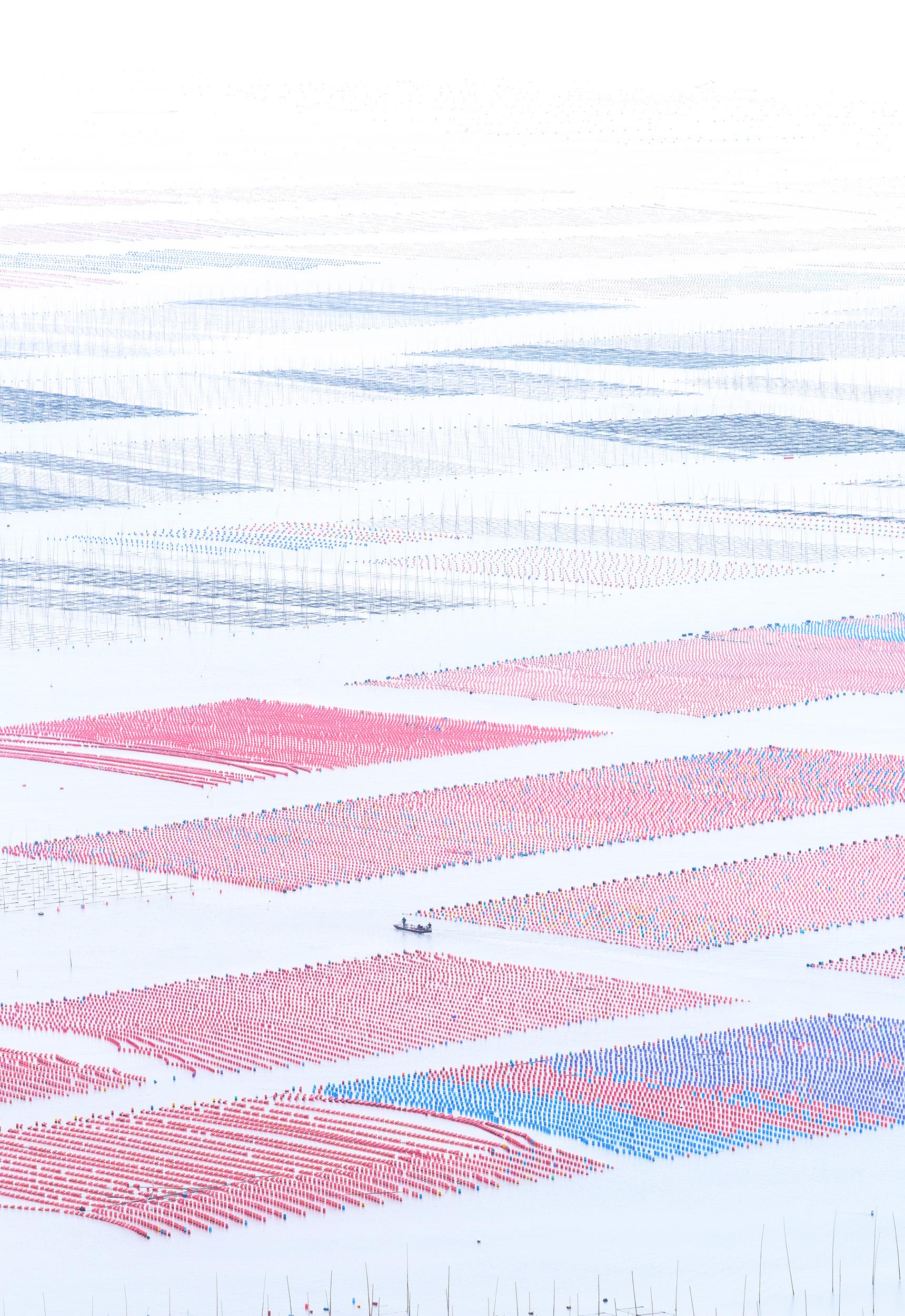 From the vantage point of Huazhu village in the coastal region of Xiapu, China, you get a mesmerising view of the vast ocean adorned with countless oyster and seaweed farms. These farms resemble ‘oceanic tapestries’, meticulously laid out and stretching as far as the eye can see.