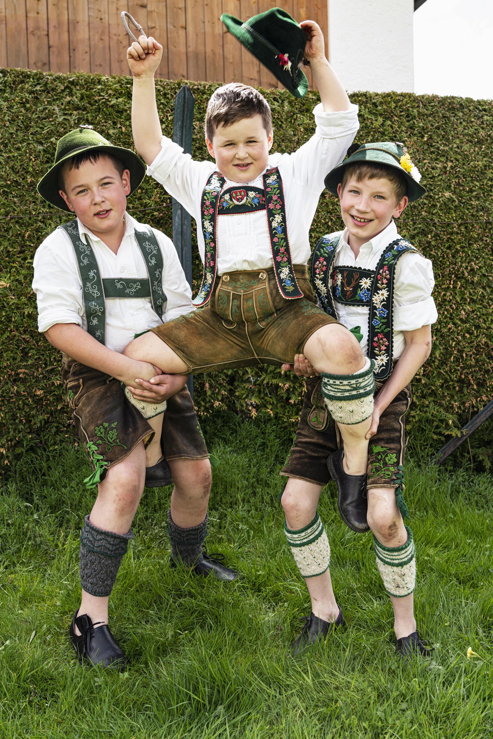 Young talent. Boys pretend to have a finger wrestling award ceremony in Bavaria, Germany.