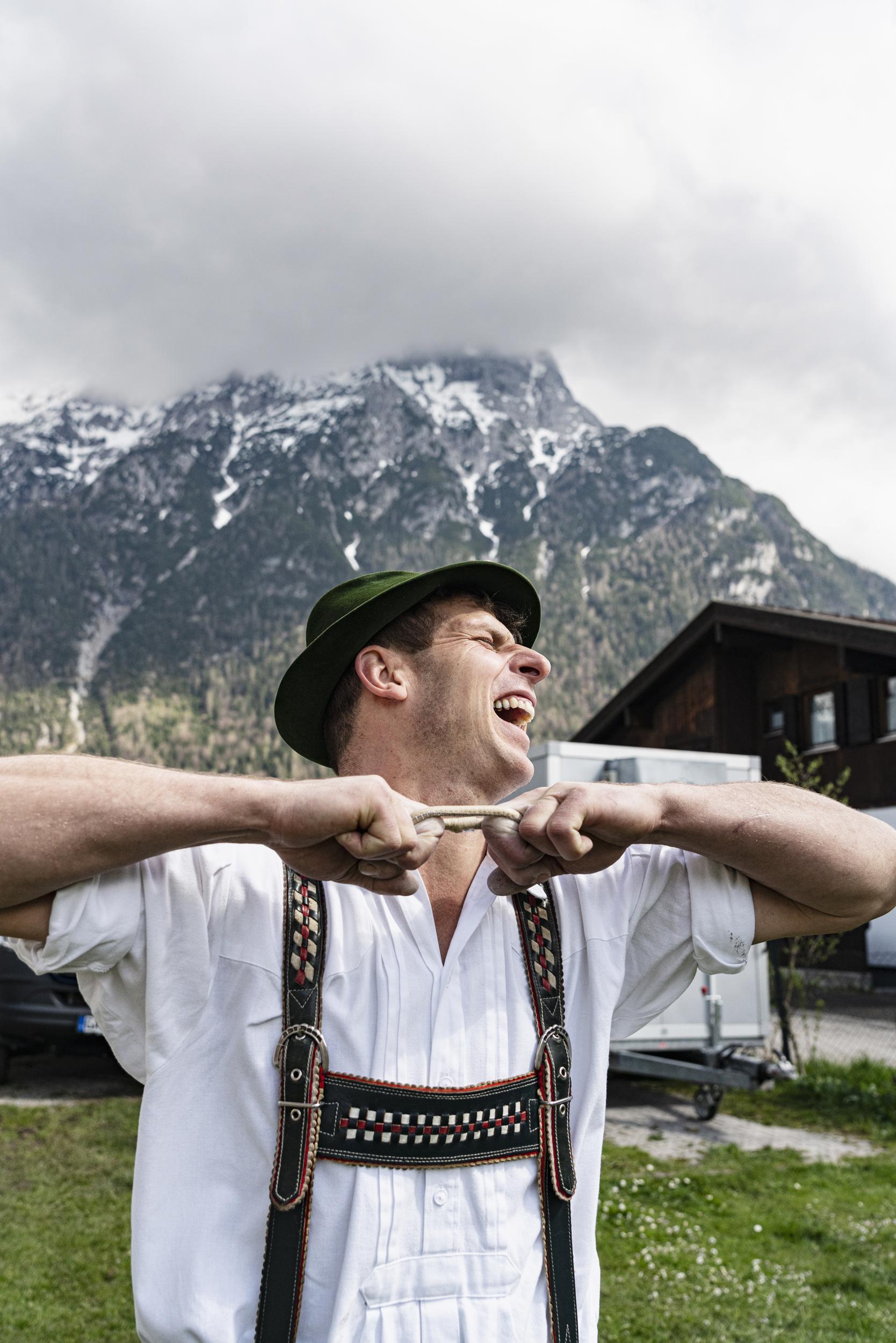 Winner Josef Utzschneider, light-heavyweight champion of the German finger wrestling championship, TSV Halle Mittenwald, Bavaria, Germany, J.