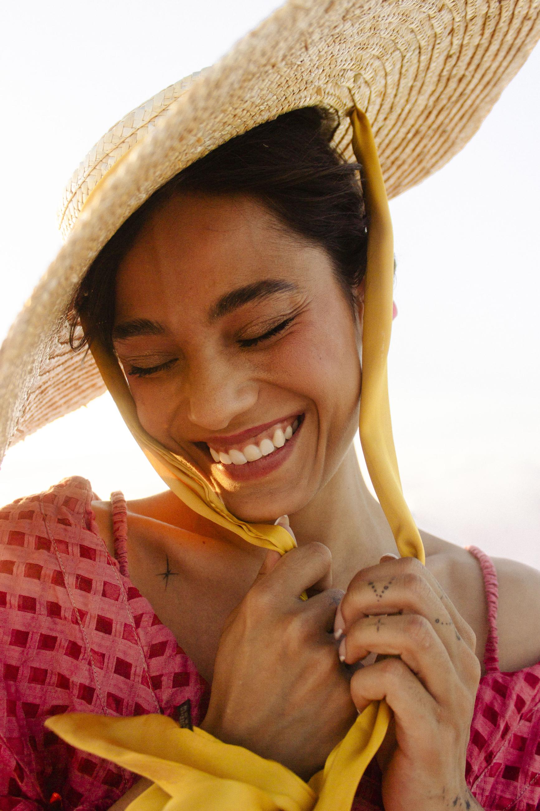 Taken at the Salt Flats in Salt Lake City, Utah. The model smiles radiantly in a straw hat and modern pioneer outfit.