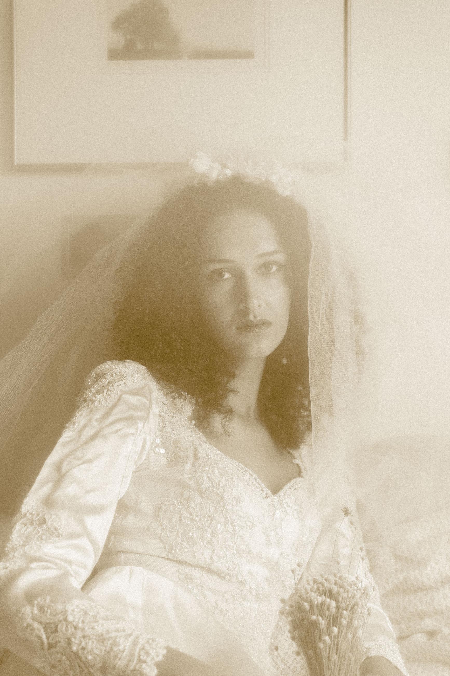 Taken in my home in Ames, Iowa. The model represents a bride who has run away from her wedding. She goes home to lay in her bed; to spend time with herself and remember who she is alone.