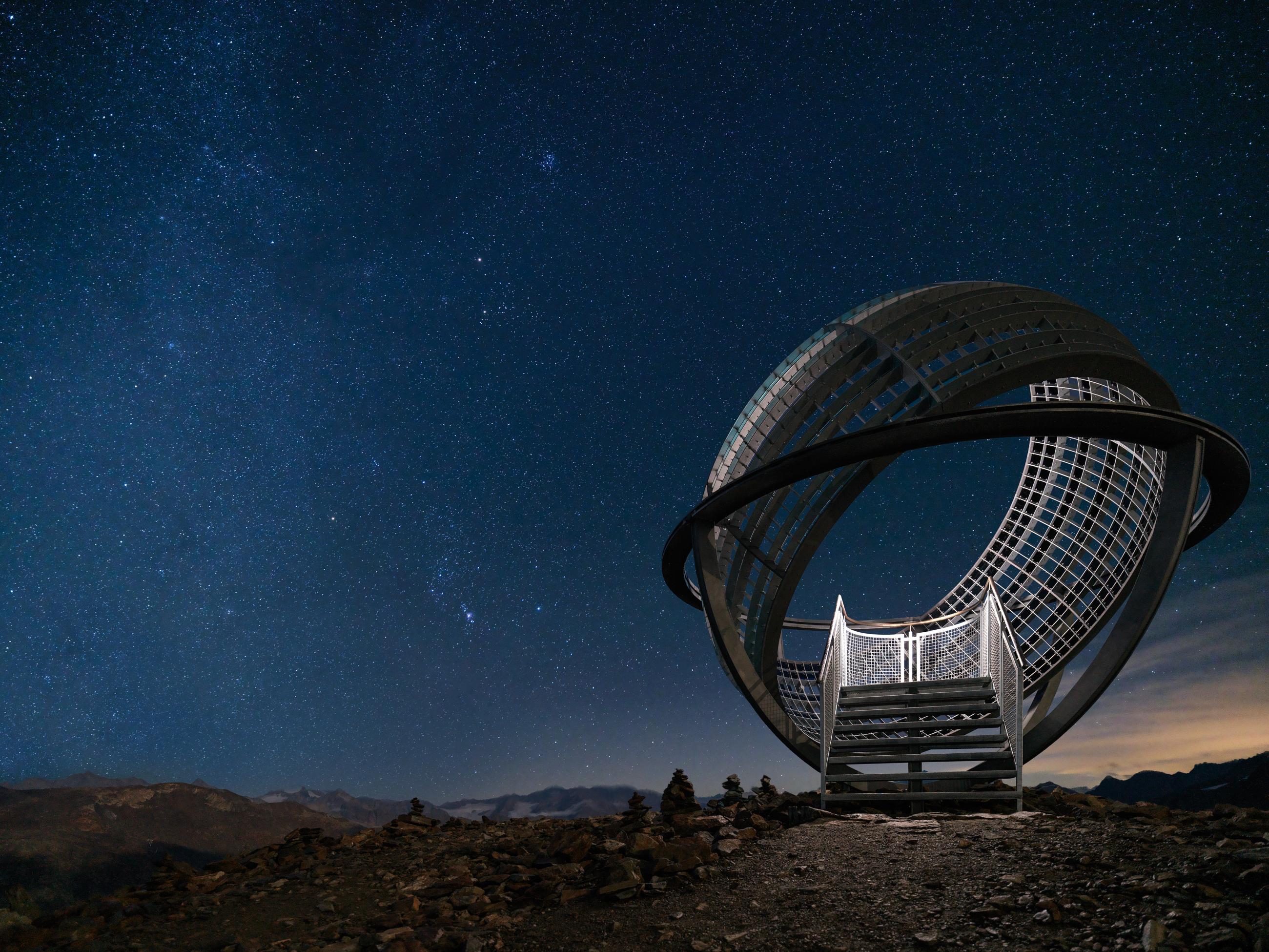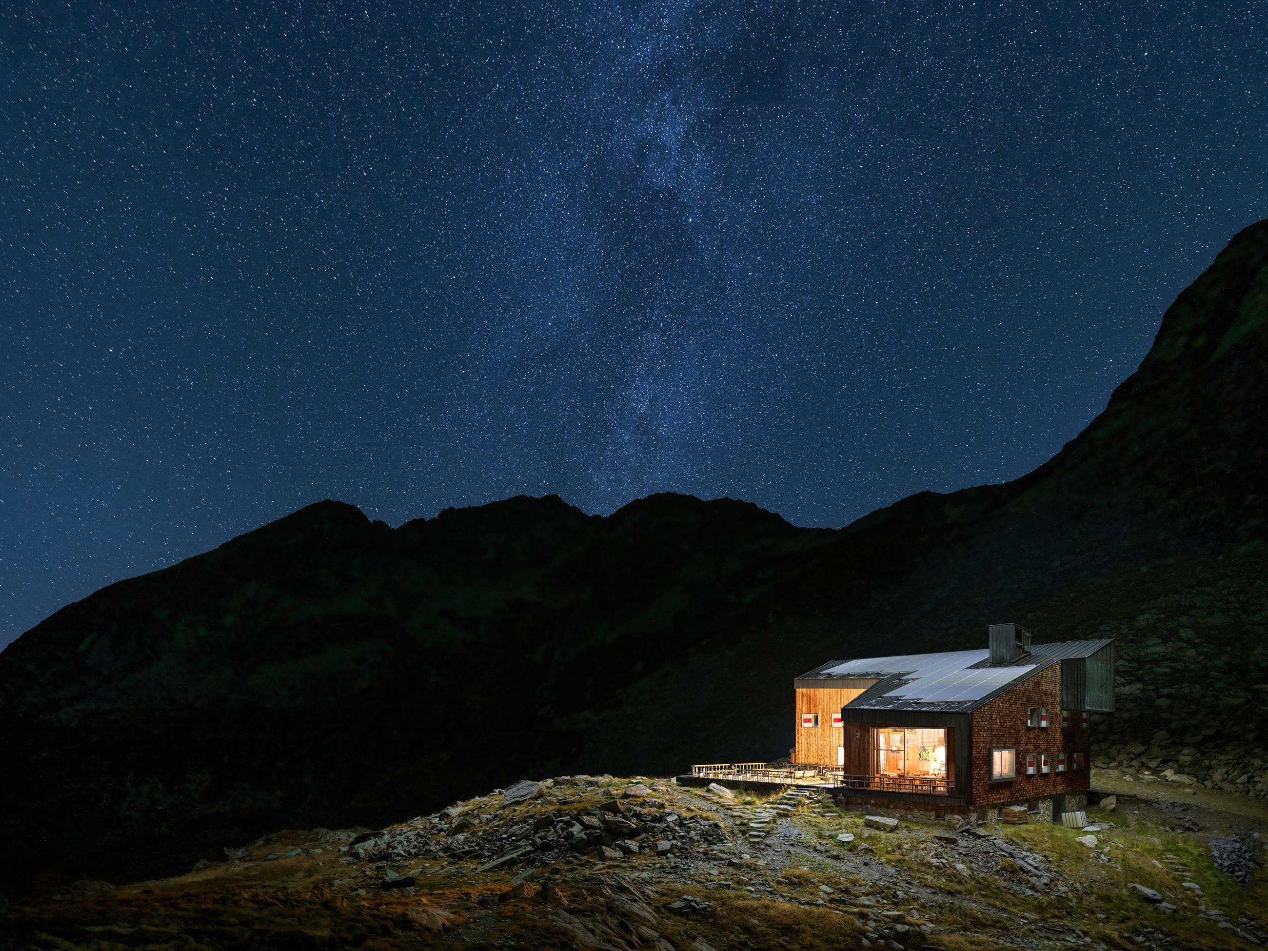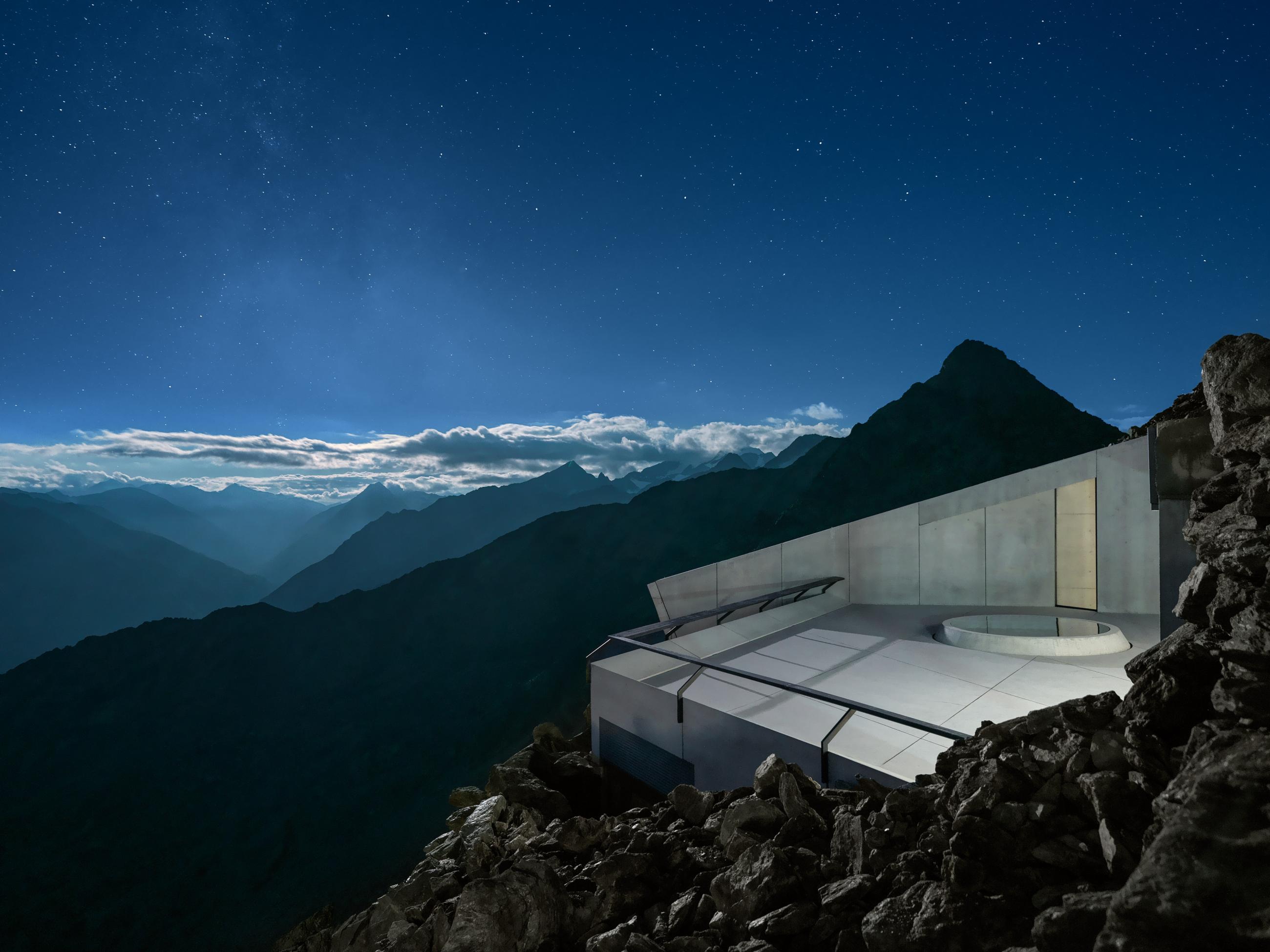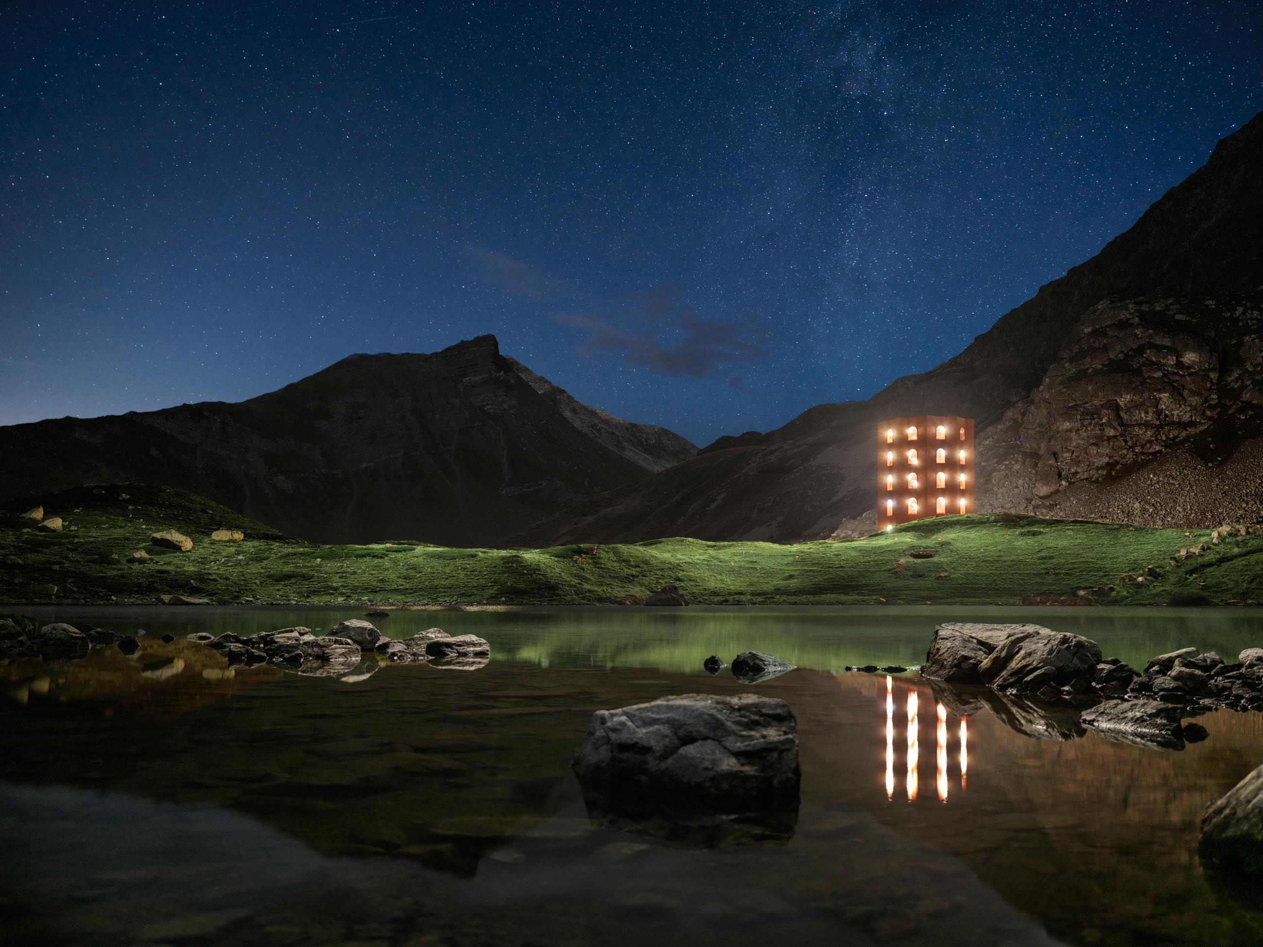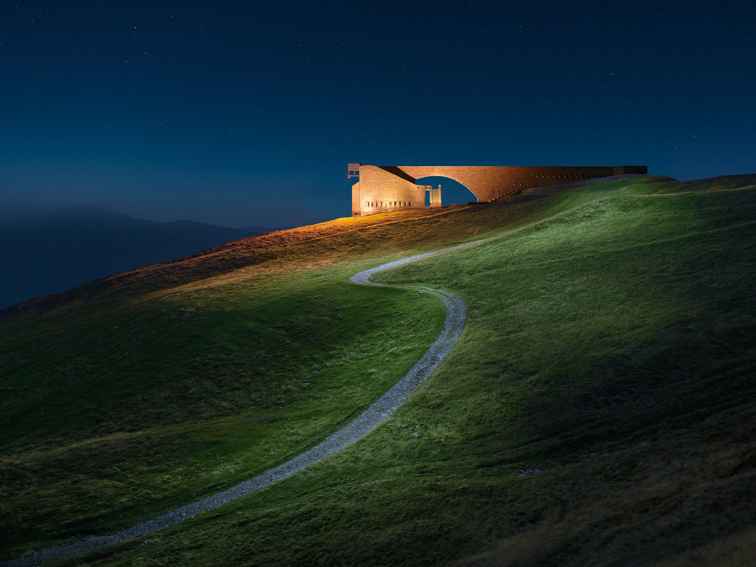Enlighten presents modern alpine architecture as surreal man-made sculptures in the rough terrain of high altitude mountain areas. These photographs form part of a larger set of images, which I took over the course of 10 days, exploring contemporary building designs in remote mountain areas of the European Alps. My assistant and I had to climb to our chosen location every day, stay awake until late at night to capture the image and then descend in the morning to get to the next mountain. Every image was captured under the Milky Way, in the middle of the night, using a medium format camera. The buildings were lit by an LED light that I attached to a drone, with the resulting top lighting giving the structures an otherworldly feeling.