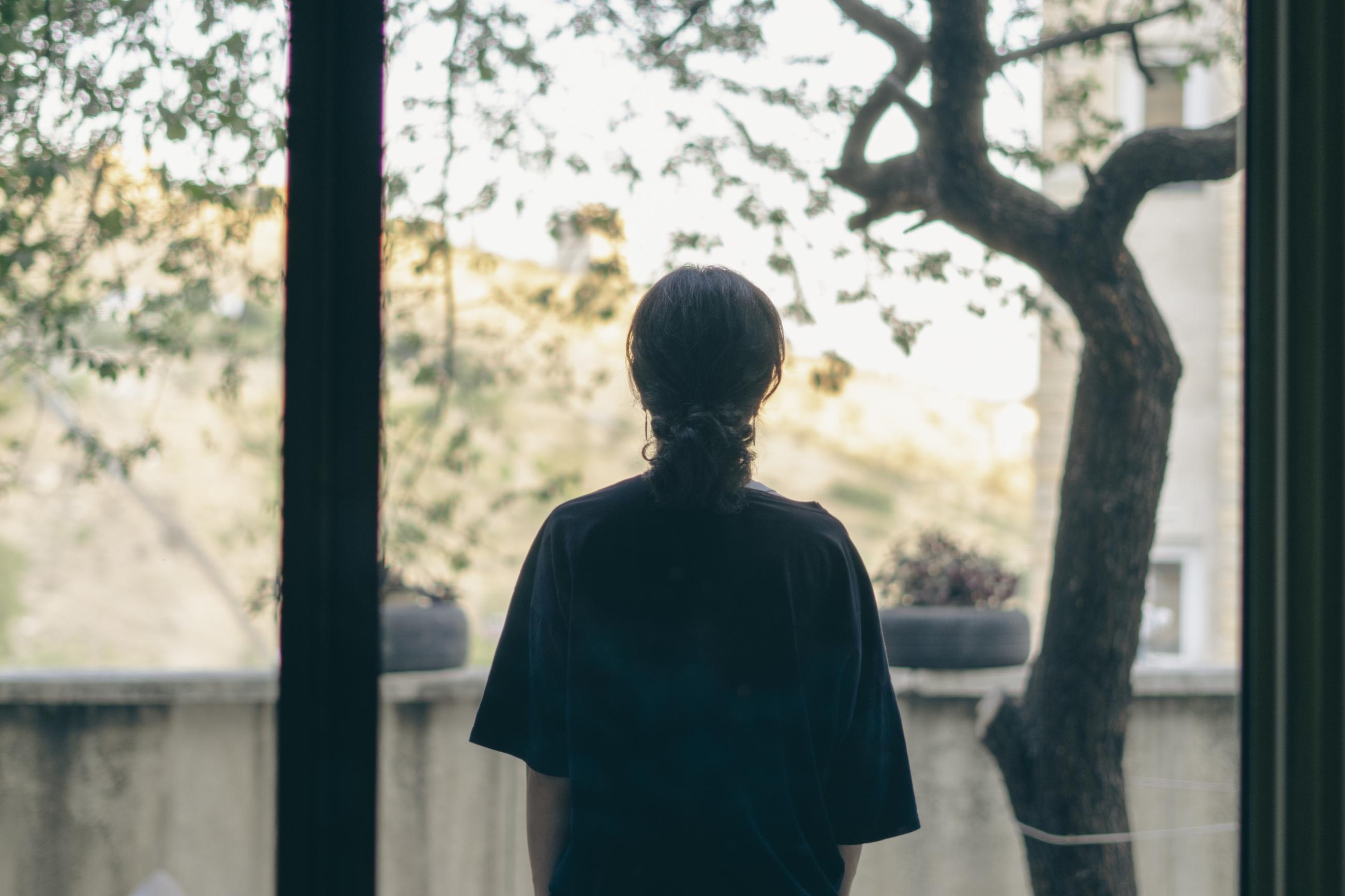A girl watches the sun set over Tehran from a nearby village.