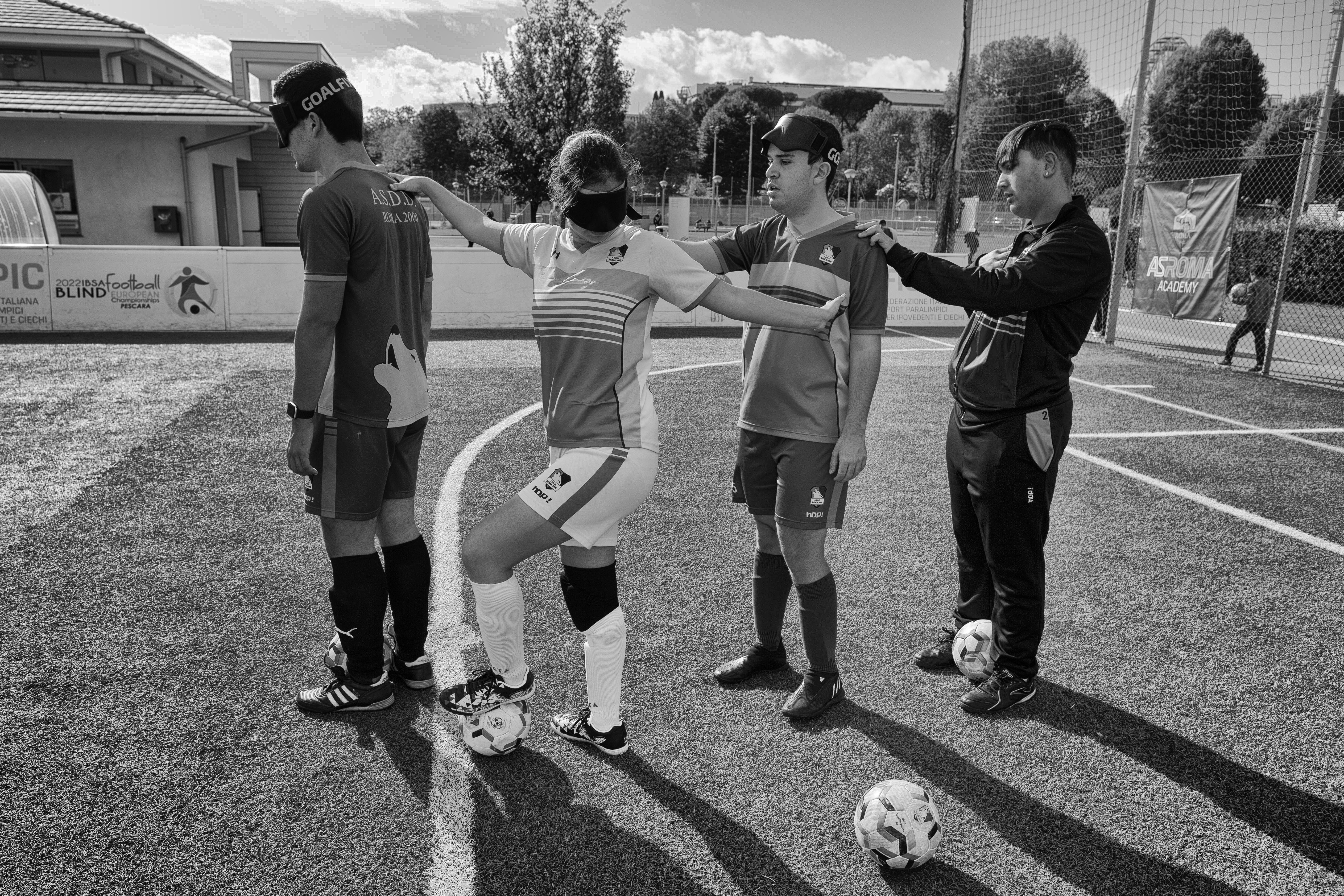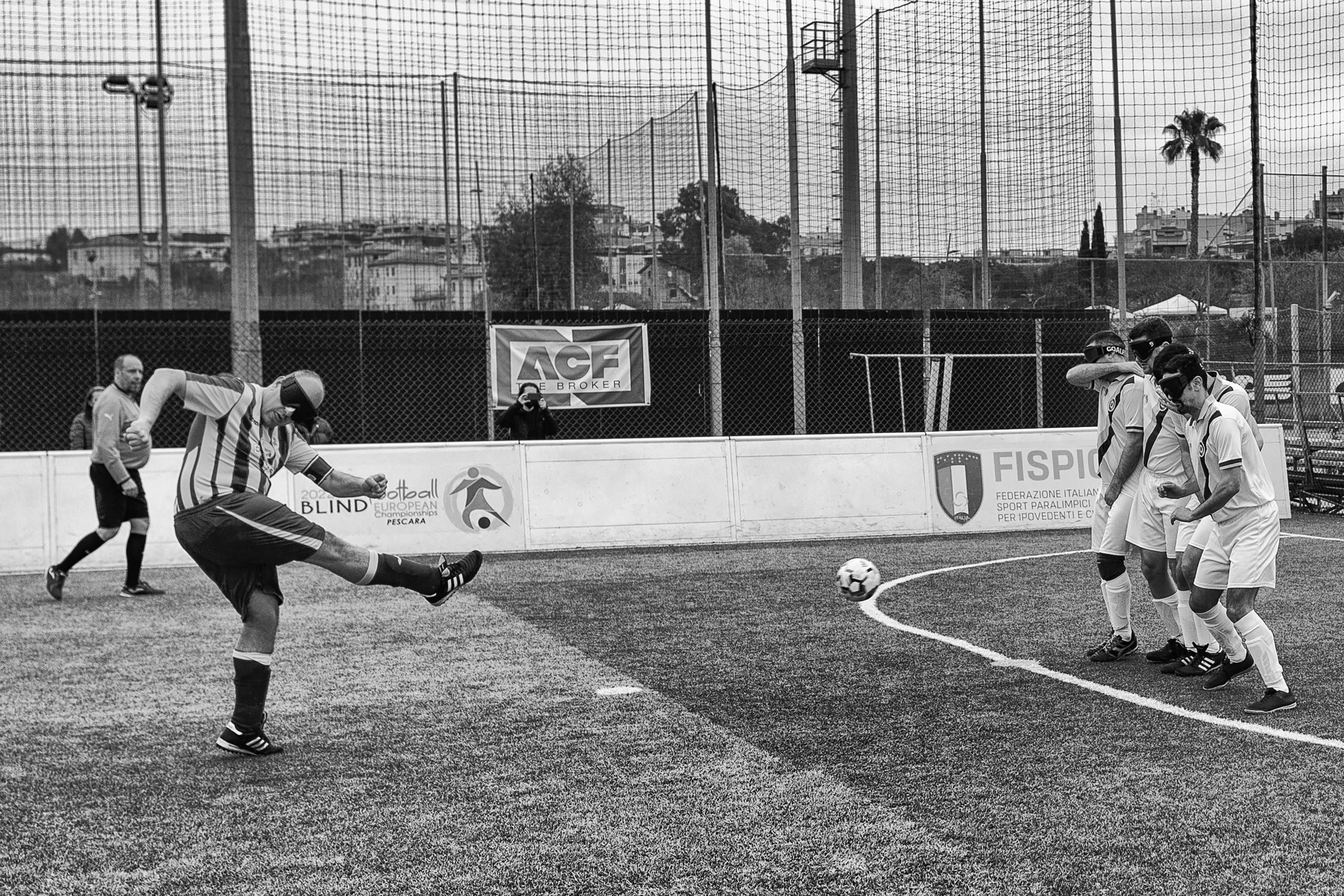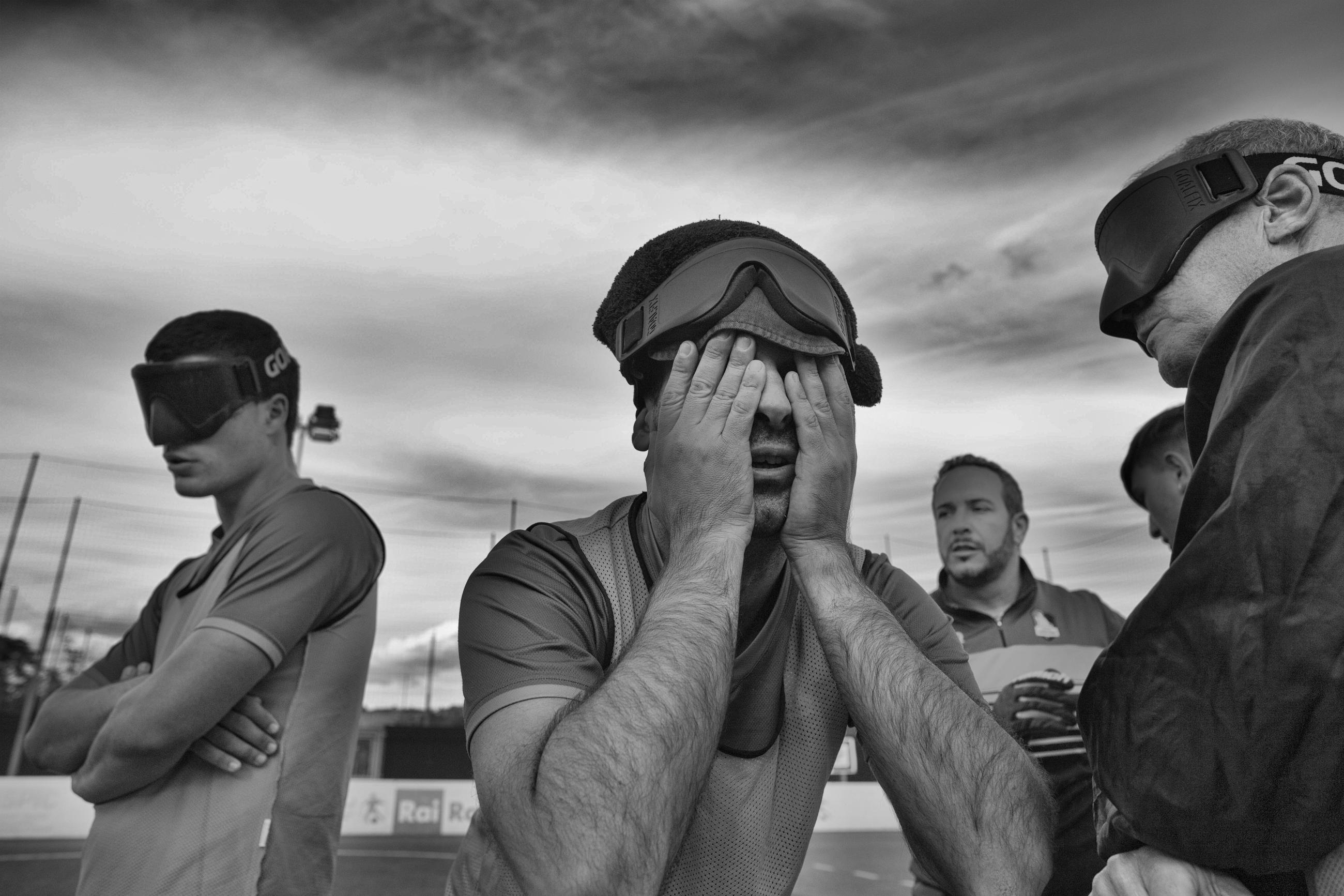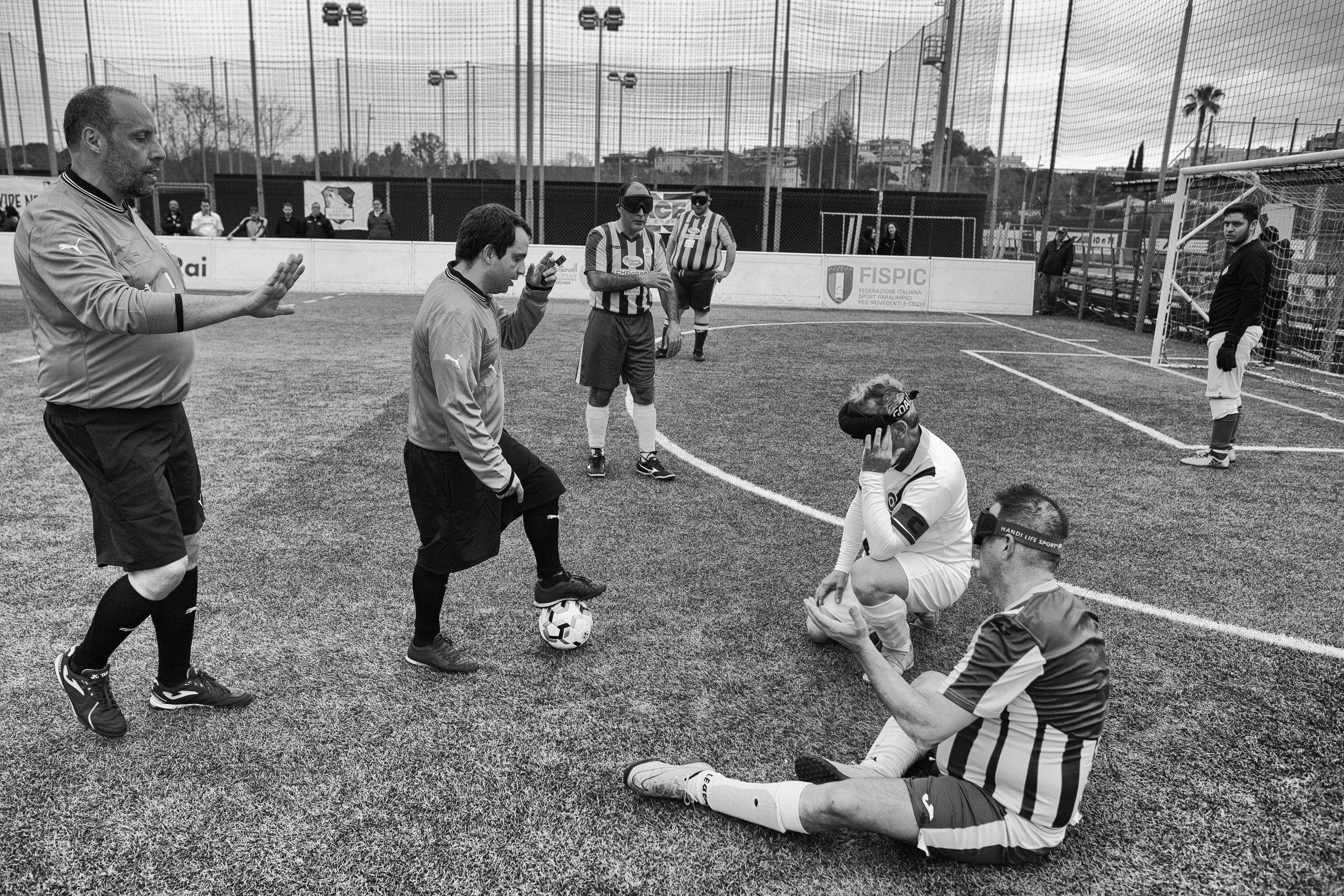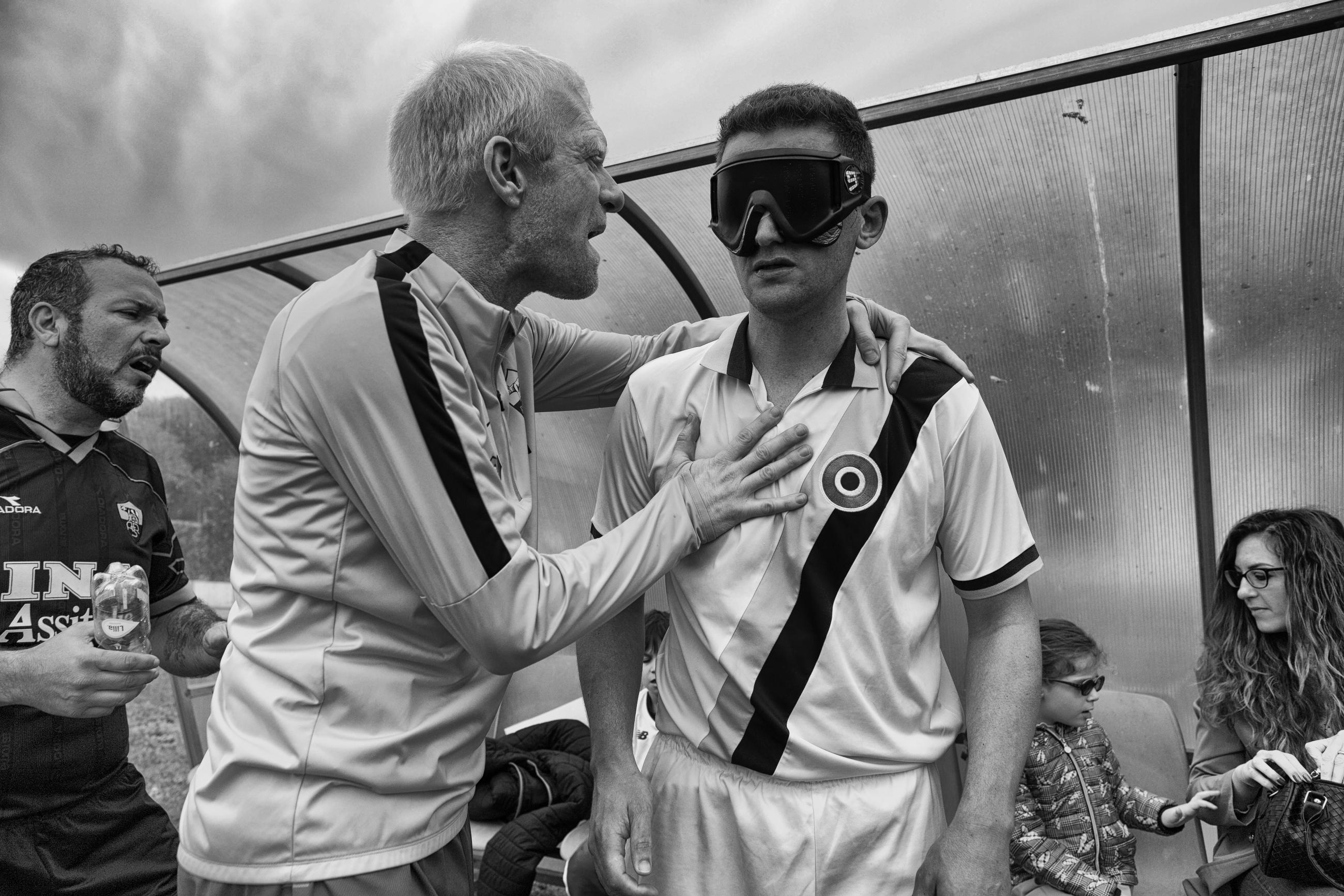 Football’s Vibes is a photographic project developed in Rome that aims to show how human beings can surpass the limits imposed by their physical condition. Five-a-side blind football is a team game, and the mutual support between players forms a solid foundation on which they face their titanic challenge and express their immense inner strength and unbelievable resilience. This project was produced with the ASD Disabili Roma 2000 association, which is an amateur sports association that promotes five-a-side blind football for people of all genders and ages.