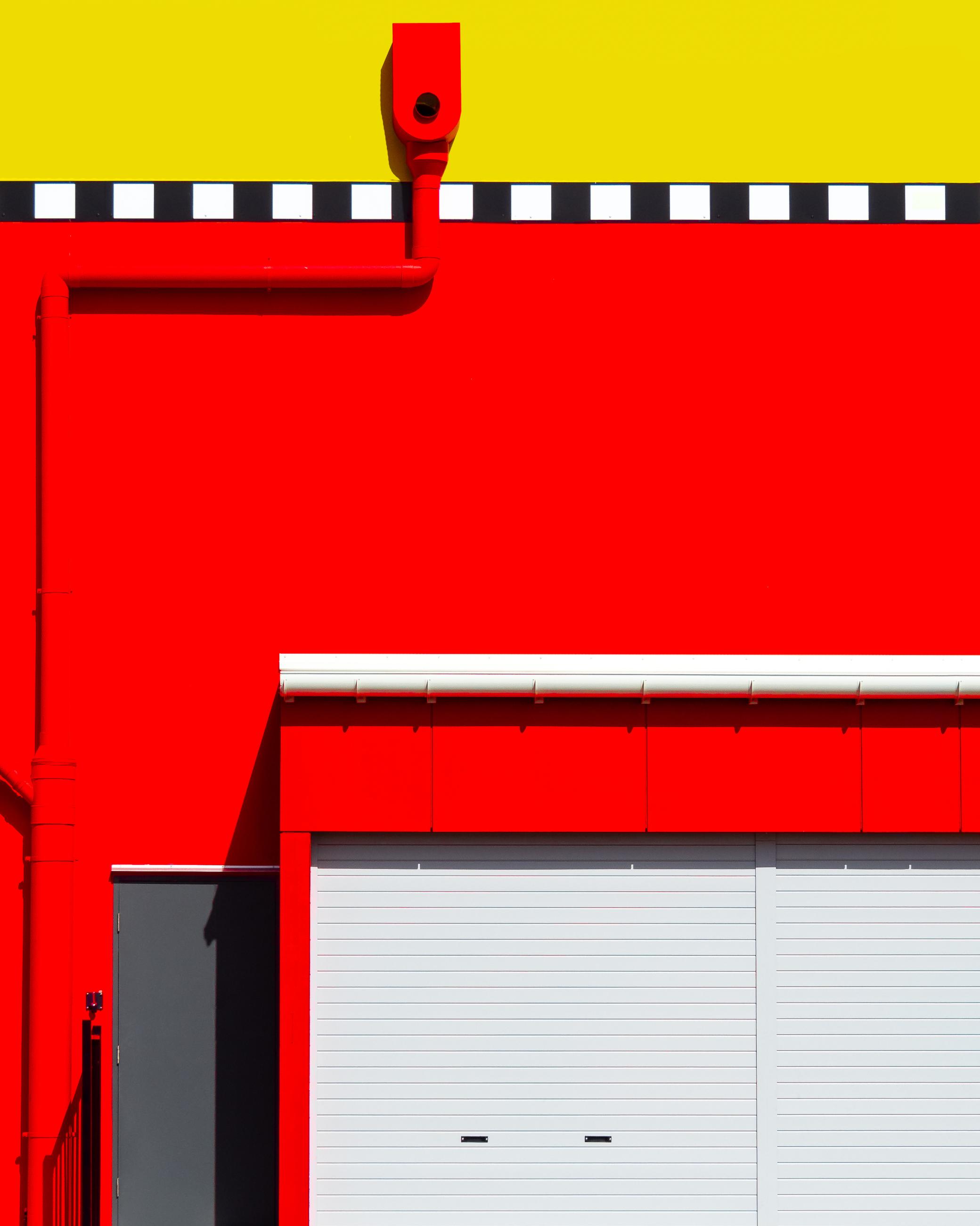 The vibrant energy of an interior facade where geometry and vibrant colours mingle. Bathed in light, the doors create an orderly mosaic, while metallic lines and reflections add a touch of modernity to this minimalist celebration of urban architecture.