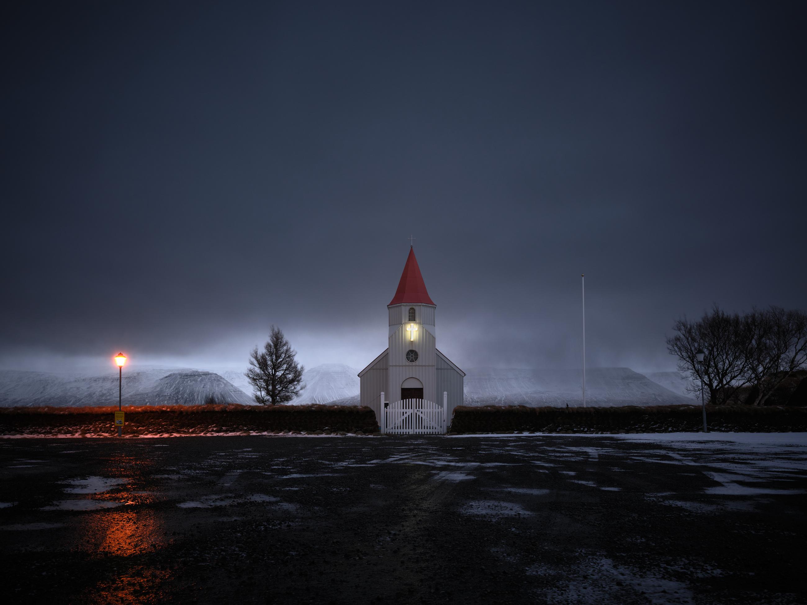 Morning at a small church near Lake Mývatn. Photos from the Winter Iceland 2024 photo expedition series.