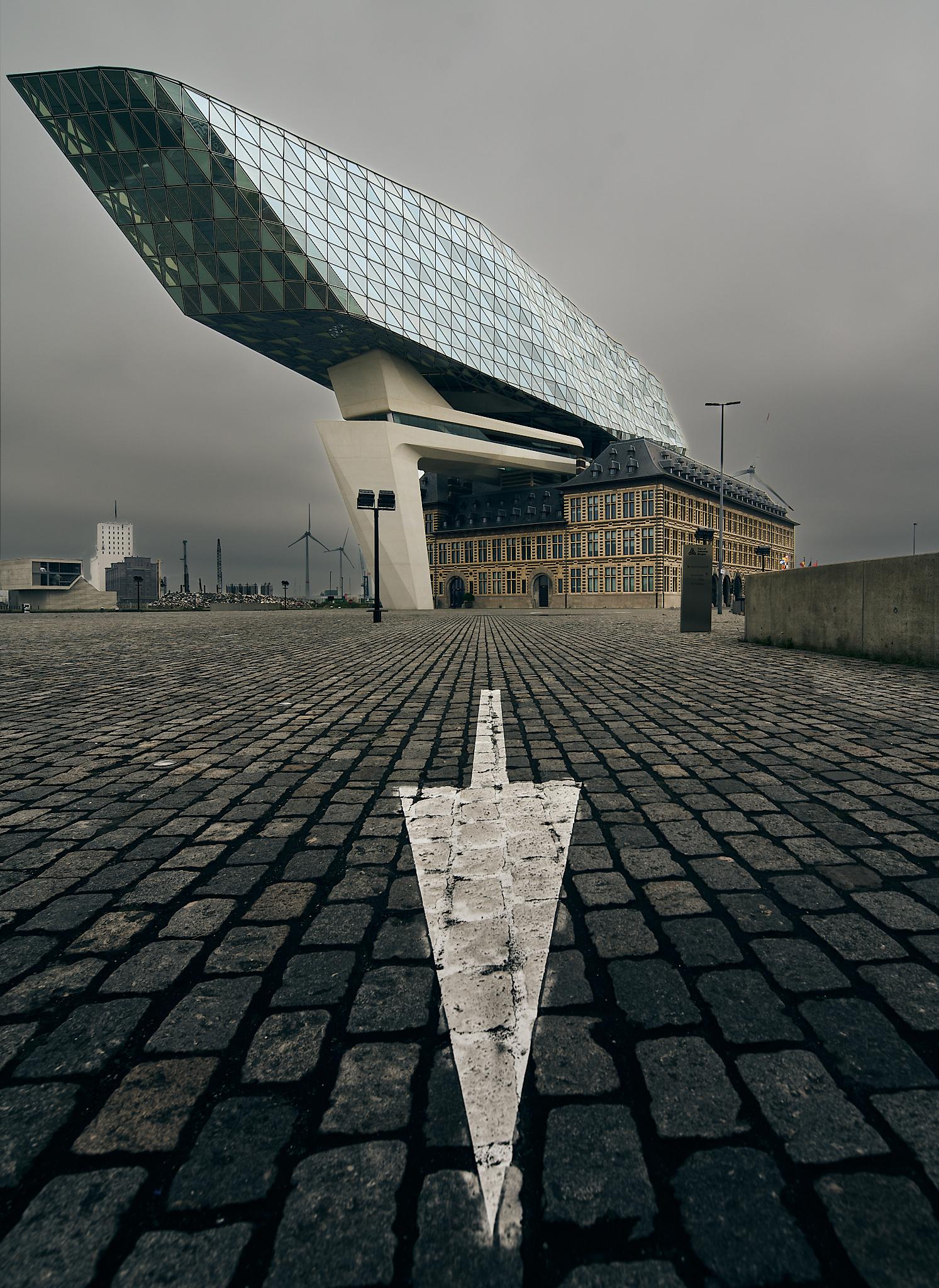 The Port Authority building in Antwerp, Belgium. The extension on top of the old building was designed by Zaha Hadid.
