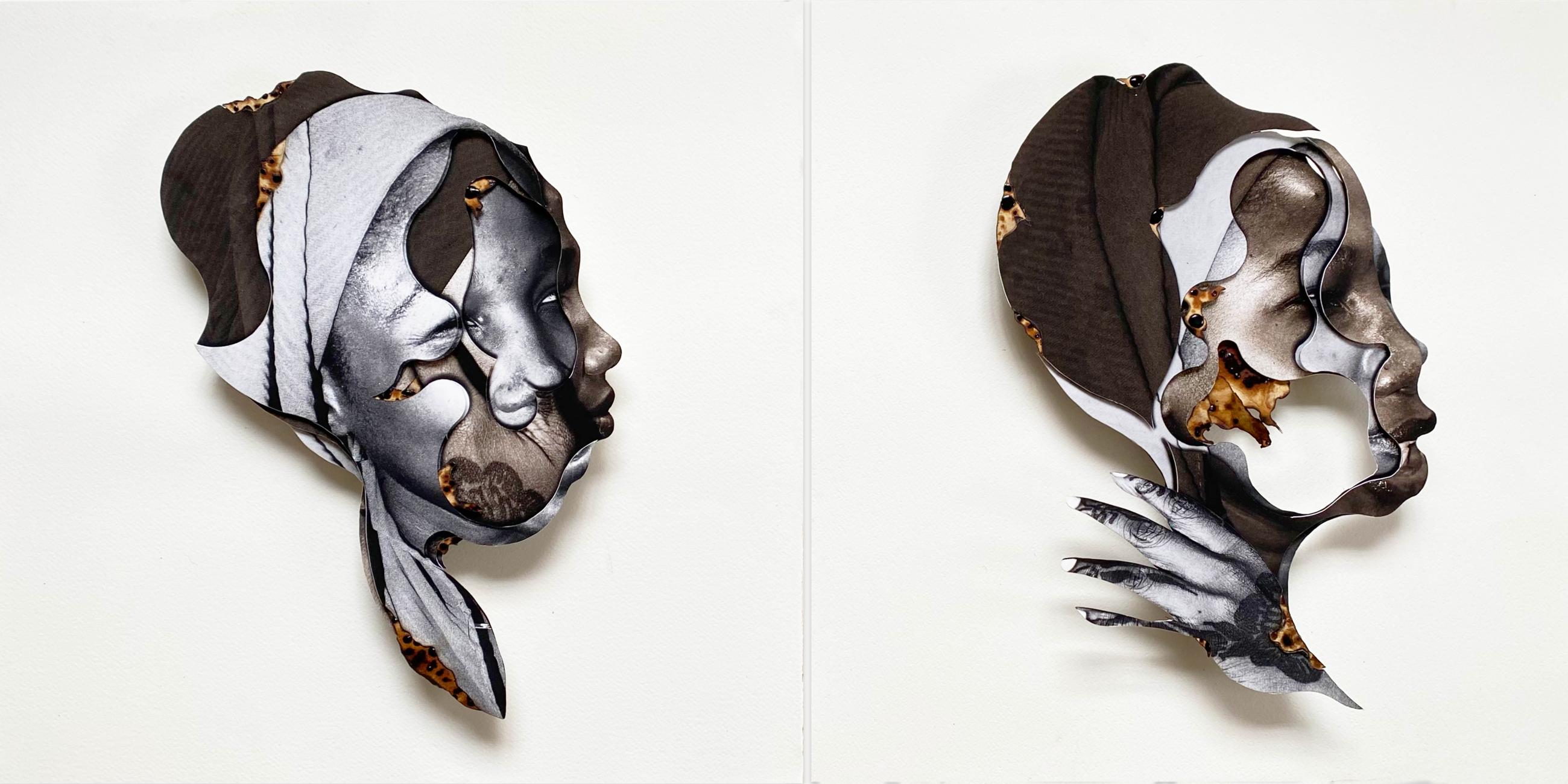 This is a collage made using photographs I took and printed on Fabriano Artistico paper, Coffee stained paper, and burnt paper. It is a diptych with each panel comprising 3 layers of the elements described above. The subject is named Zara, whom I met in early 2024, stopped, and asked to photograph. The image is one in a series of portraits in the same style, made to explore distortion within Portraiture, through material manipulation. Aside from distortion, each portrait is created to examine contrasting emotions and expressions within portraiture.