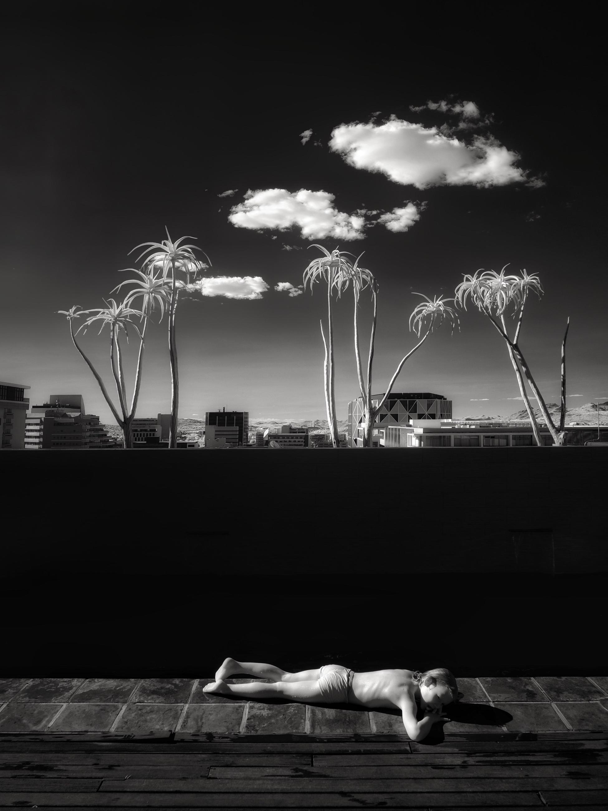 While preparing for a photography trip in Namibia, the photographer spent a couple of days with friends at a hotel in Windhoek. Resting by the swimming pool, he noticed these clouds floating by and used his infrared-converted camera to create the vibrant contrast and slight glow in this image.
