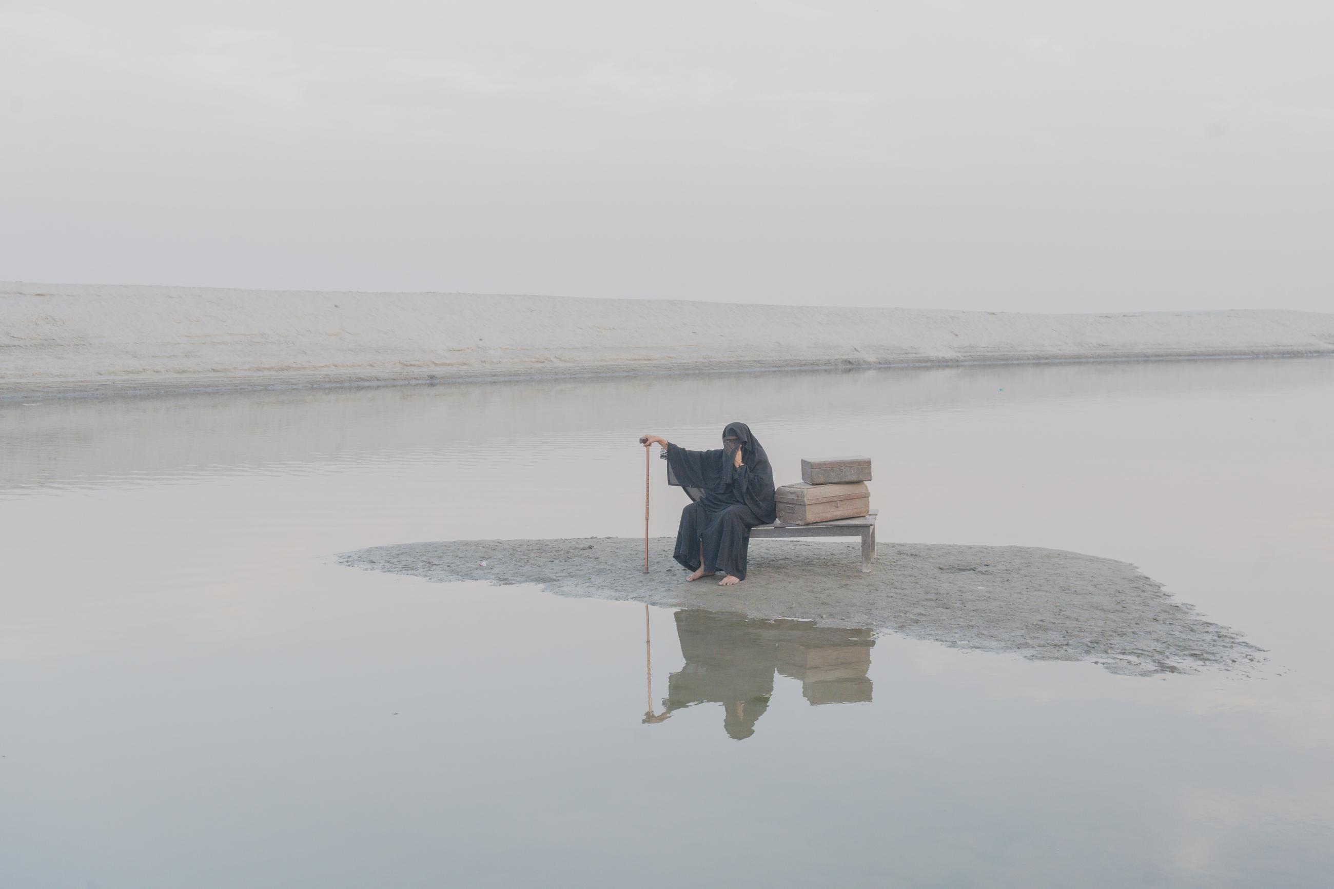 The photographer’s grandmother sits on a fragile island of silt where her house once stood, surrounded by still waters – a symbol of displacement and resilience. The composition suggests a journey shaped by loss and survival. The quiet violence of environmental degradation, river erosion and the isolation it imposes also serve as a testament to endurance in the face of an uncertain landscape.
