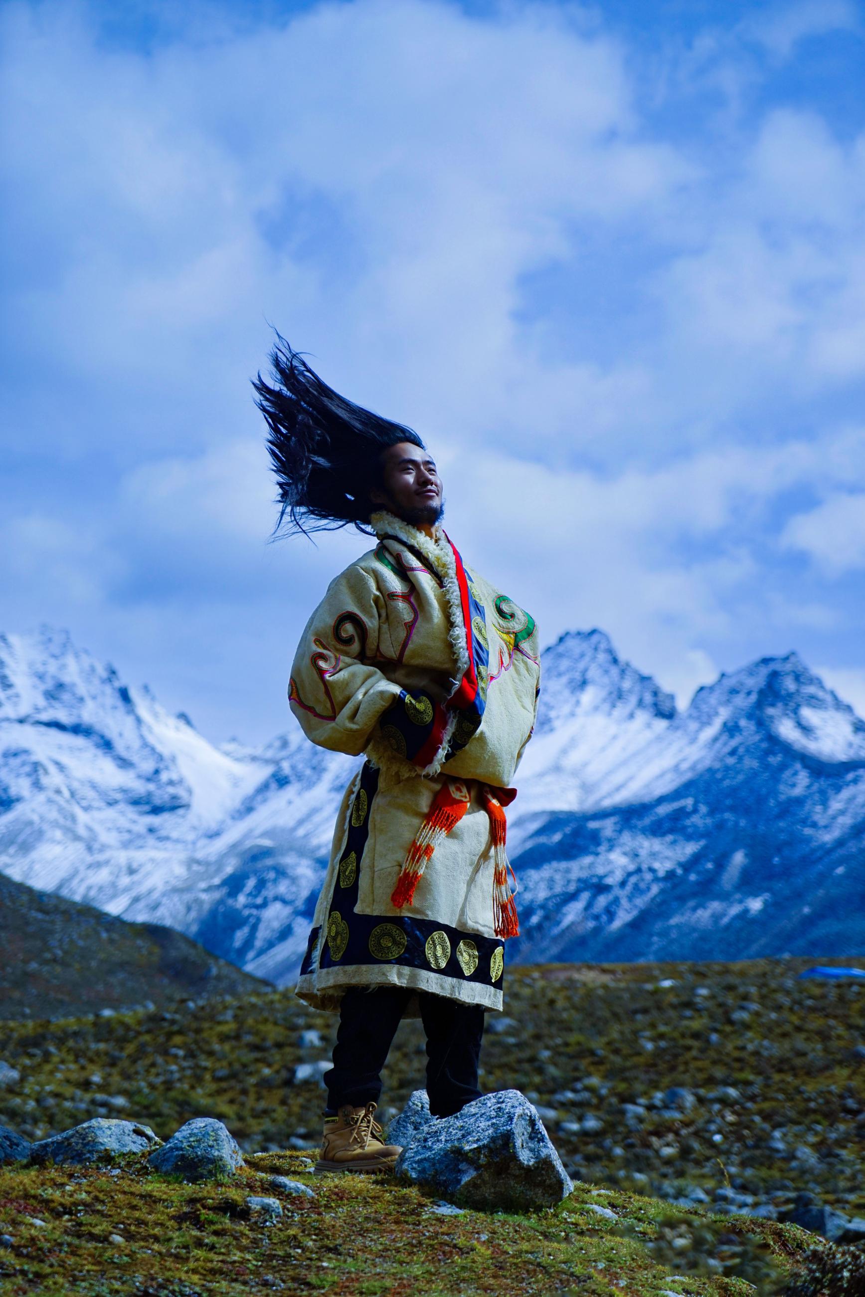 A Kham Tibetan man in Daofu County, Sichuan, China, dressed in a traditional handcrafted robe passed down from his grandfather.