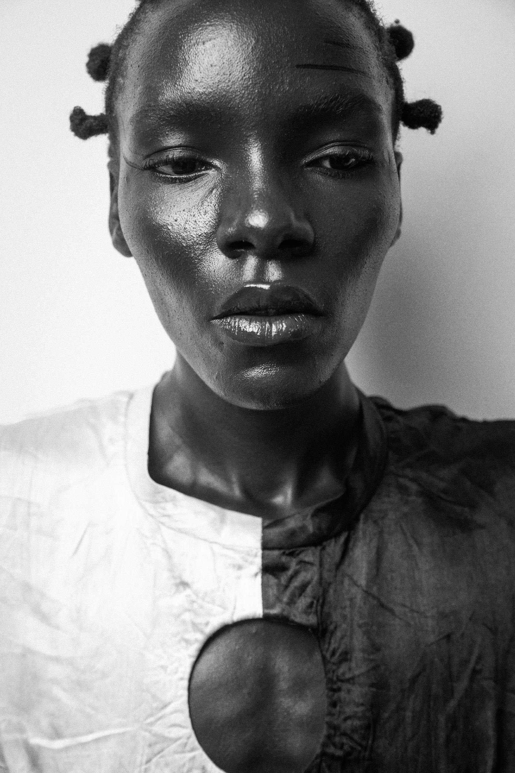 This image forms part of the photographer’s series, Portrait of a Poet, and depicts Manka Menga (aka Dr Winifrida John Mmasi MD). She is currently a multi-disciplinary artist whose deliberately sensual and blasphemous poetry challenges the scope of self-expression afforded to African women and queer people. The lines visible on her face are the result of a daily morning ritual that simultaneously honours the memory of her late grandmother and references the traditional ritual of scarification from her family’s home region.
