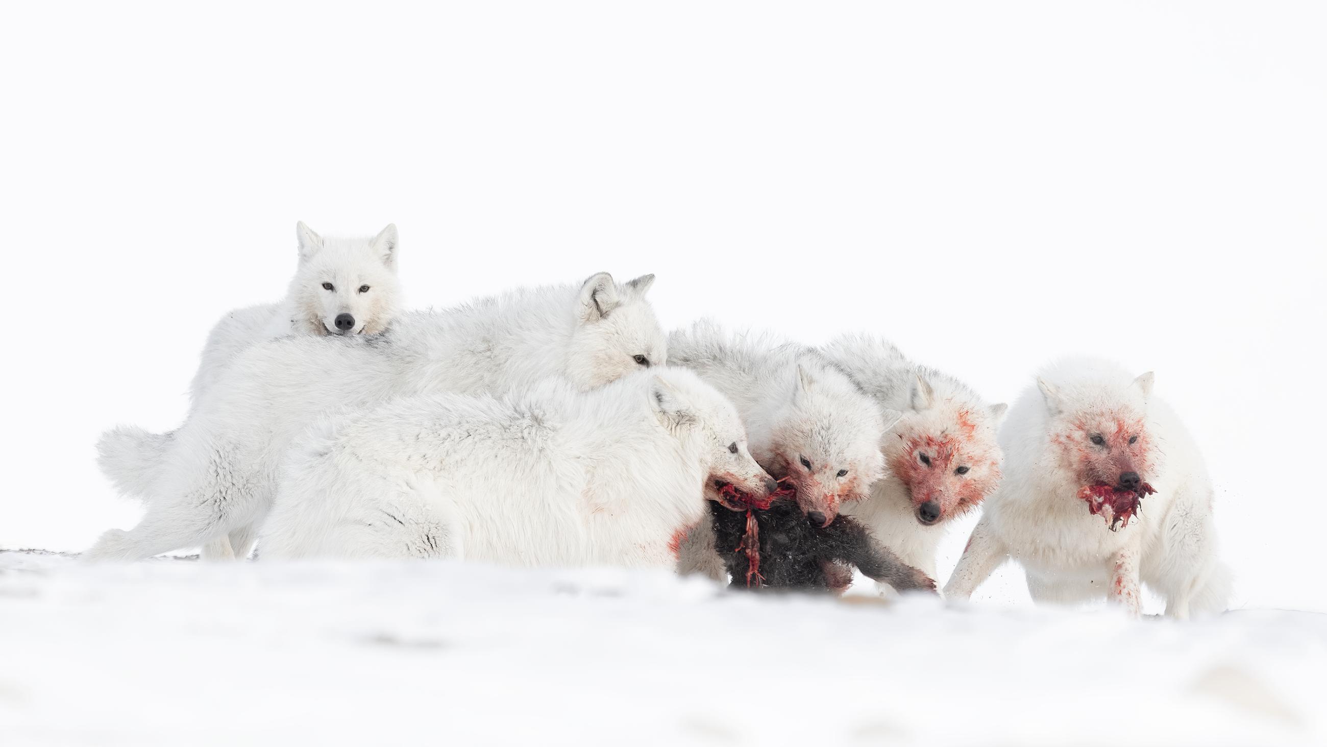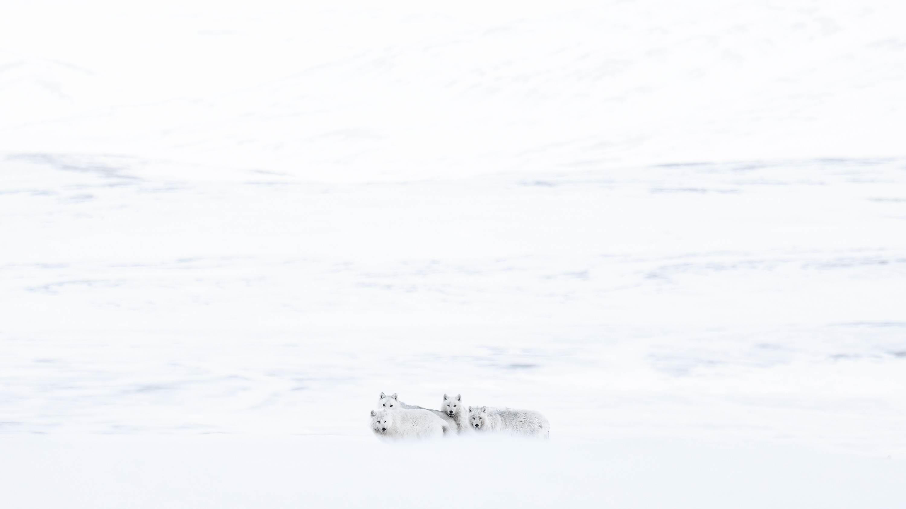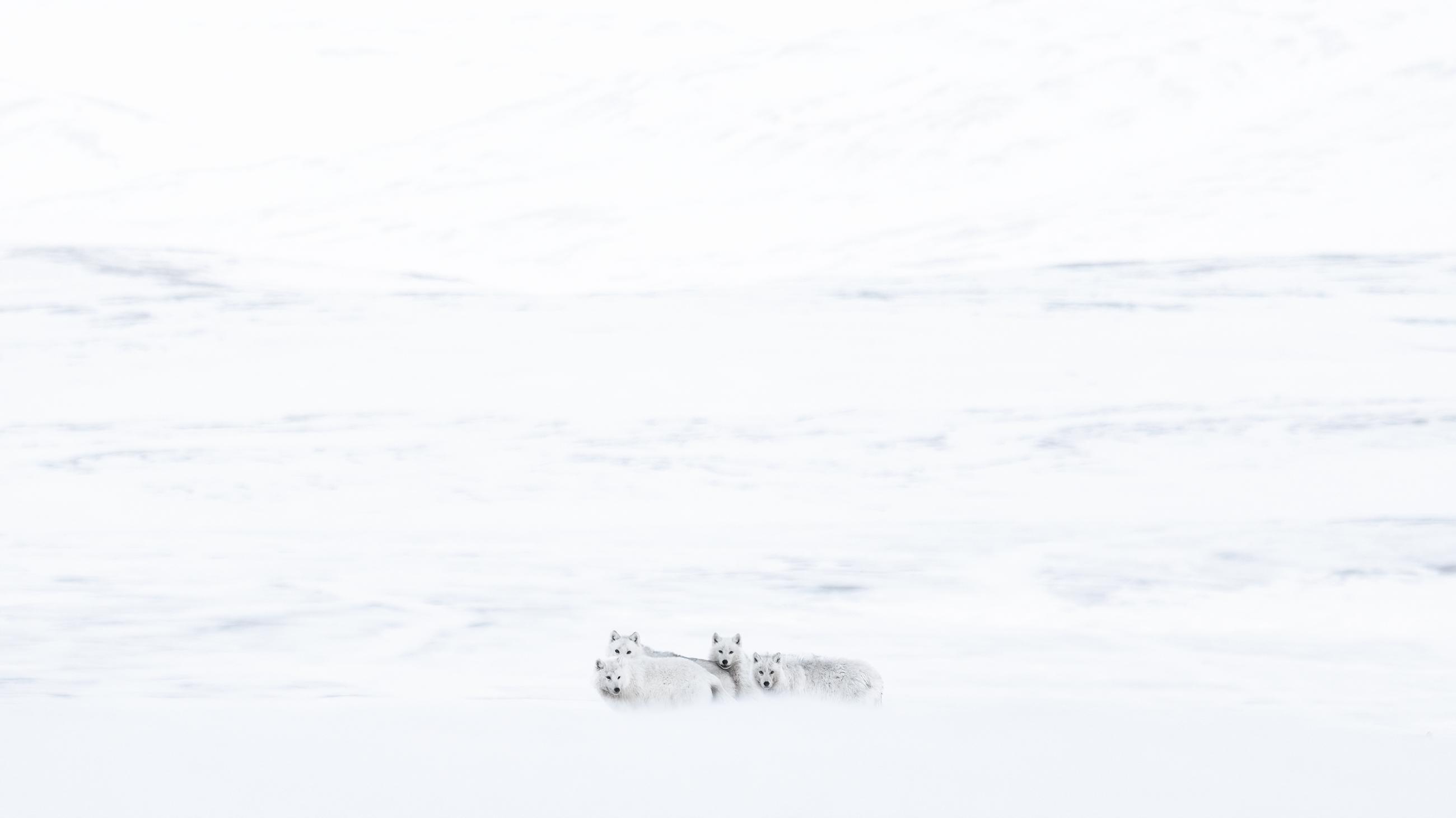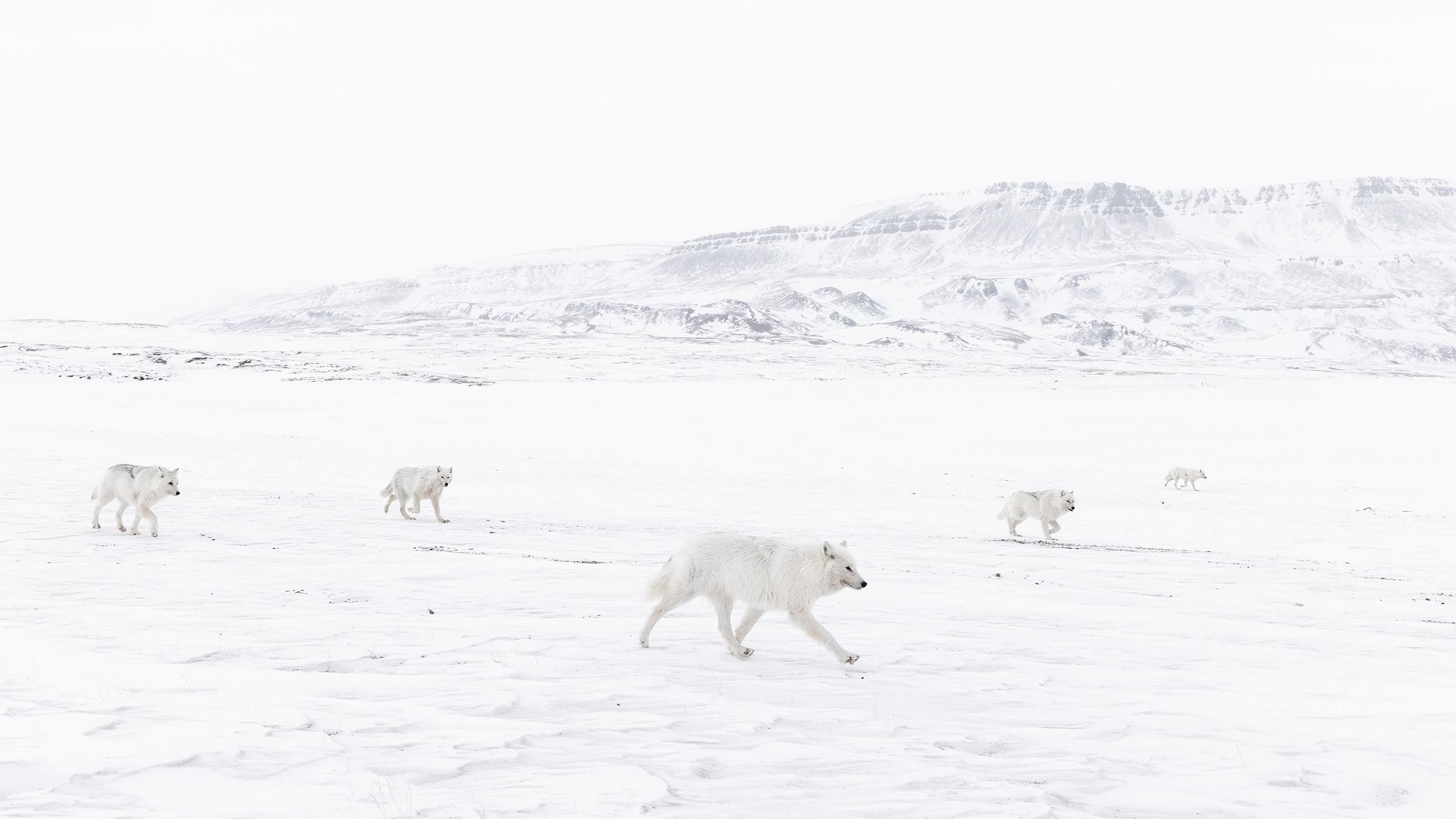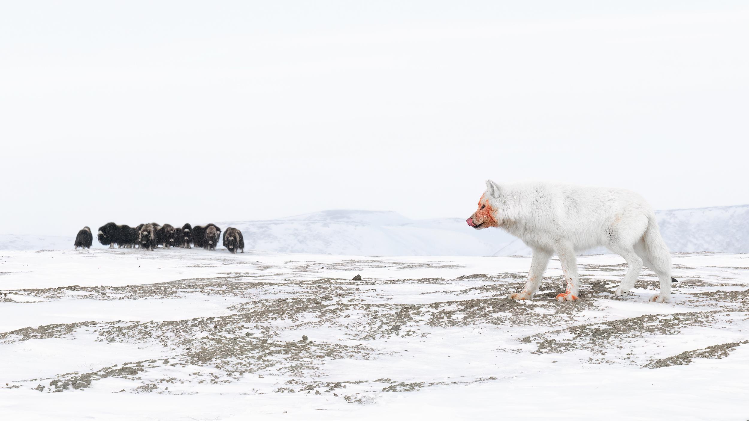 Arctic wolves are extremely difficult to see in the wild. They are found on a few very remote islands of the high Canadian Arctic, and possibly on northern Greenland, with an estimated 200 wolves living on the Canadian island of Ellesmere. The lucky few who have observed Arctic wolves in the remote northern parts of Ellesmere Island have noted how playful and unafraid of humans they are. Unlike other wolves, which have to deal with human encroachment, Arctic wolves have no intrinsic distrust of people, as they have never been hunted or persecuted. Yet as playful as they are, these wolves are still wild, as Amit Eshel discovered when the pack he was photographing came across a herd of musk ox, providing him with an unfiltered version of nature in its wildest form.