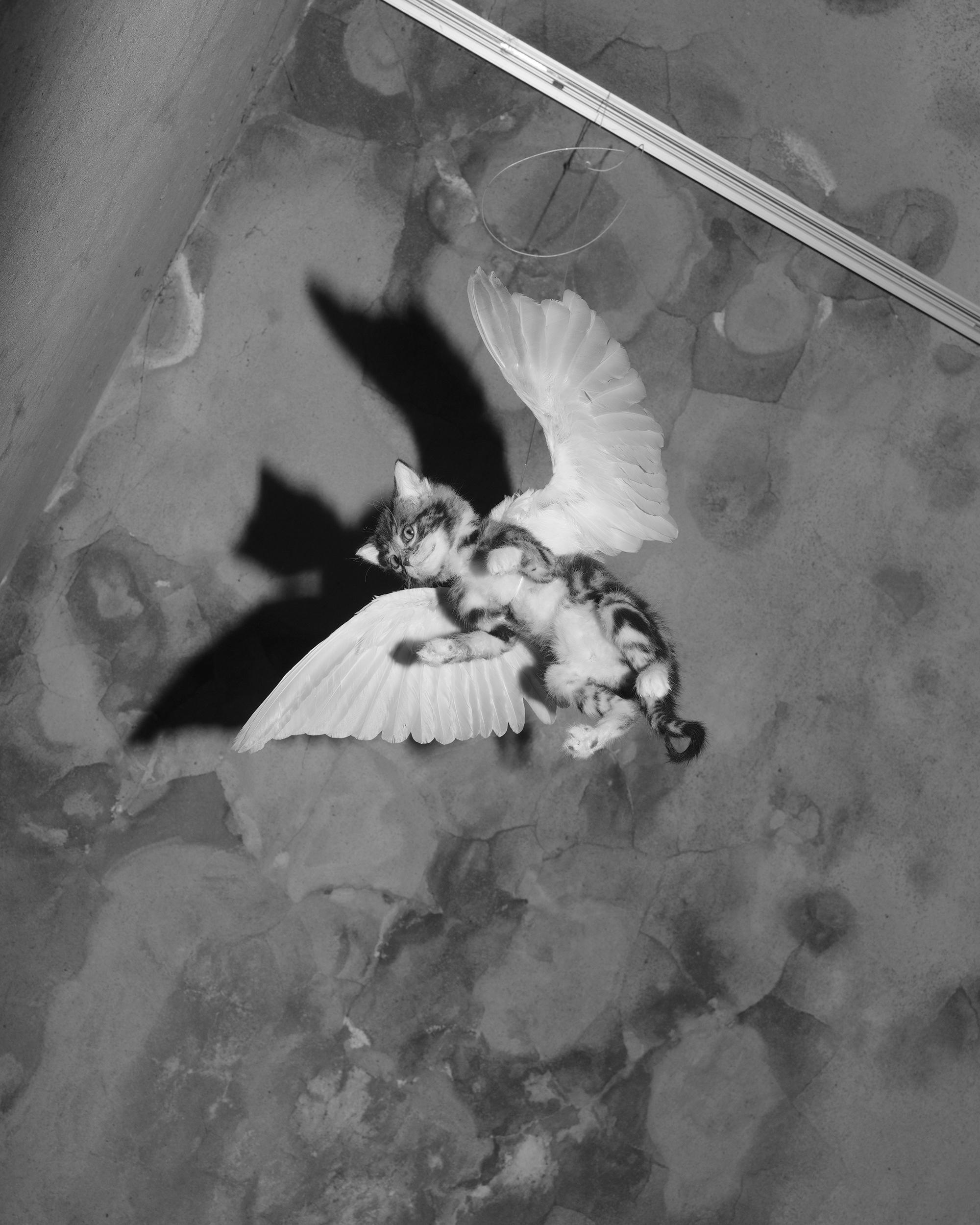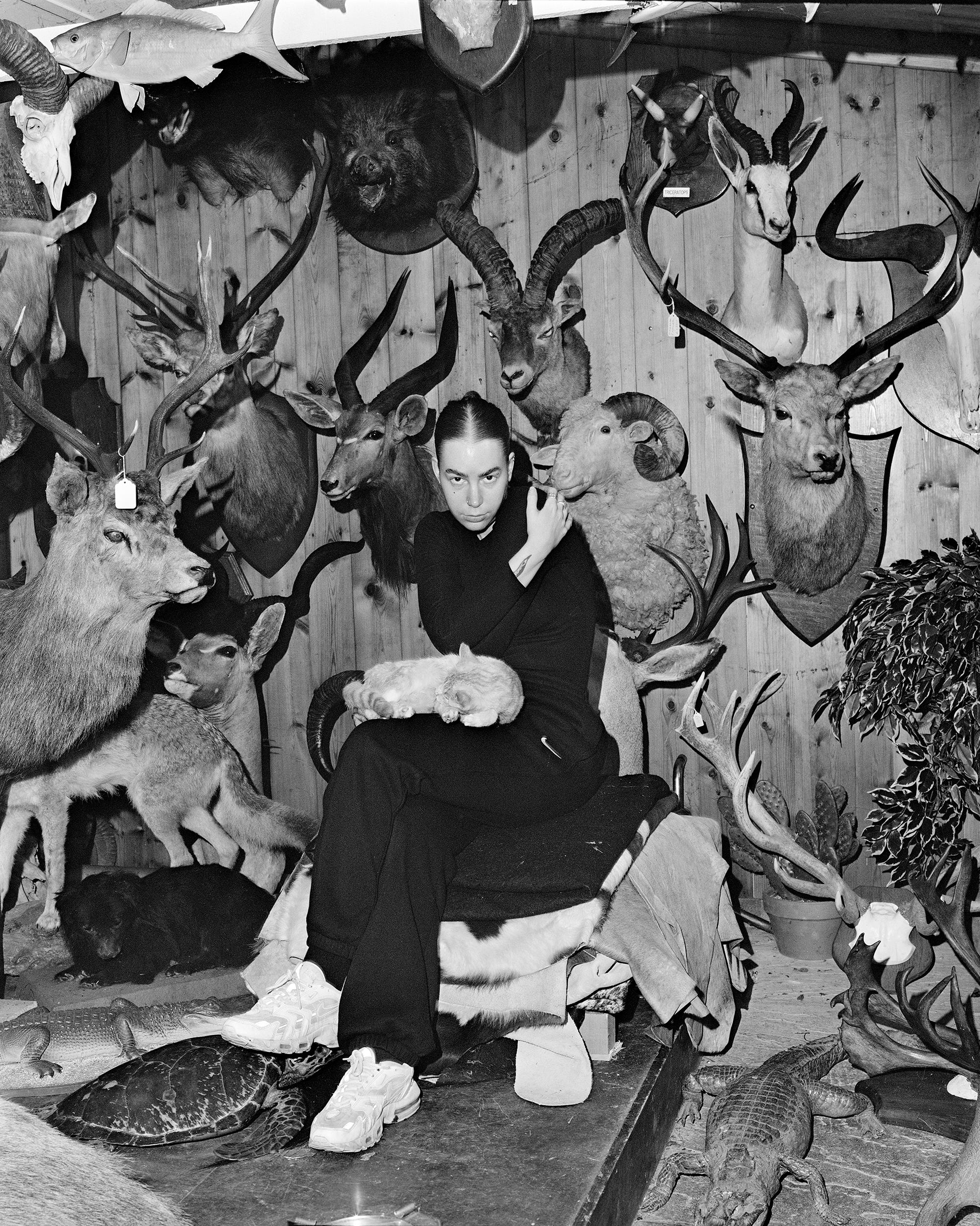 A taxidermy kitten made by Hannah Matthews