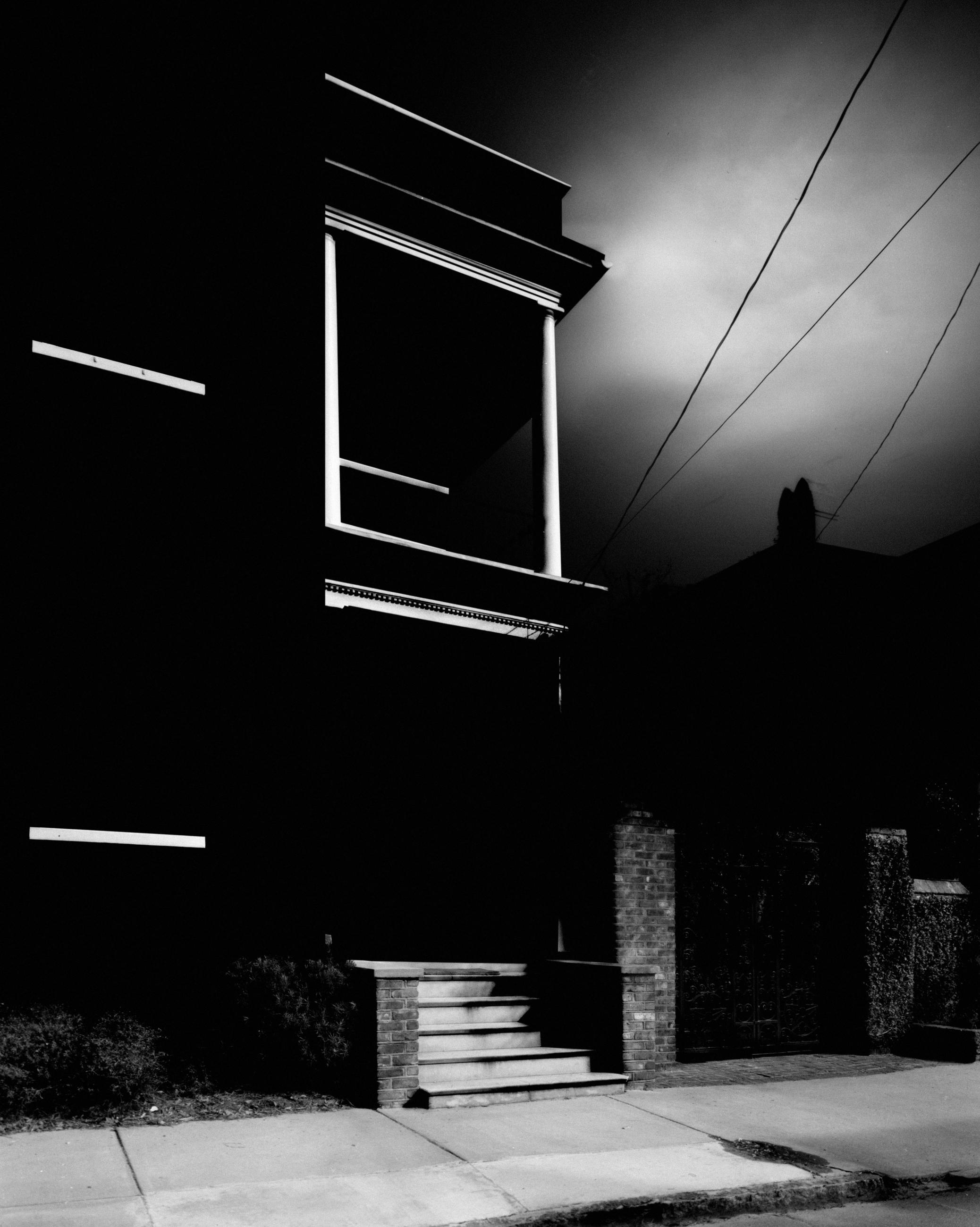Peter Franck’s scenes are quiet, like the stillness of a summer night or the eerie calm under a winter moon. The streets become stages where protagonists might appear, but under the strict rules of photography – shutter speed dictated by moonlight, no flash – they remain phantoms. Light and shadow weave them into a fleeting dance, never fully formed, always on the verge of being. There is no resolution, just fragments – ghosts lingering in spaces between the past and future, waiting to be remembered, waiting to be found.