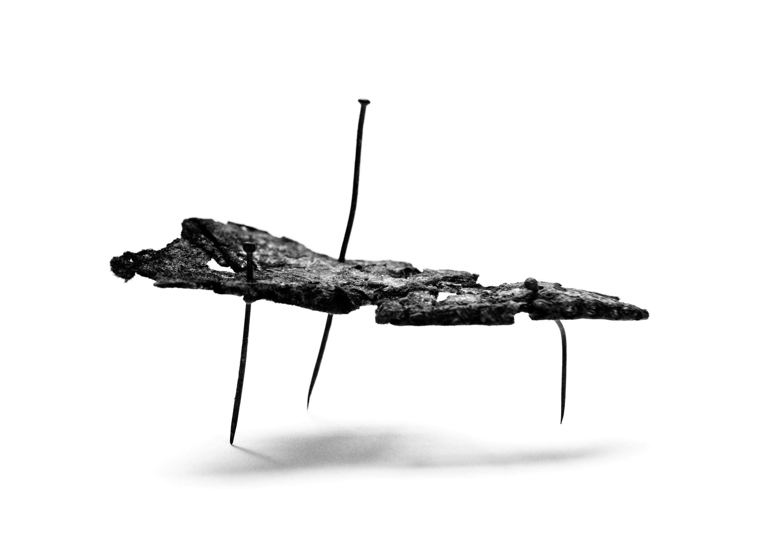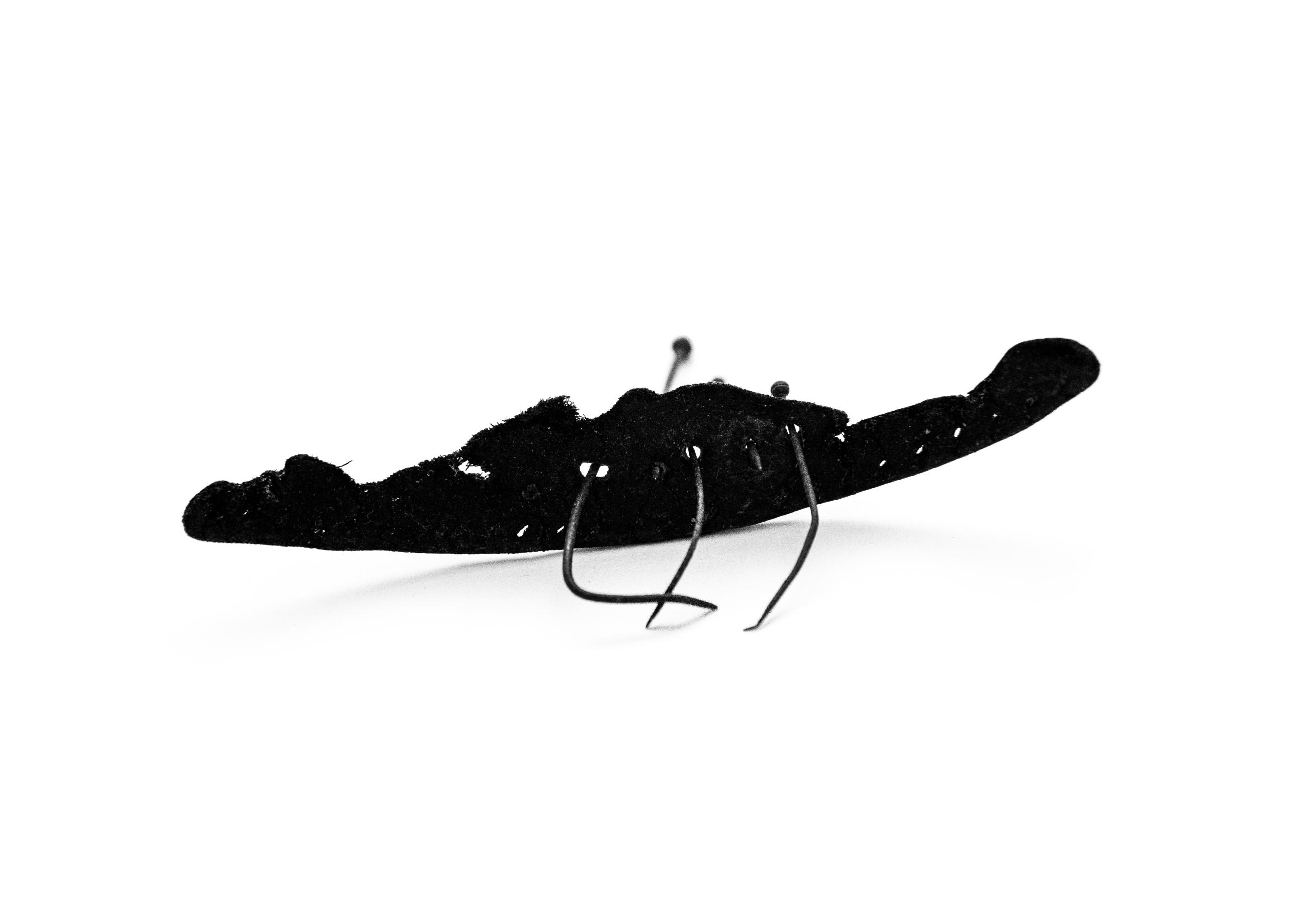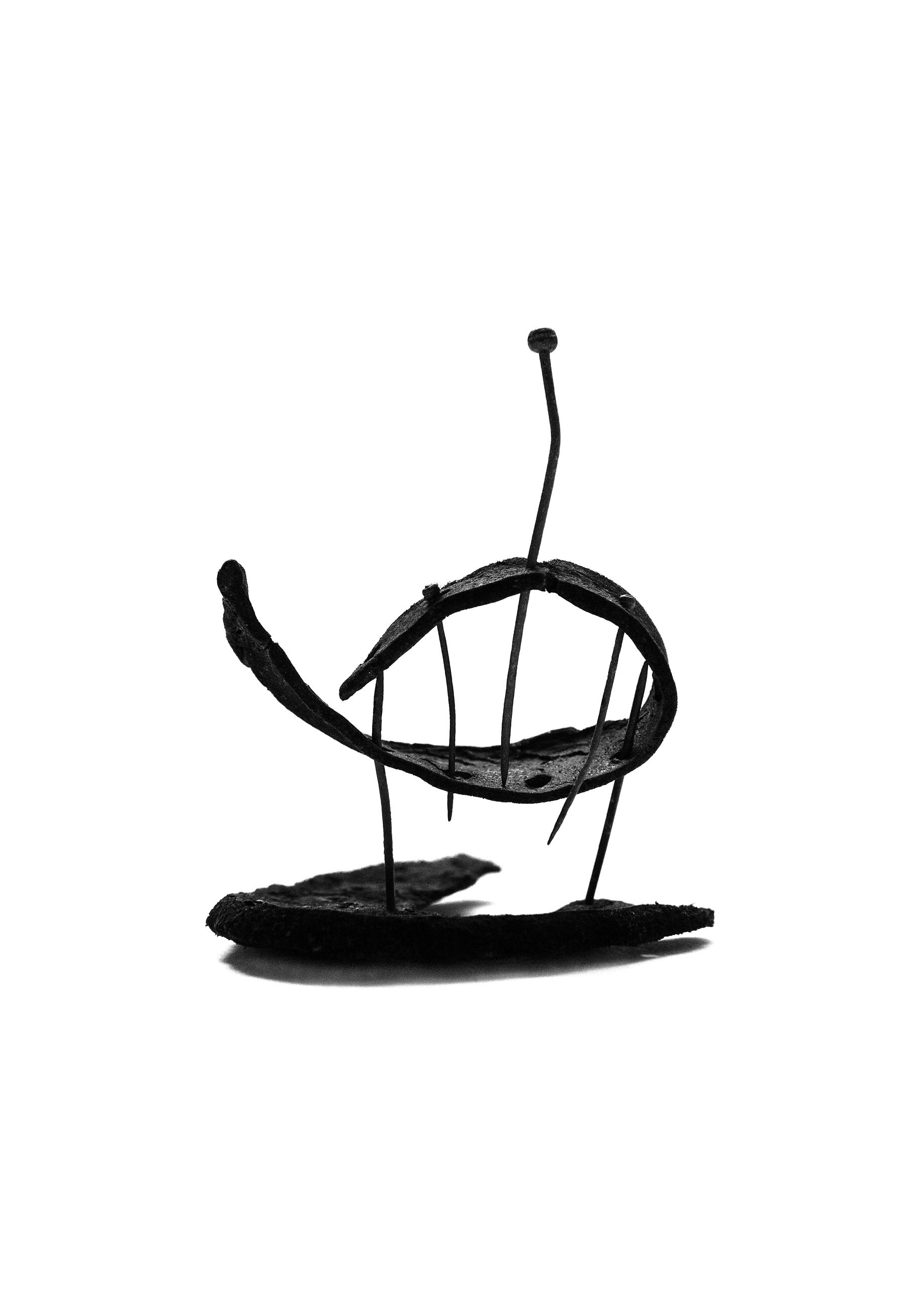 A small-scale sculpture constructed from pieces of shoe leather and pins. The photographer is interested in an object's ability to tell stories and connect us with the past, and hopes to surprise and add layers of meaning through her work.