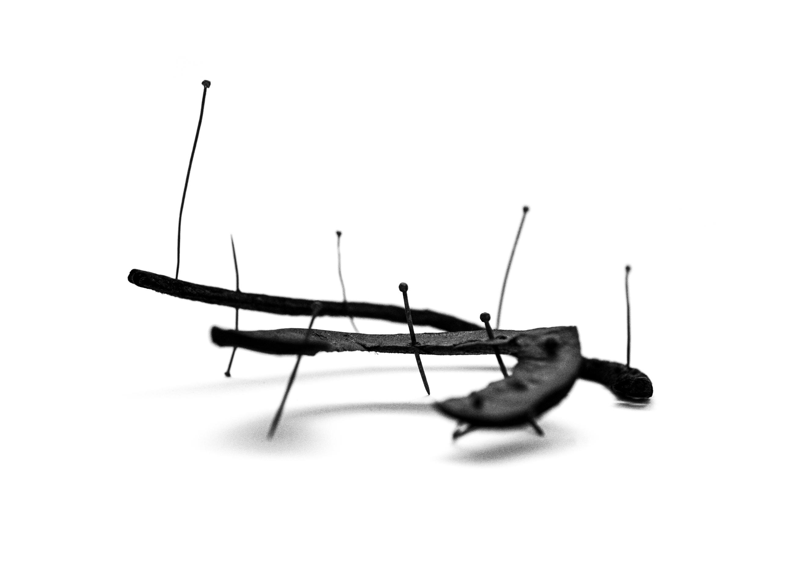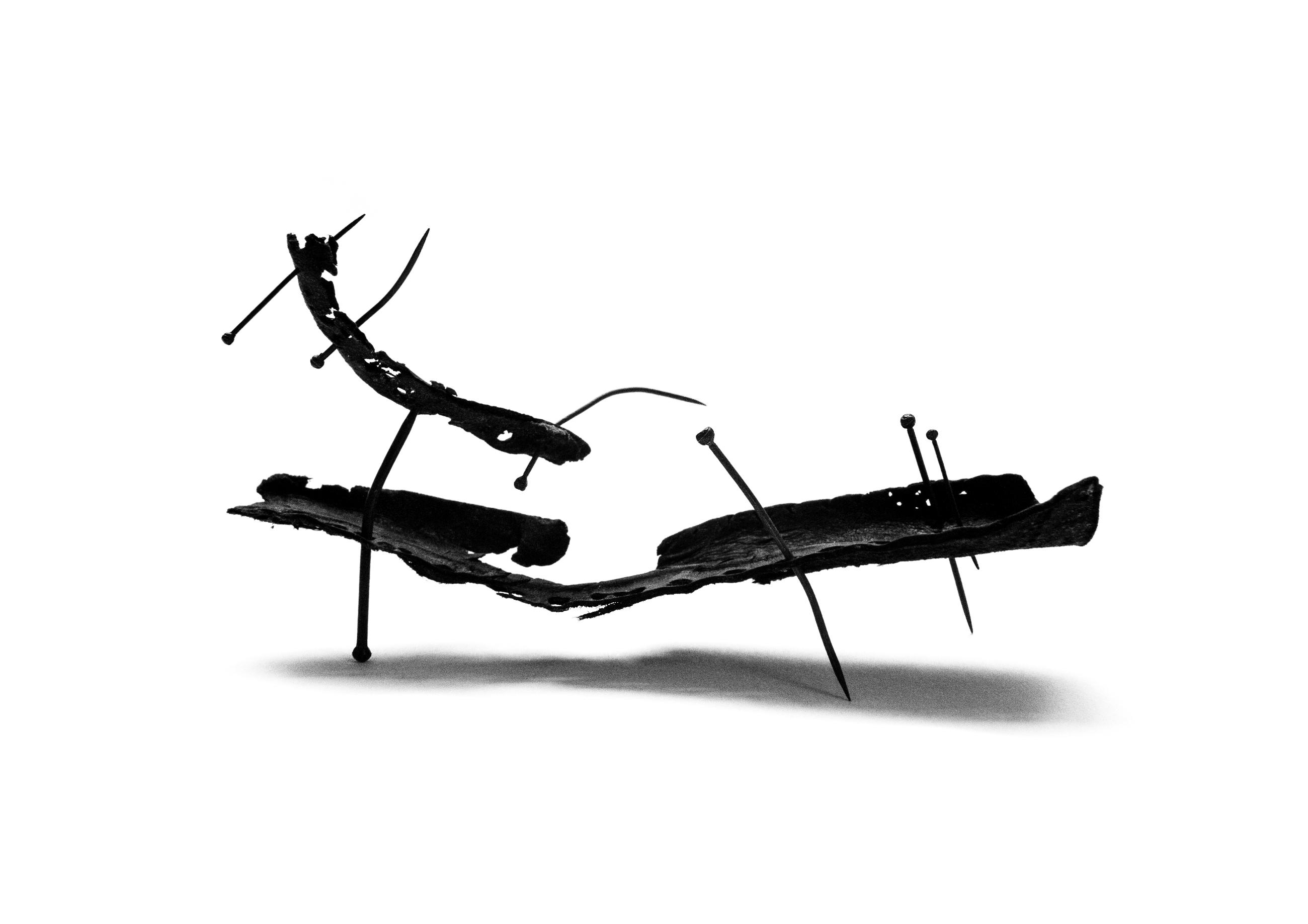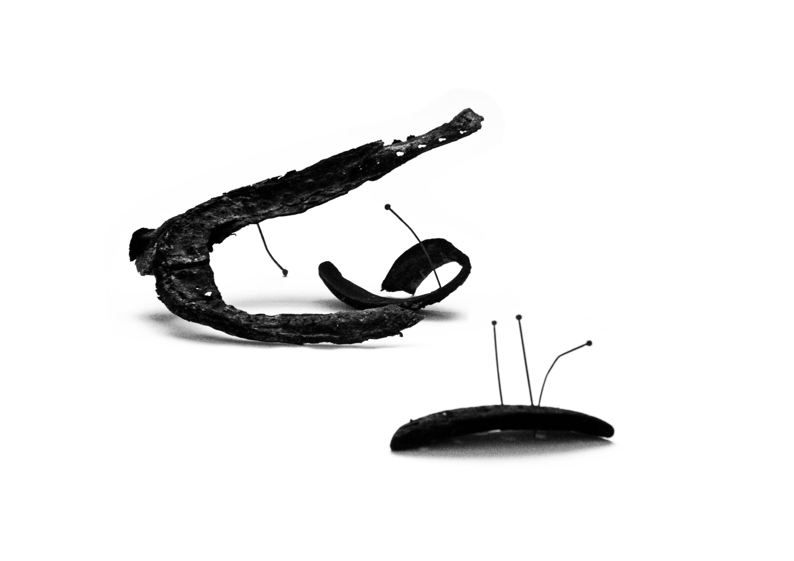 A small-scale sculpture constructed from pieces of shoe leather and pins. The photographer is interested in an object's ability to tell stories and connect us with the past, and hopes to surprise and add layers of meaning through her work.