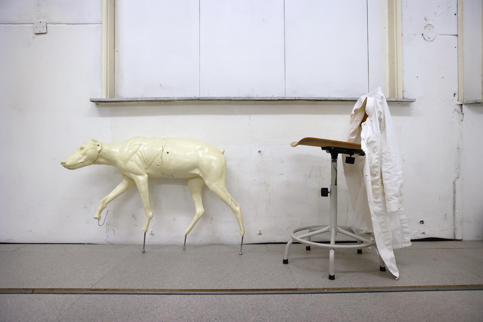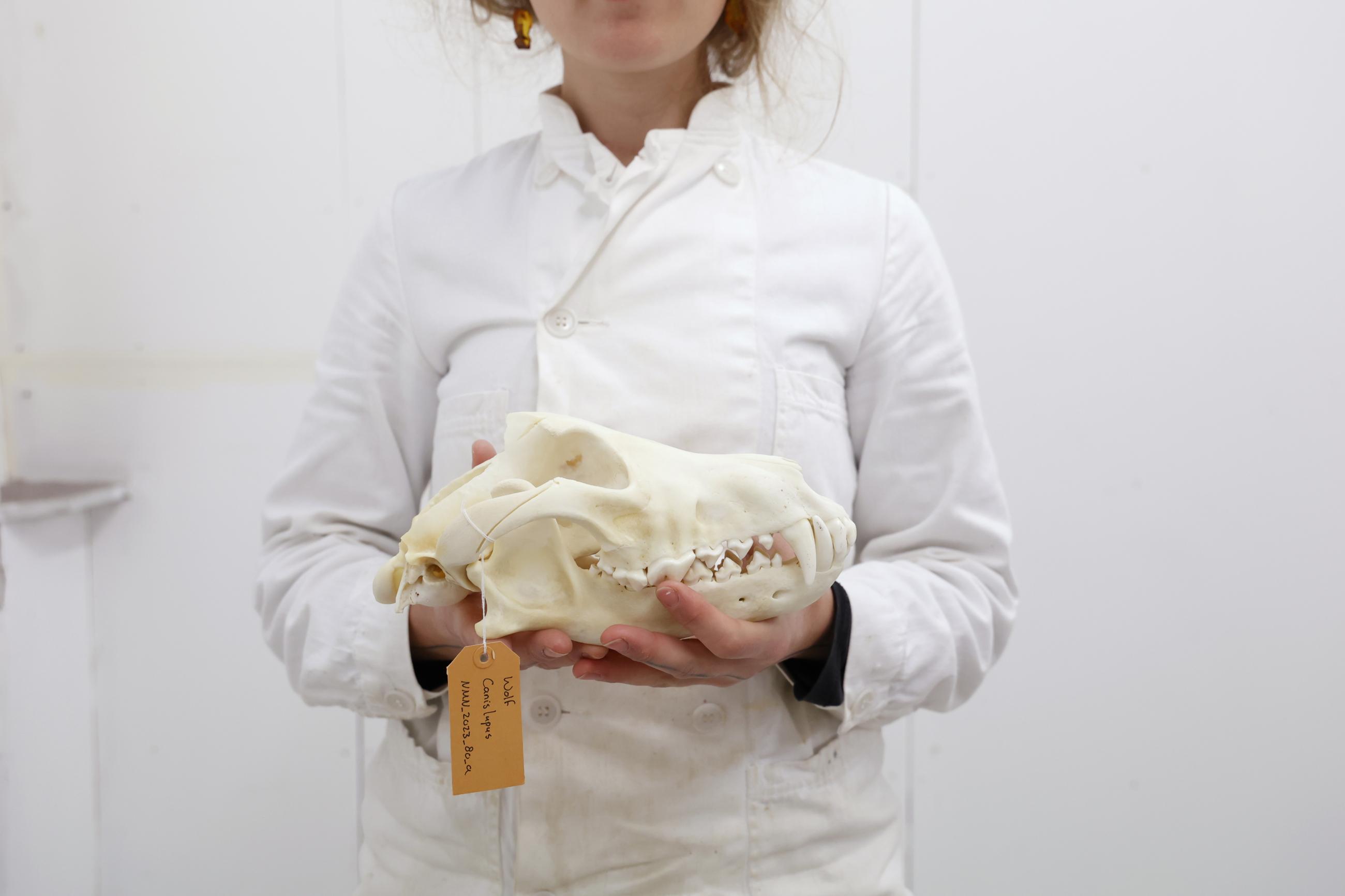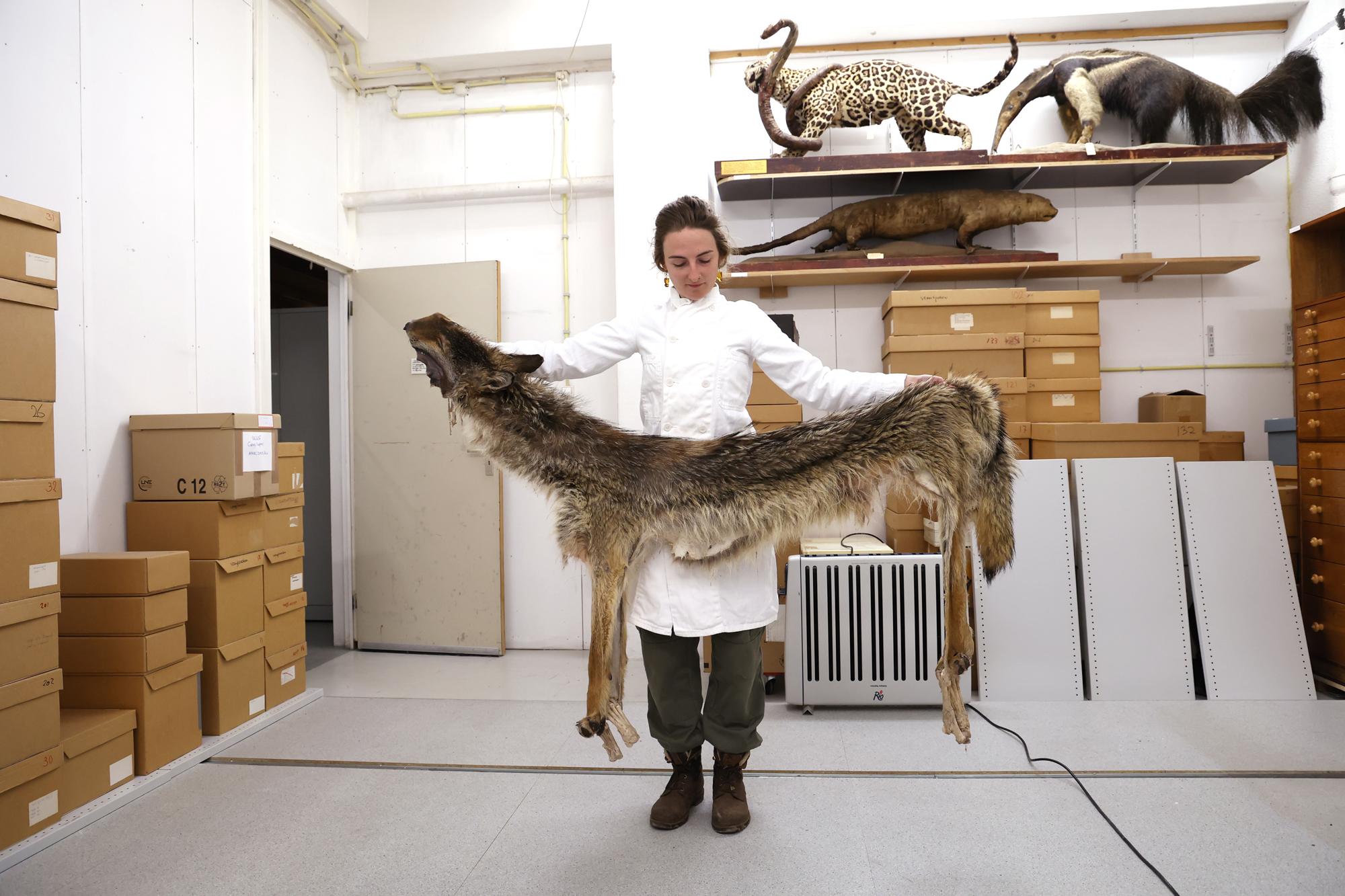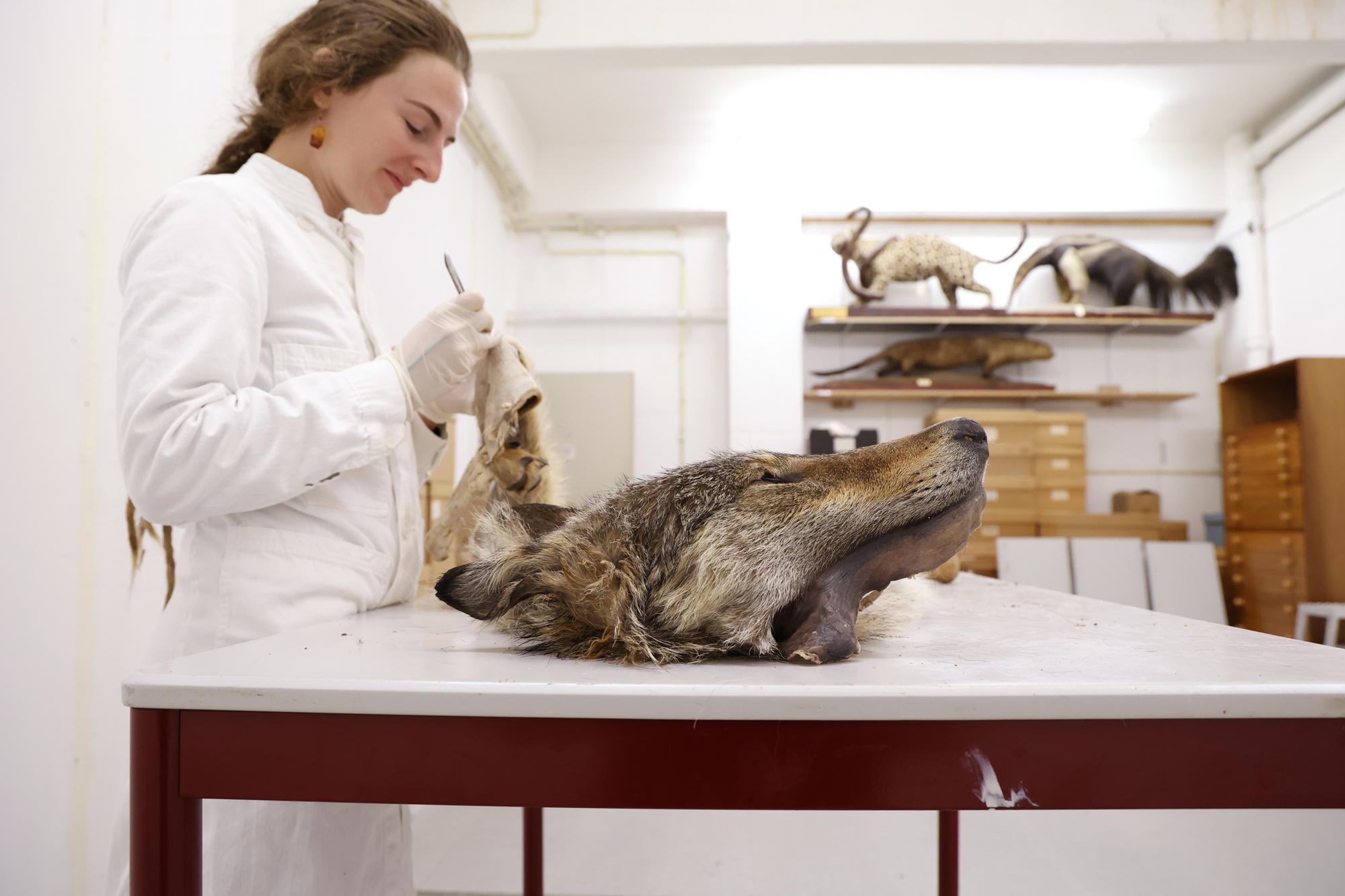 This one-year-old male wolf, identified with the file name GW2937m, was hit by a car when he was crossing the A12 between Duiven and Zevenaar in the Netherlands. Although the animal survived the immediate accident, it was so badly injured that it had to be euthanised. It was then given to a taxidermist, Sita van Hoorn, to prepare for the Museum De Bastei in Nijmegen.