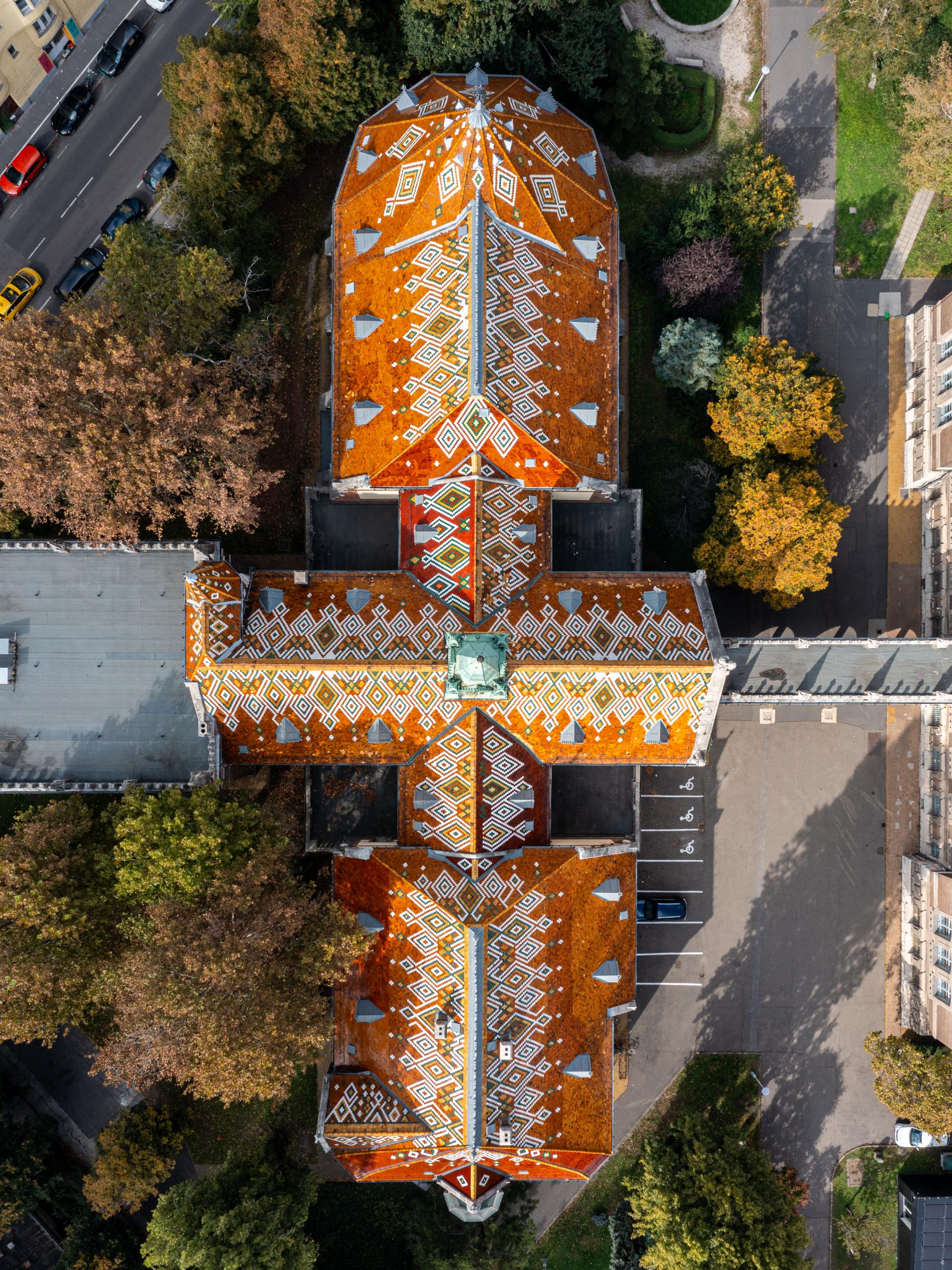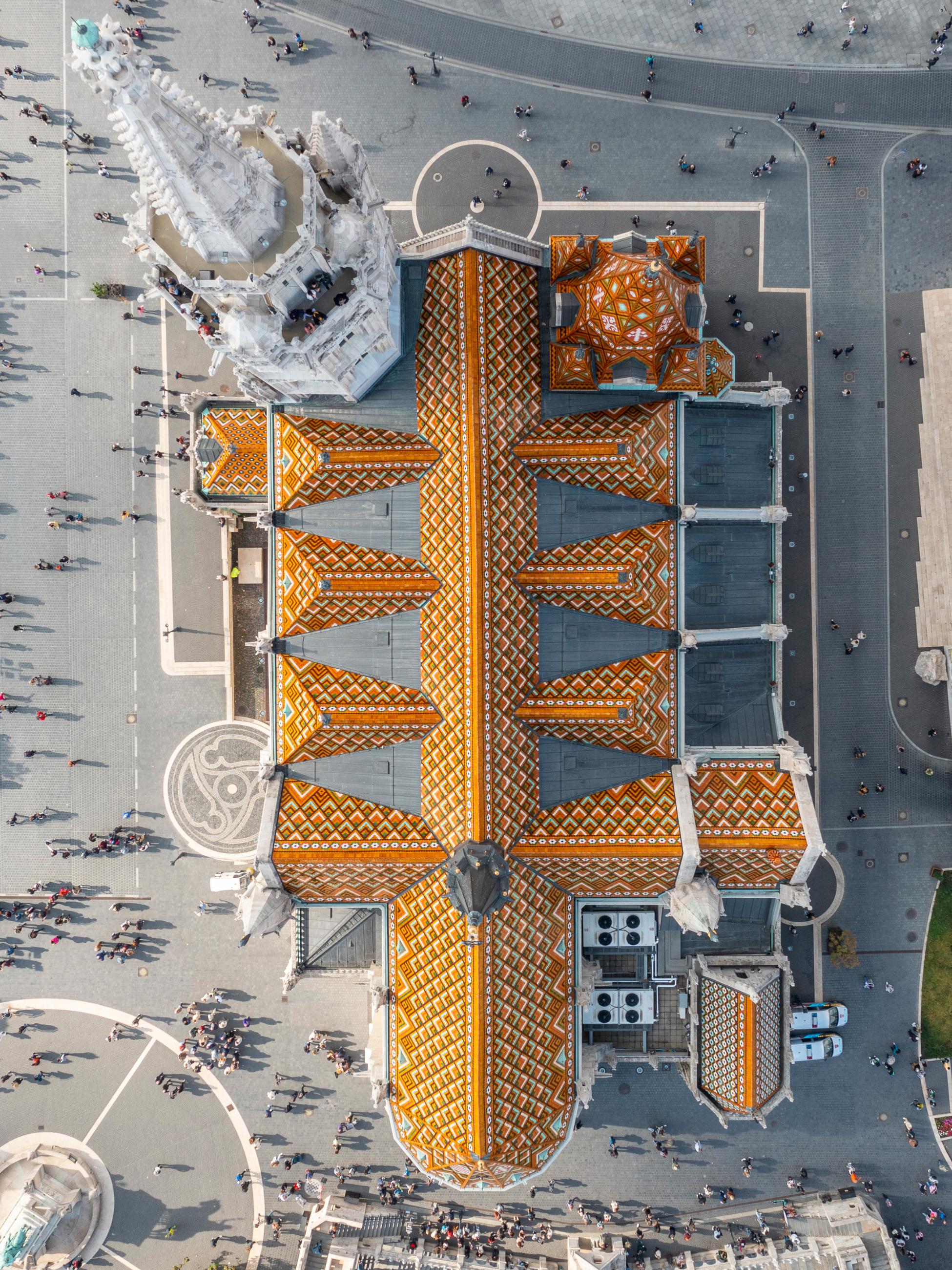 This series presents an aerial exploration of Budapest’s iconic buildings decorated with Zsolnay architectural ceramics. Zsolnay ceramics hold a vital place in Hungarian cultural heritage, symbolising a harmonious blend of craftsmanship and innovation. These decorative elements not only enhance the aesthetic appeal of the buildings but also embody the essence of Art Nouveau, which emphasises organic forms and complex detailing. Through this series, the viewer is invited to appreciate the beauty and significance of these iconic structures, highlighting how Zsolnay ceramics contribute to Budapest’s unique architectural narrative.