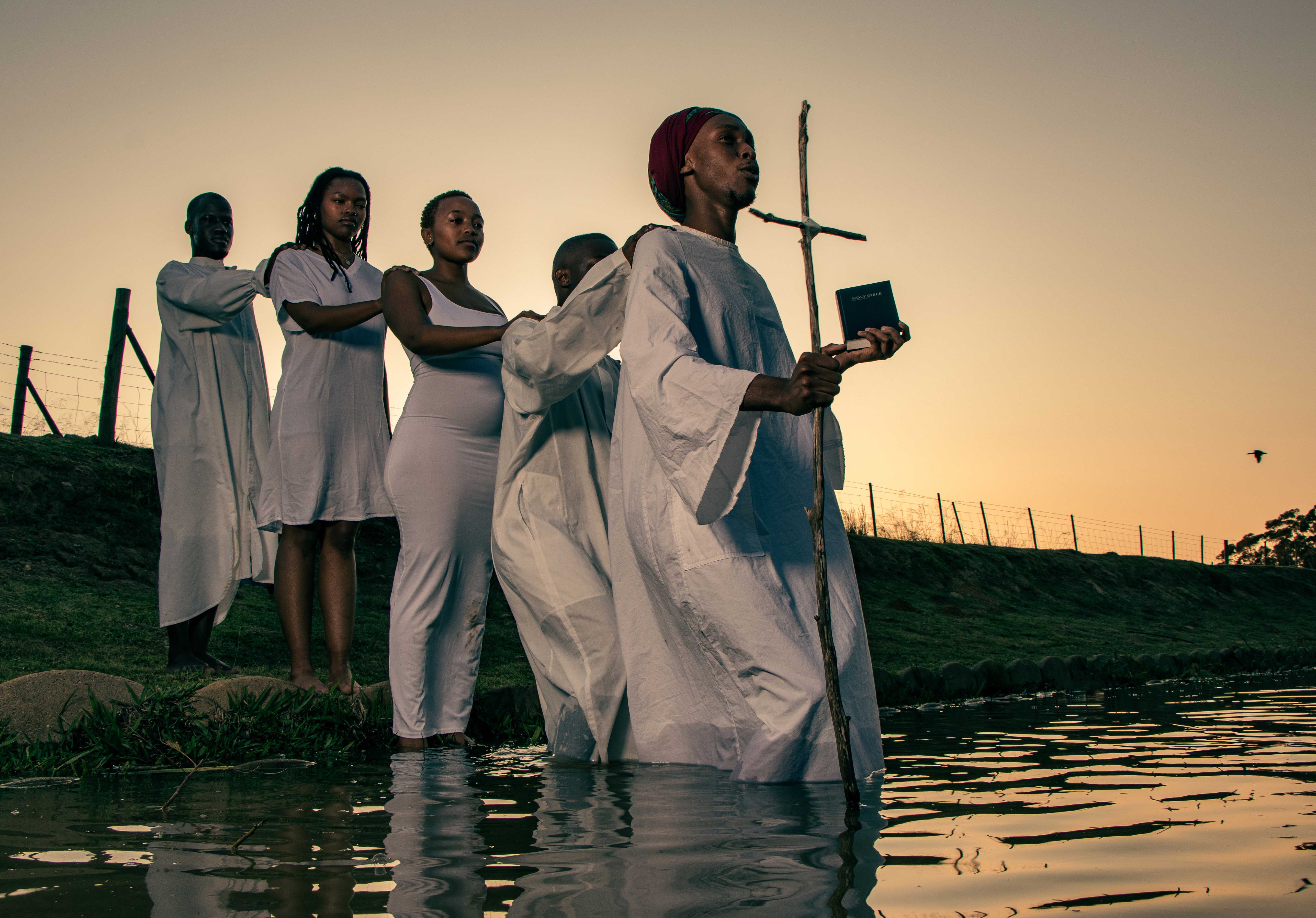 This series documents the ceremony of baptism in traditional cultures in South Africa, focusing on the rituals observed by the Xhosa people. Drawing on the poem ‘What if Water was God’ by Nigerian poet and playwright Niyi Osundare, Mahlangu explores baptism as a journey of rebirth, capturing the power of water as a sacred medium. Each image reflects themes of creation and beginning, considering baptism as an act of faith, but also as a connection to the divine flow within and around us.