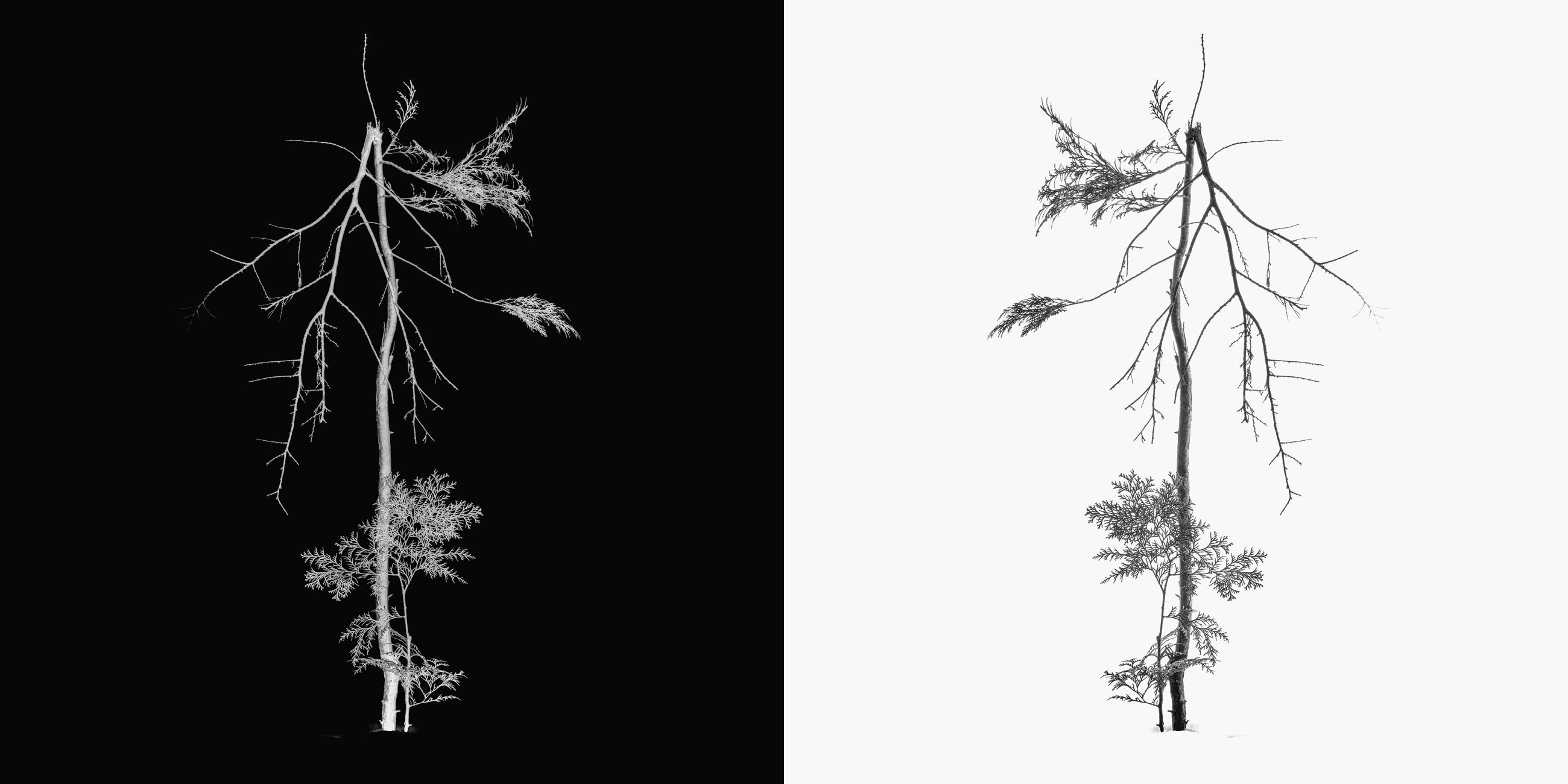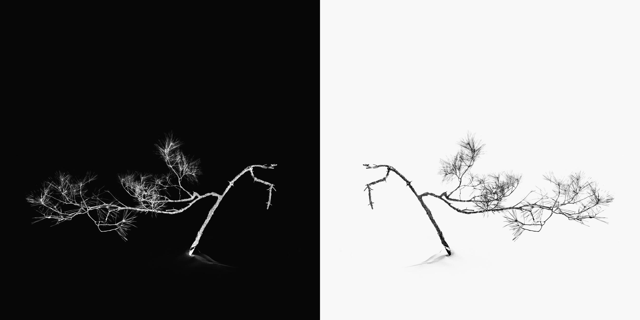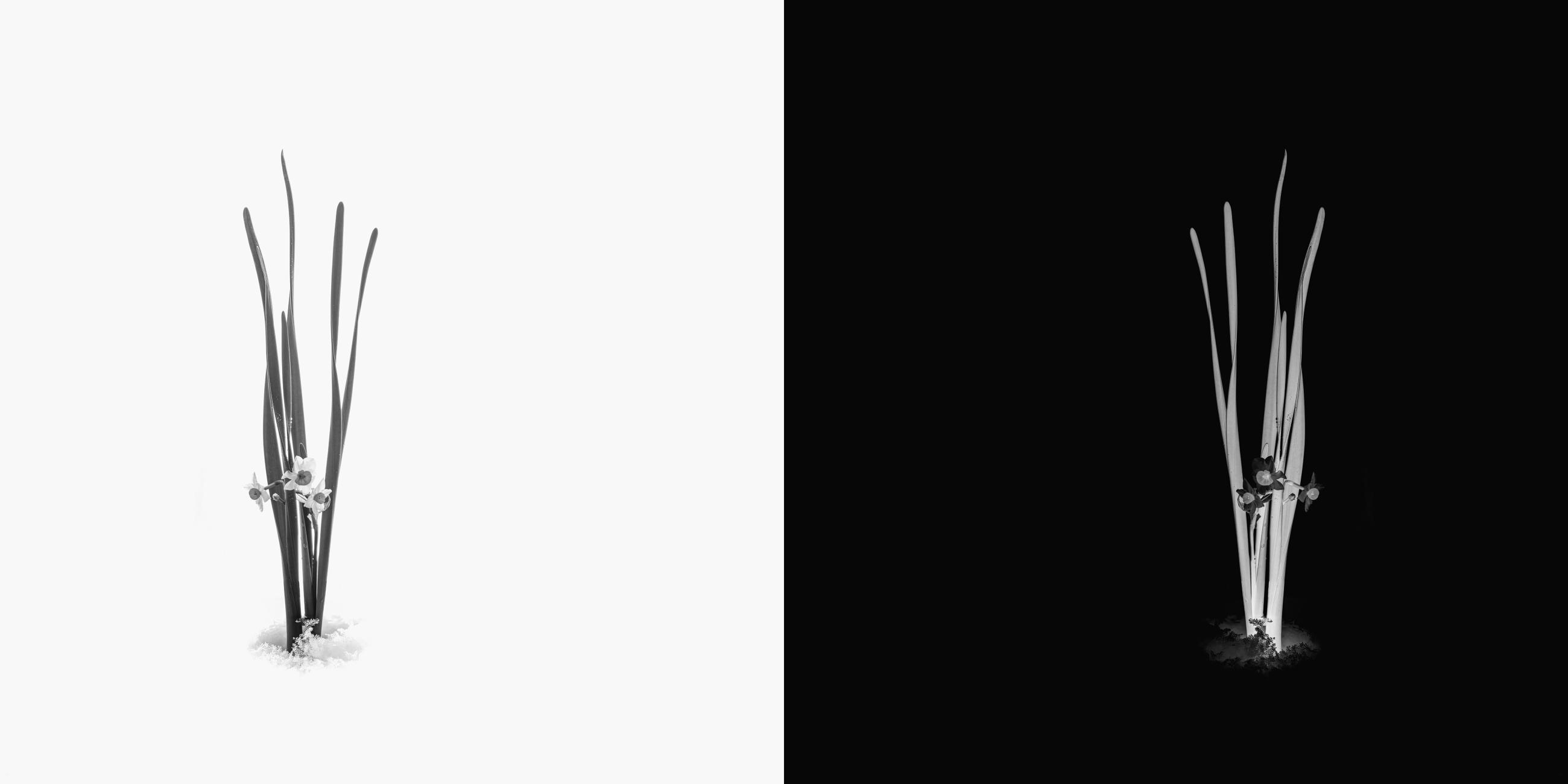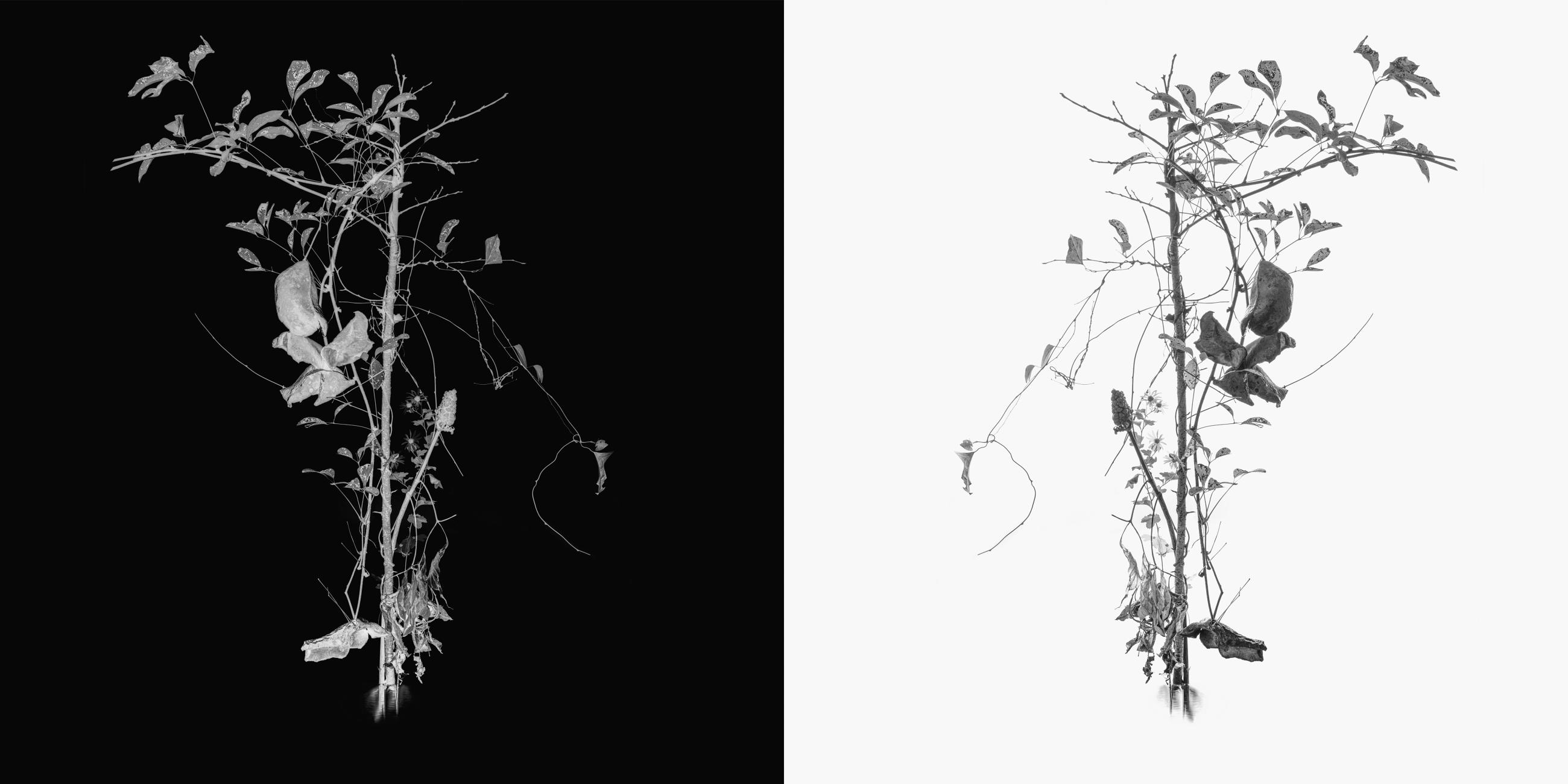 Each work in this series was made by inverting a photograph to produce a digital negative that was contact-printed as a silver-gelatine print. Showing the negative beside the positive reveals the process and like linked verse, each pair passes to the next. The same image, repeatedly transformed, reweaves time and place like the changing seasons.