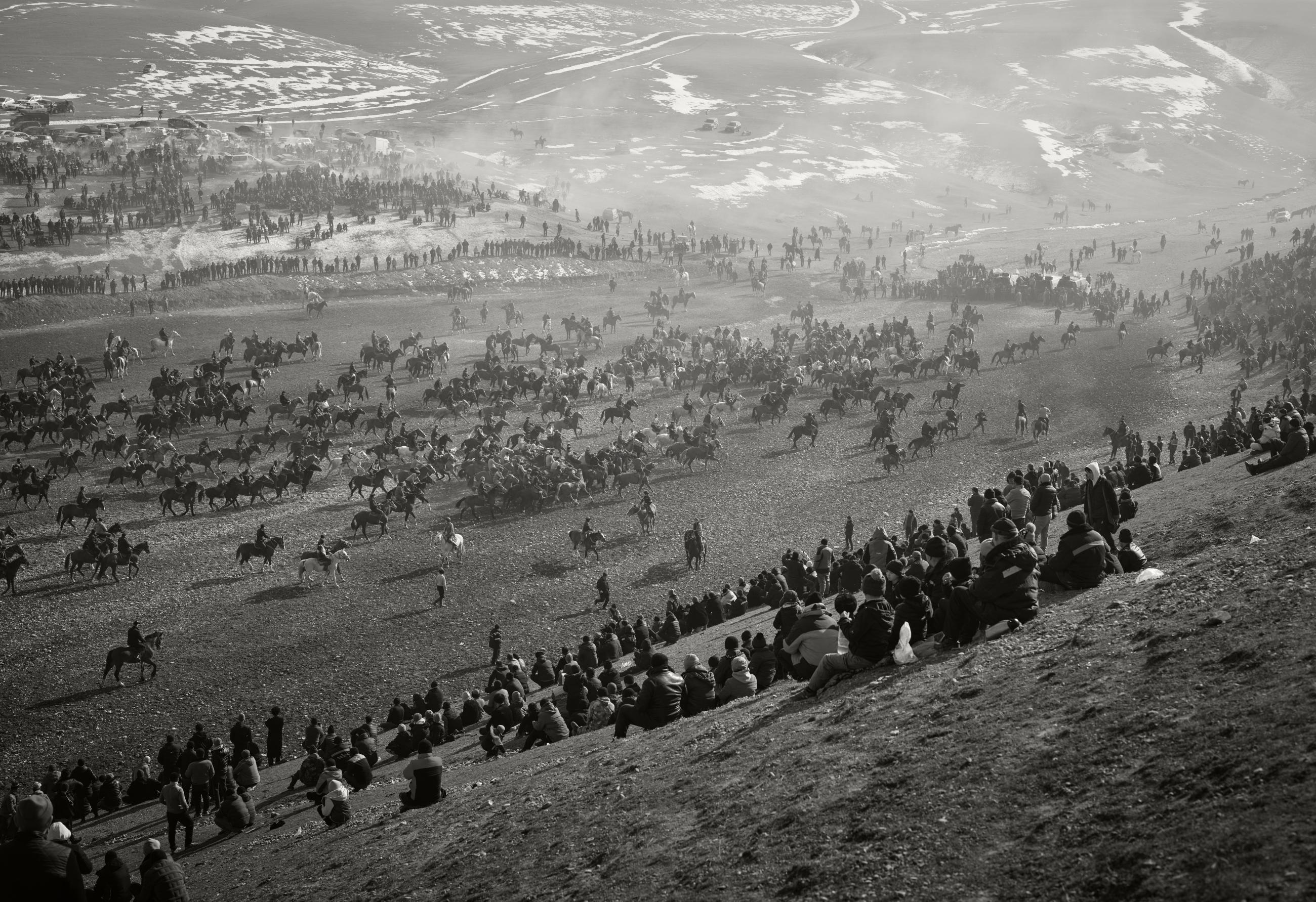 Buzkashi (literally meaning 'goat pulling' in Persian) is the fierce, ancient sport of Tajikistan. It is similar to polo, but there are no teams and no boundaries. The ball is the eviscerated, headless carcass of a goat and the aim is brutally simple: seize it, hold it, break free. The game was born among the nomadic horse cultures of Central Asia, where strength and horsemanship were measures of identity. For centuries, chapandaz (riders) have hurled themselves into this churning mass of hooves and bodies, fighting for honour and a moment of clear sky among the dust.