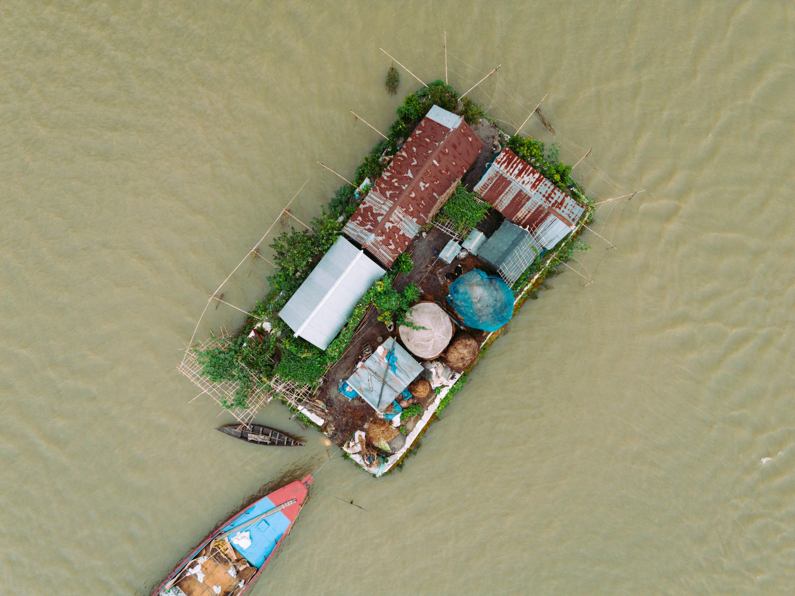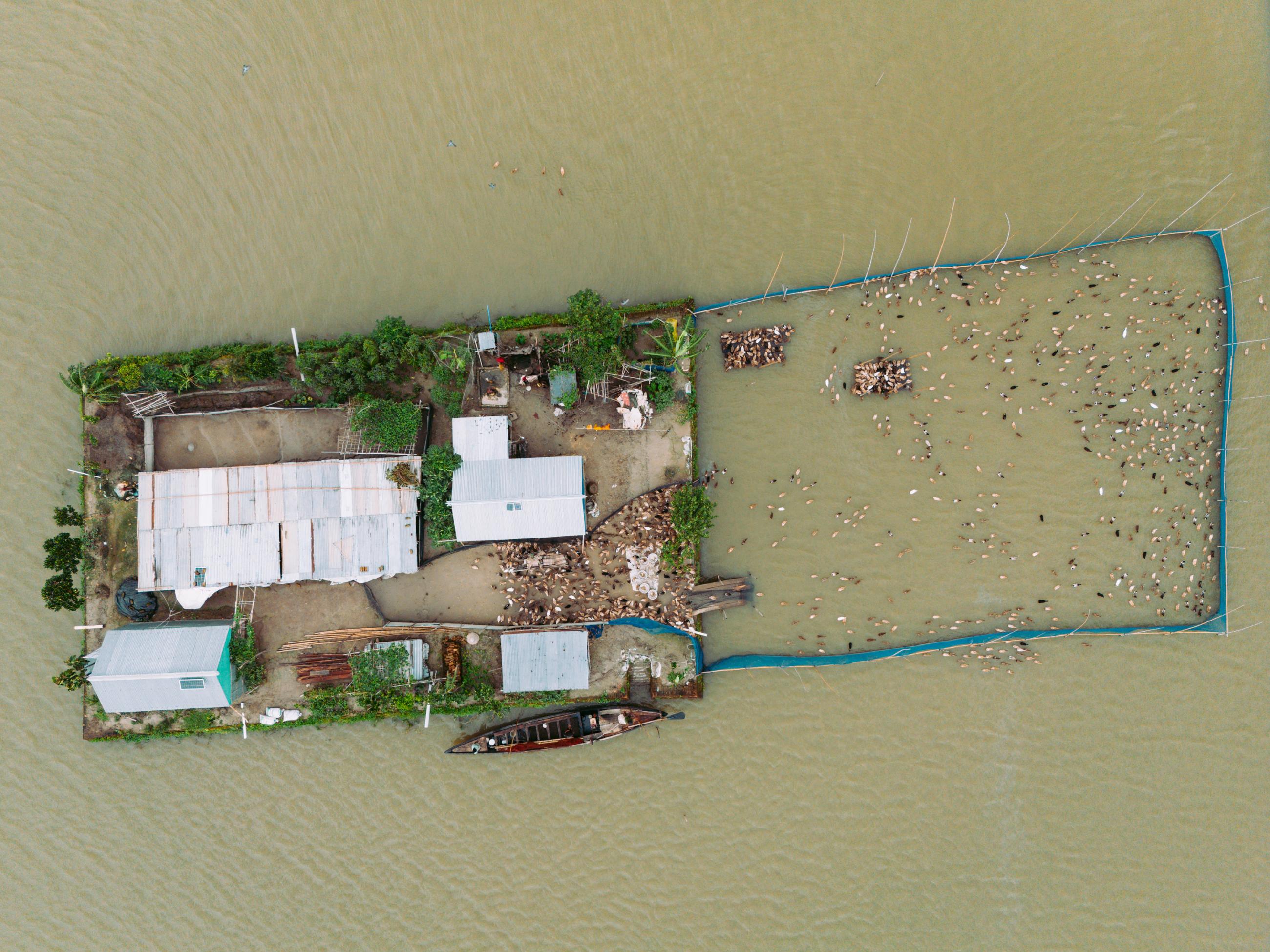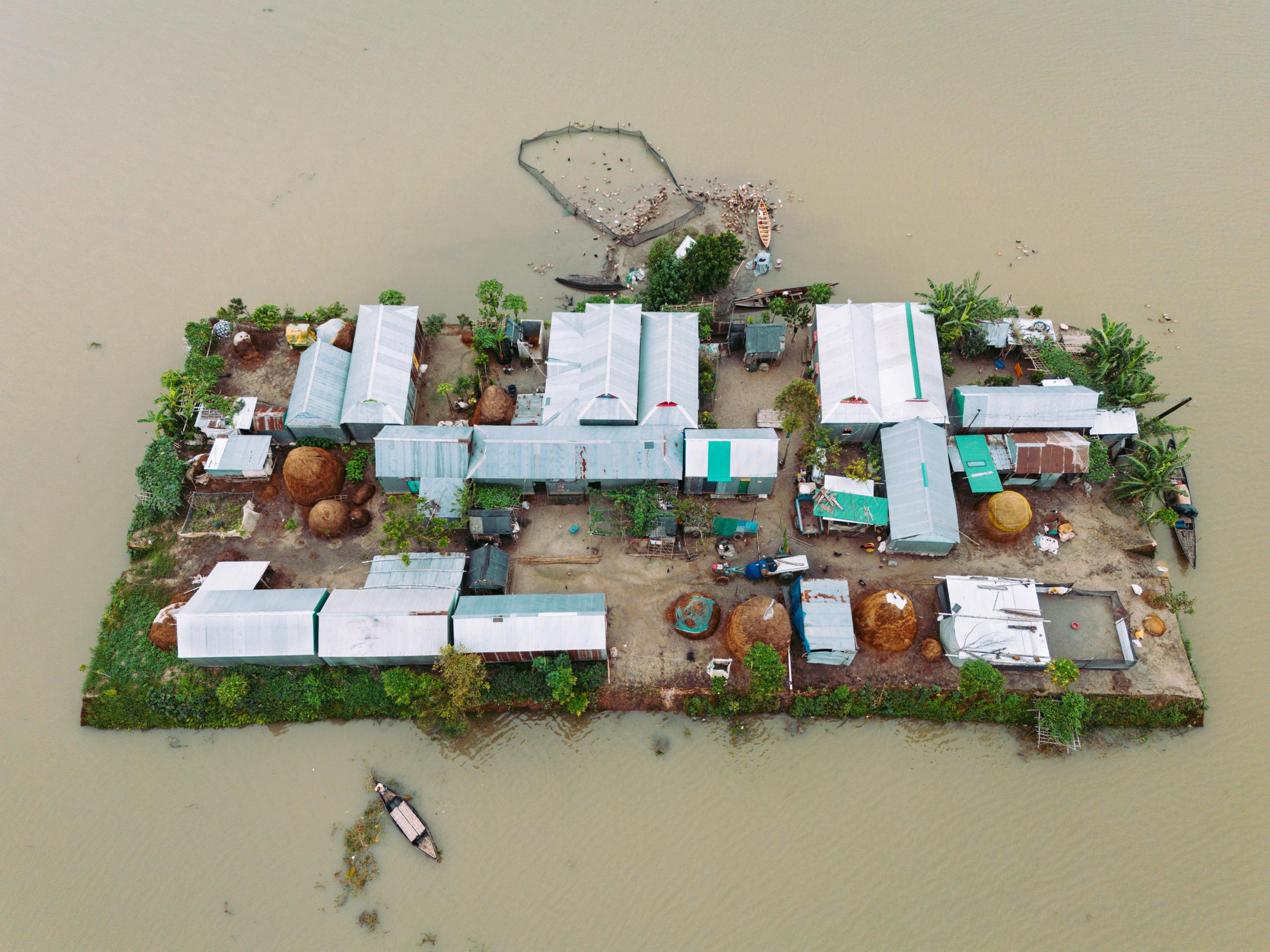 Homes of Haor documents the vernacular architecture of Ashtagram, Kishoreganj, in Bangladesh’s Haor region. Here, homes are built on naturally raised mounds that become islands during the monsoon, surrounded by seasonal floodwater, and boats become the primary means of travel. From above, the settlements form distinct patterns shaped by elevation, water and function. Elevated roads, clustered dwellings, and carefully arranged livestock spaces reveal how rural communities design and adapt their built environment to a landscape defined by water.