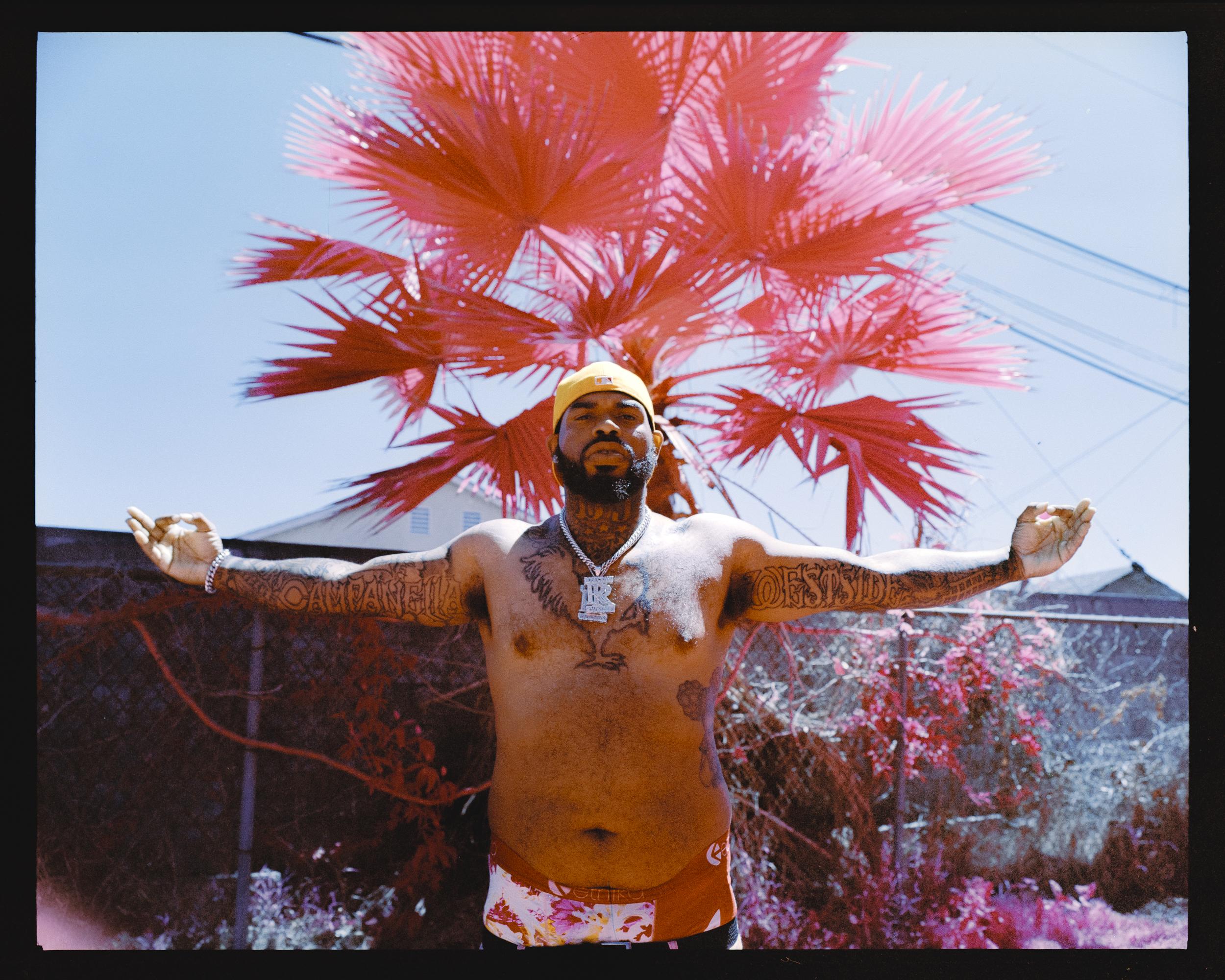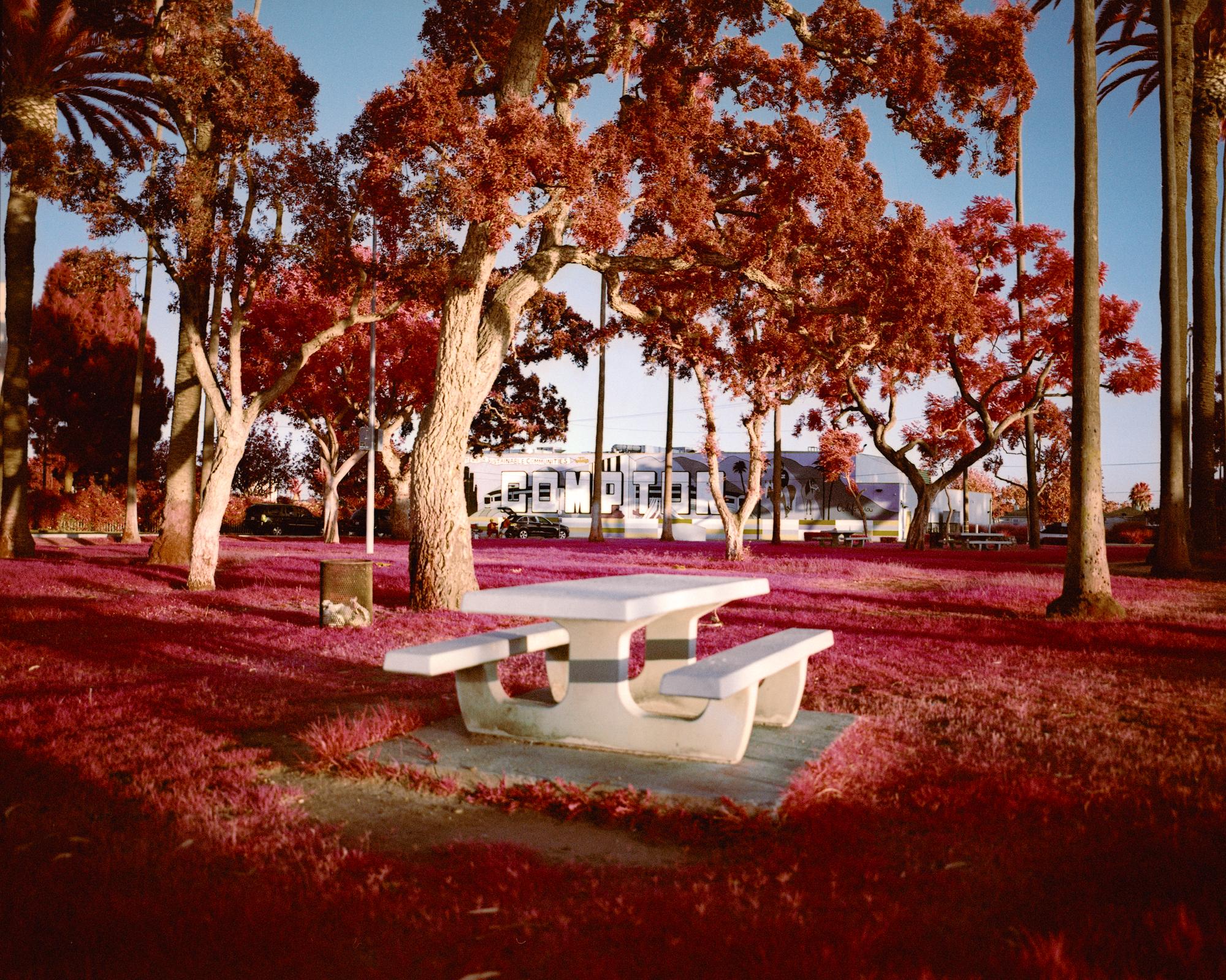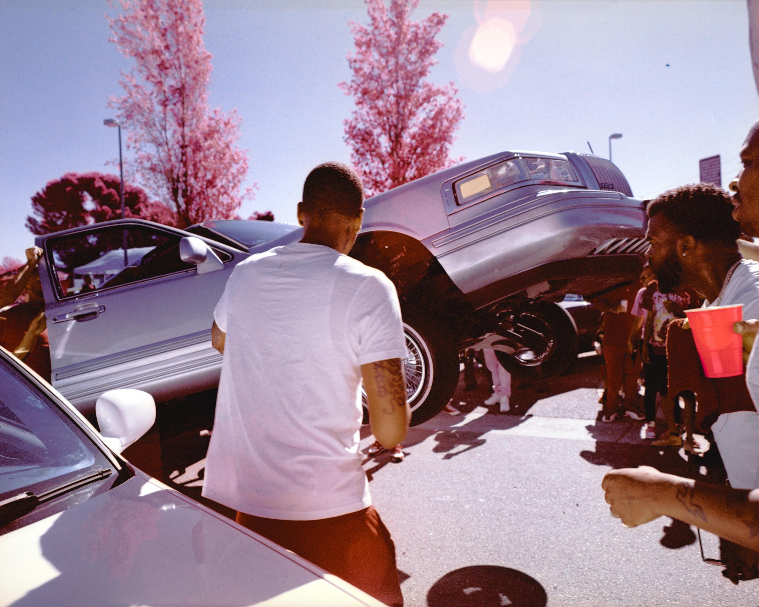 The Palm, On Piru is a photographic series exploring the spiritual connections and collective identities of rappers from South Los Angeles with Pirus/Bloods gang affiliations. The work focuses on the people and places central to the origins of West Coast hip-hop's G-funk music genre, and California's parallel gang culture, examining the interplay of their environment, community and artistic expression. The series was shot on colour infrared film, with its distinctive red and pink tones creating links between the environment and the artists, members, and families that form the Red side of the cultural divide, and the backbone of West Coast Hip Hop.