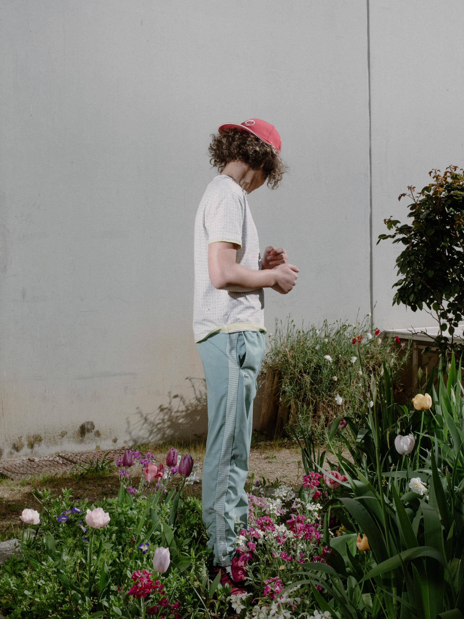 The photograph happened quickly. The flowers, the same colour as the detainee’s sneakers and cap, immediately motivated him to pose. Many young people have experienced a similar scenario:drug dealing, then prison. He tells the photographer his story with ease: ‘I started at 10 o’clock, in a small park, with a bag. Inside, there was really a big package. A lot of money.’
