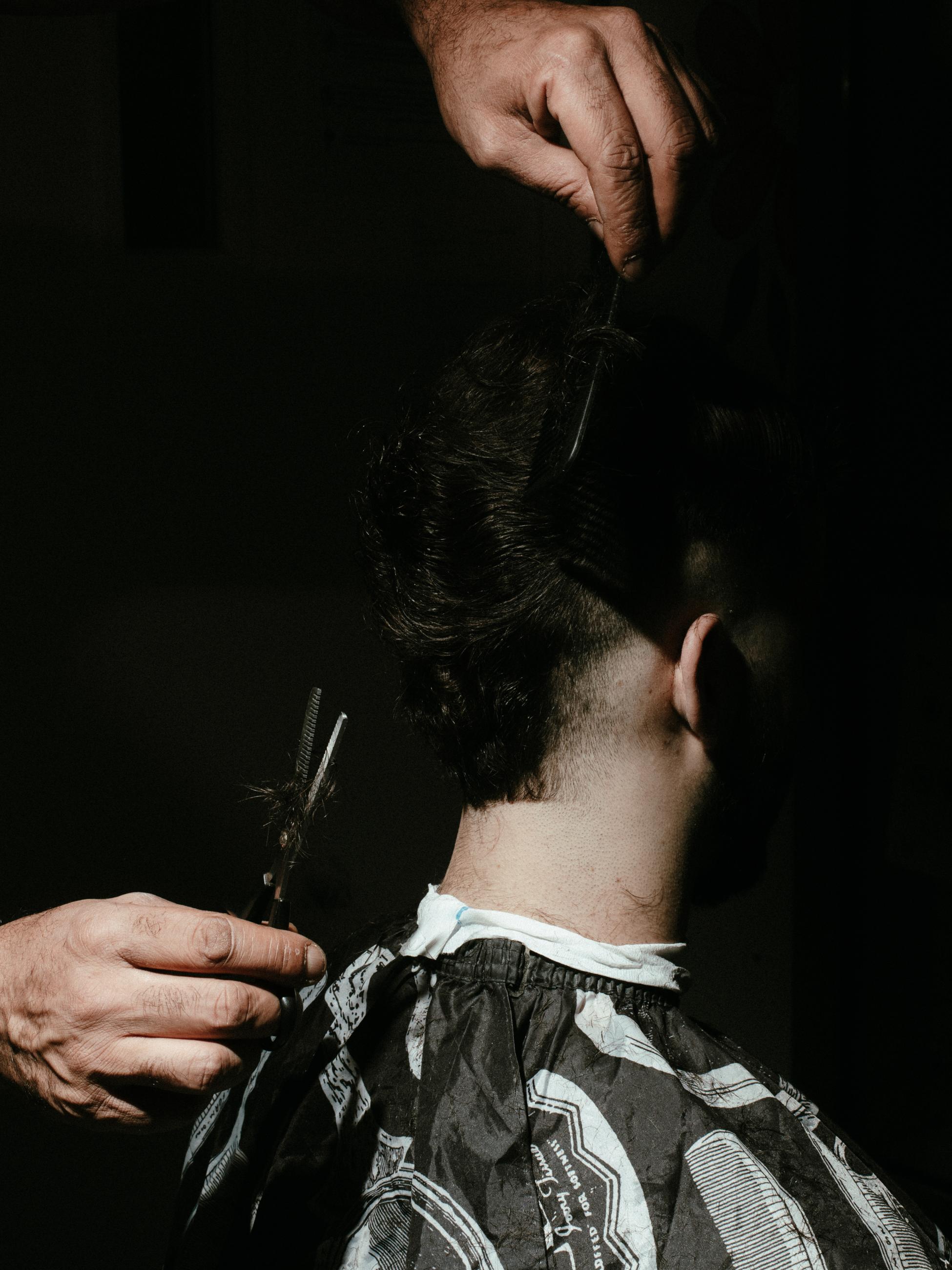 In the common room of a unit, a young person is getting a haircut. The hairdresser, who came from Grenoble, is known on social media for the haircuts he does on streets, in neighbourhoods, youth centres, and elsewhere. The young people trust him, and he knows how to talk to them. The hairstyles are very different from those done by the guards, which are often simpler and more uniform.
