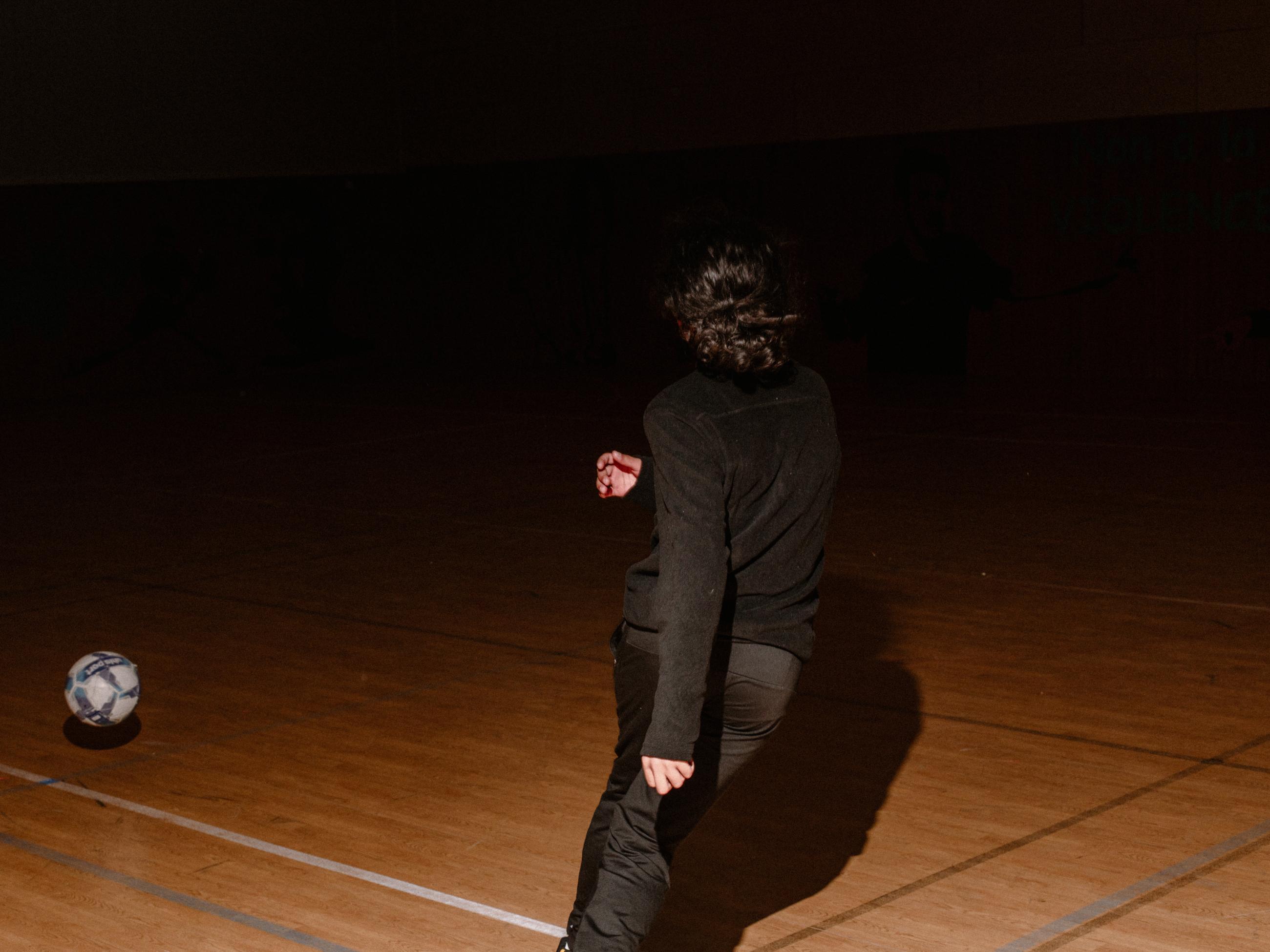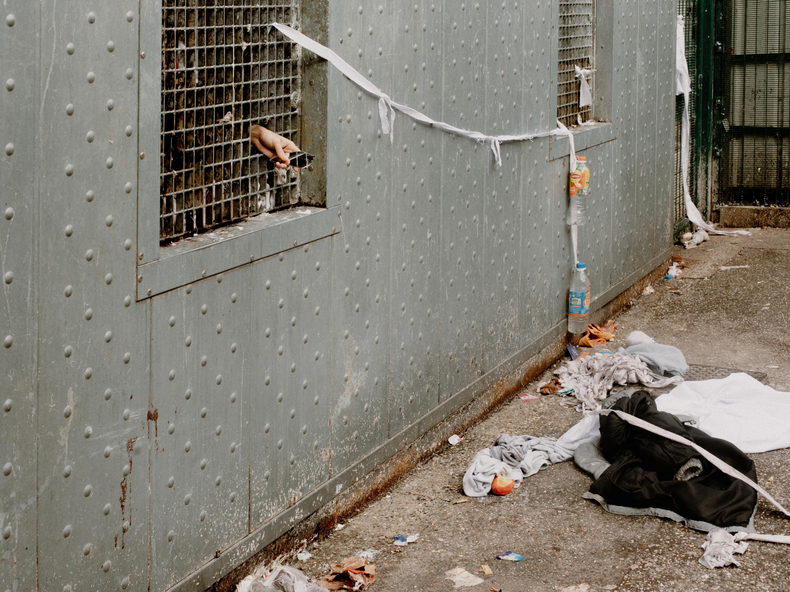 The photographer encountered this young person playing football in the gymnasium. They spoke briefly and the photographer learned that he is an unaccompanied minor. ‘I took an inflatable boat with 18 people on board. I arrived in Spain, then came to France 10 months ago. I’ve been here for almost three months. It’s my first time in prison. I just wanted to play football.’