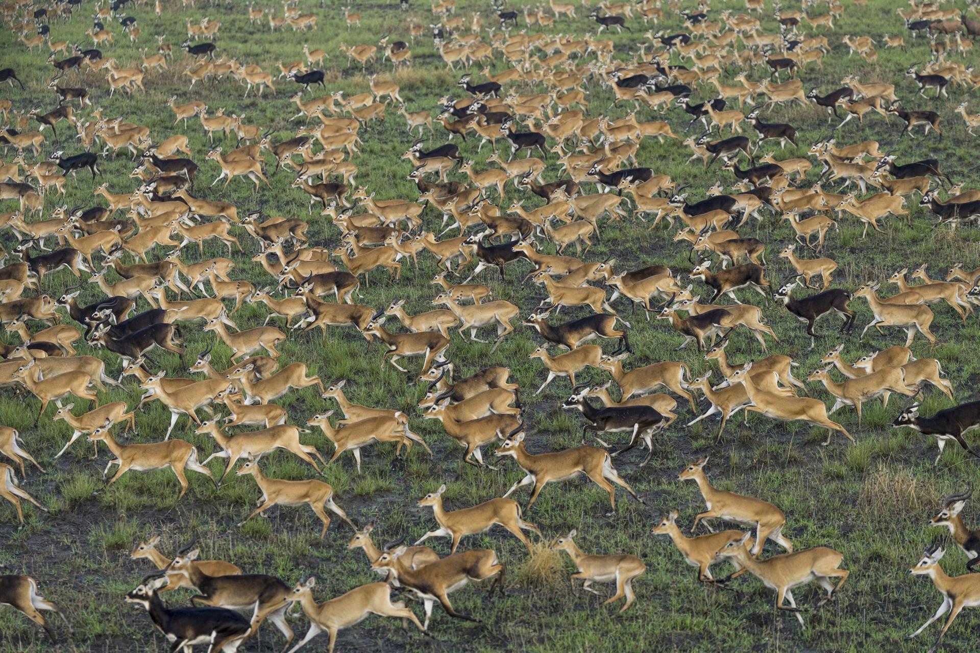 South Sudan is the world’s youngest nation state, born out of decades of civil war. It is also home to a 20-million hectare wilderness area, and the world’s largest terrestrial migration: the Great Nile Migration. Each year, up to six-million antelope move across this vast landscape, which is populated primarily by semi-nomadic pastoralists. With no road infrastructure, all of the photographs in this series were taken from the air, either from helicopters, aeroplanes or with a drone.