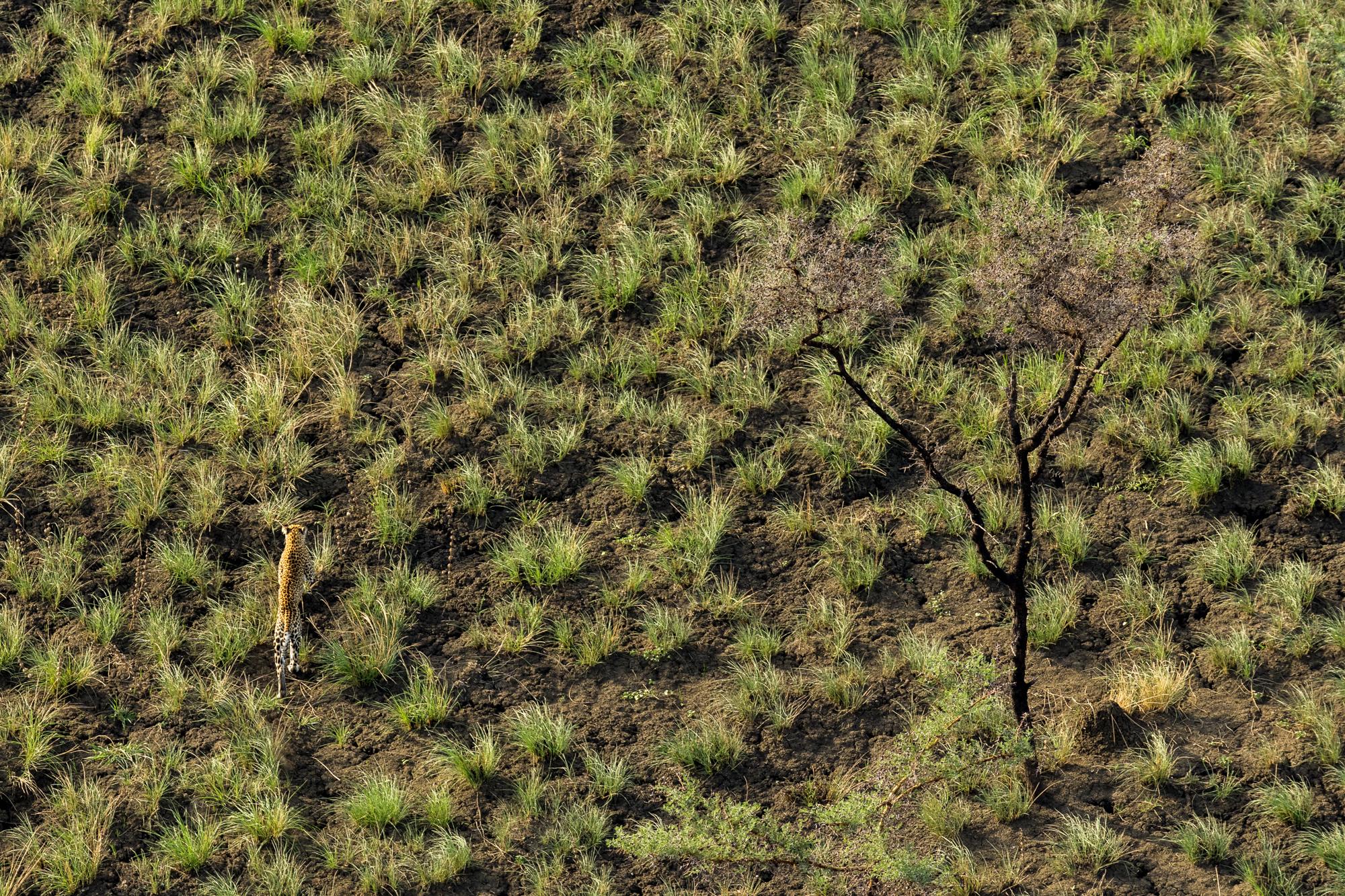 Although their numbers are not as high as they once were, South Sudan is home to numerous predator species, including lions, African wild dogs, spotted hyenas and cheetahs. Here, a lone leopard runs from one group of trees to another, in search of prey on the plains of Badingilo National Park.