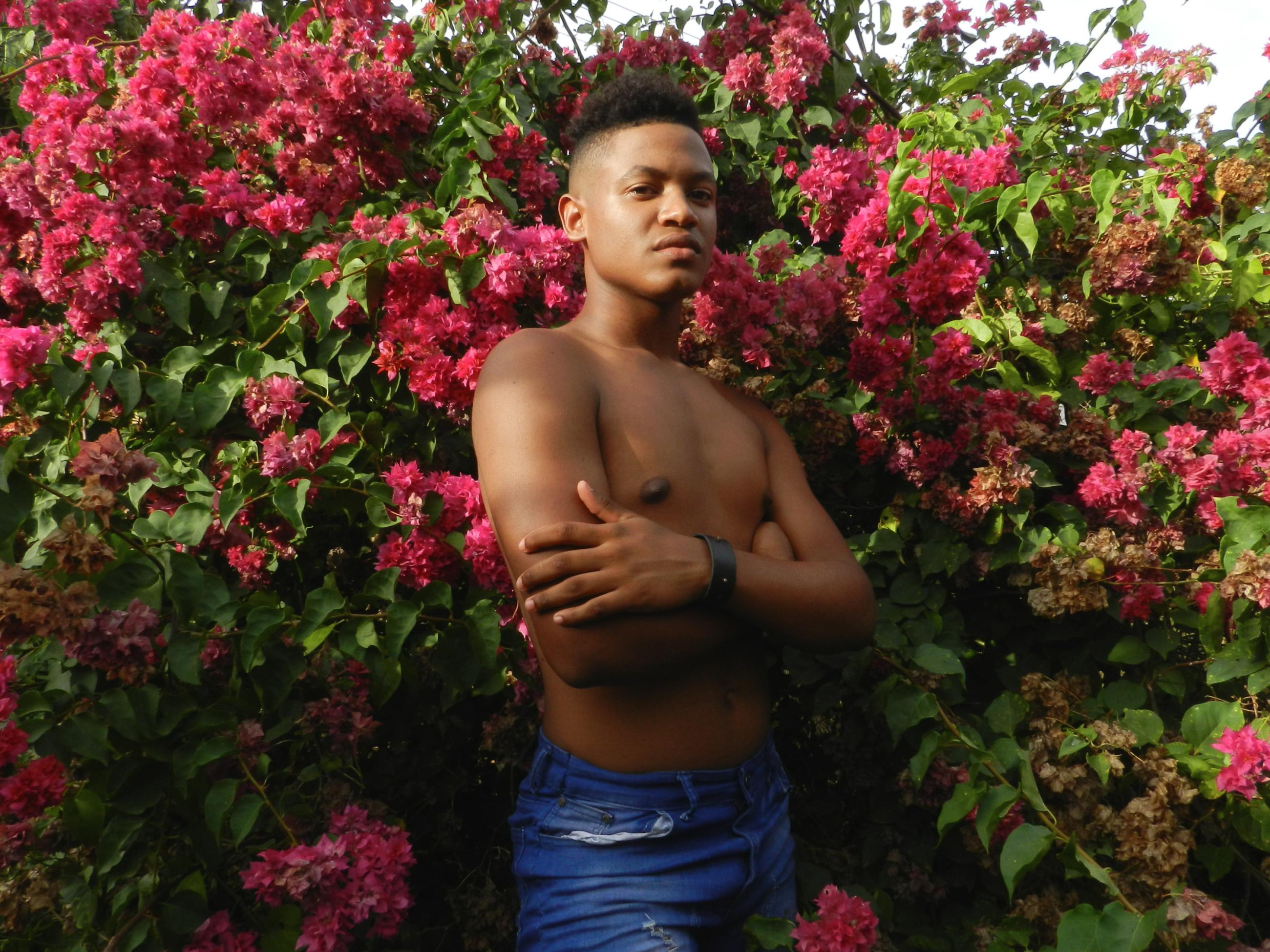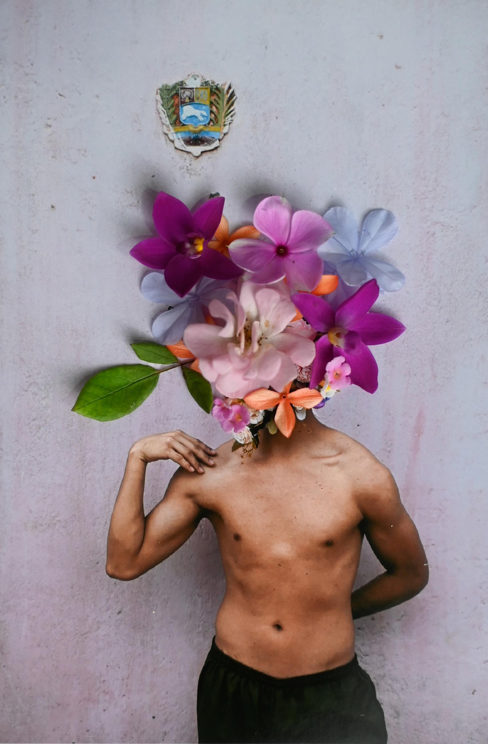 A portrait of a male body in which the absence of the face ‘points to forced anonymity and to the strategies of concealment that shape sexual dissidence in the mining territories of southern Venezuela. The floral intervention, alien to the harsh, extractive imagery of the environment, functions as a symbol of life, desire, transformation and identity.’