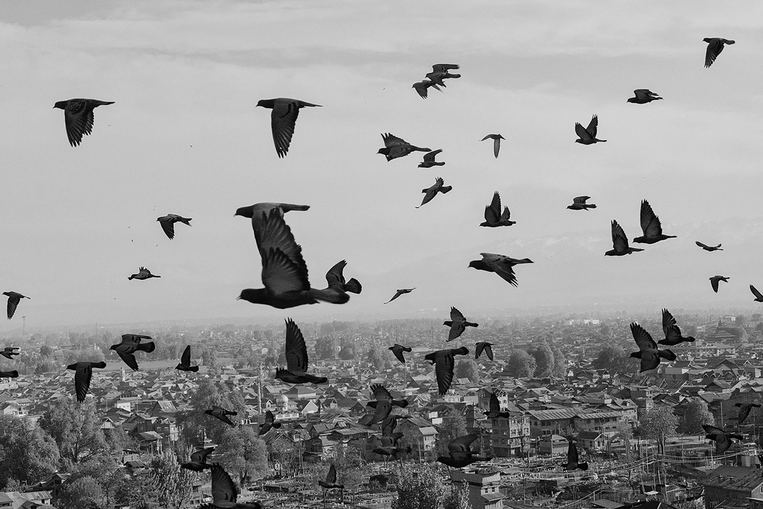 Pigeons soar above Srinagar, Indian-administered Kashmir, seen from a hilltop overlooking the city. In the neighbourhoods below, generations of residents nurture this age-old rooftop tradition. For many, pigeon keeping is more than a pastime, it shows resilience and is a living expression of Kashmir’s enduring cultural identity.