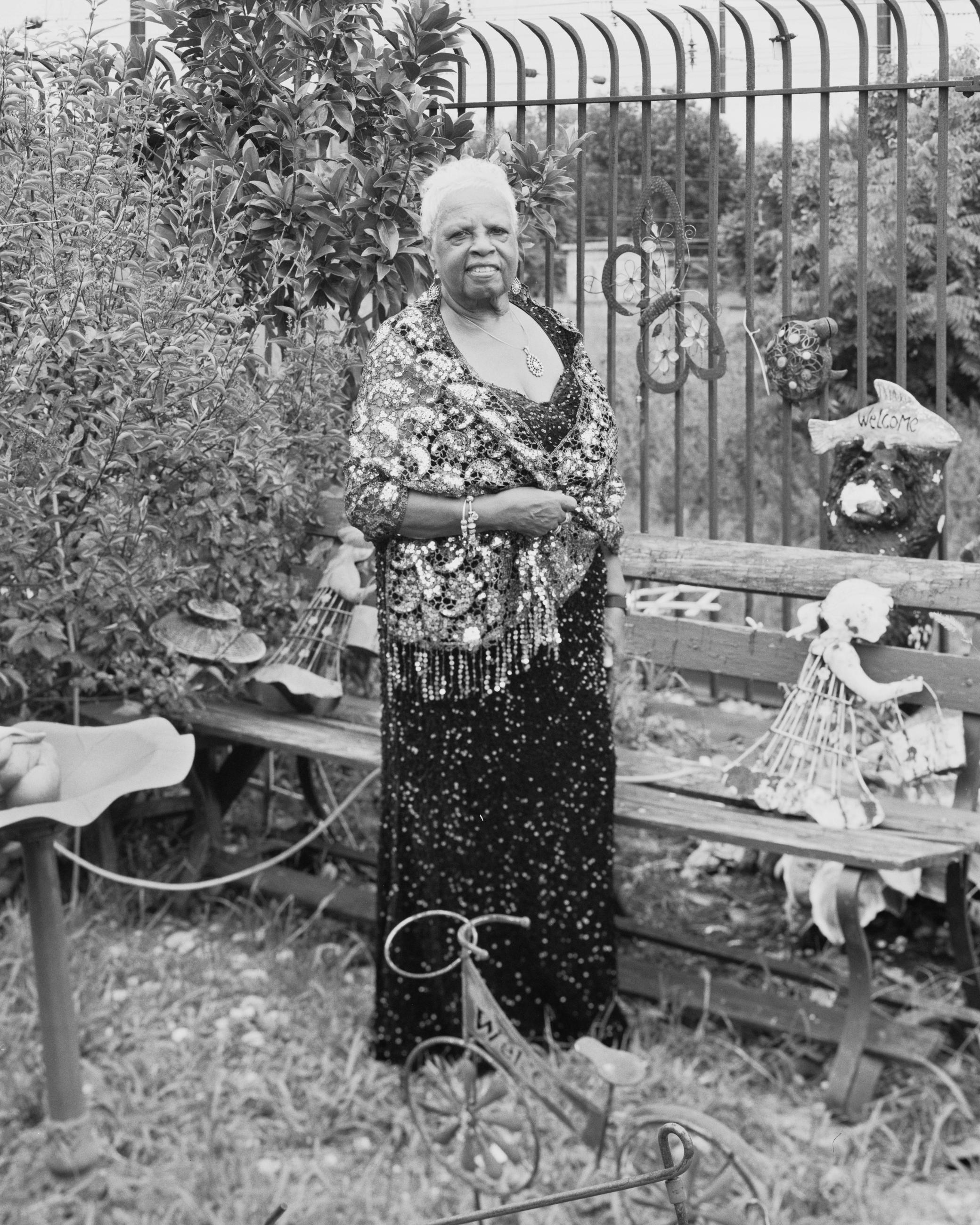 Ci Song always remembers this garden between a road and a fence, with a banner that reads ‘gone but not forgotten.’ This woman was getting ready to attend a wedding, while her nephew watched the photographer trying to capture an image of the garden.
