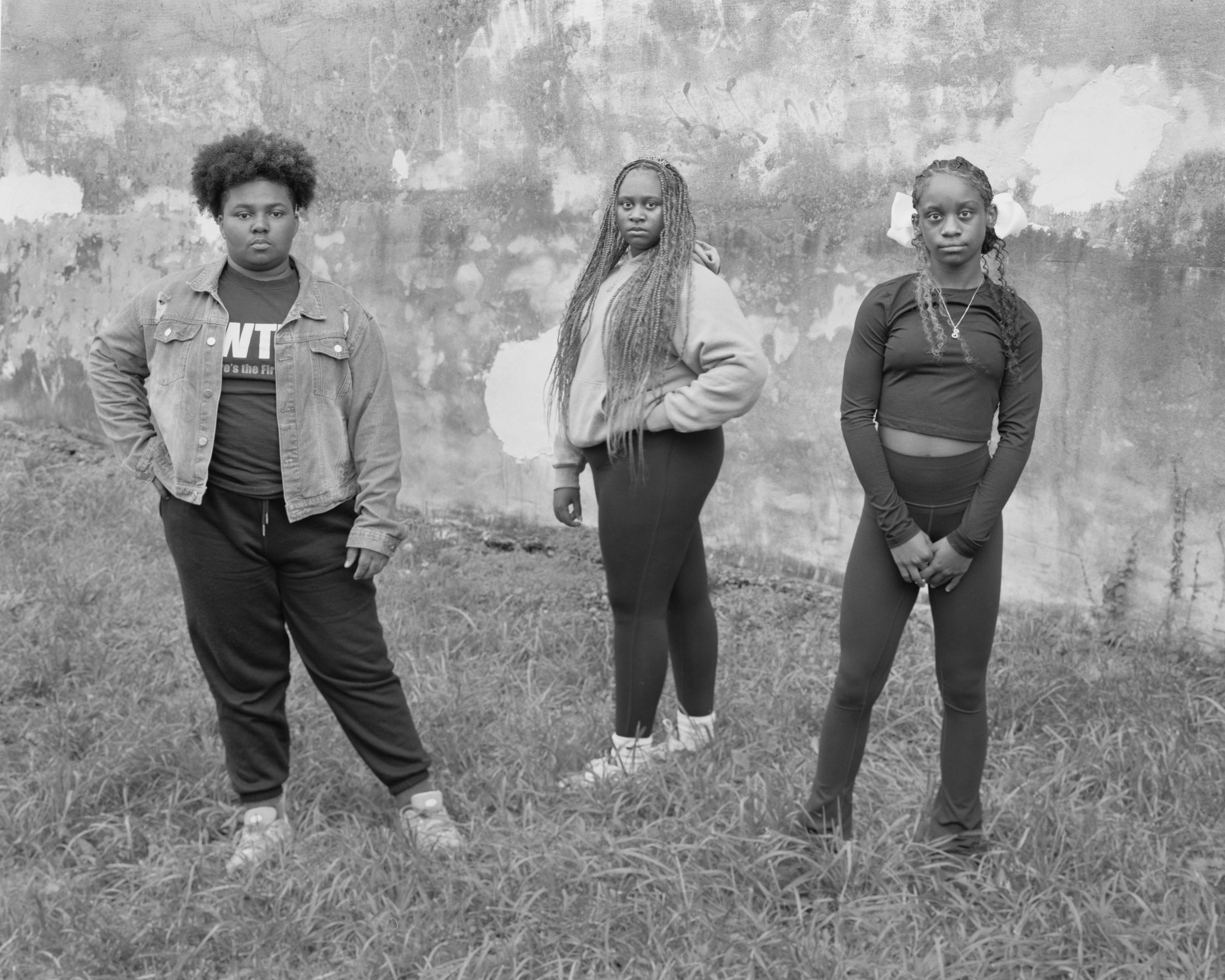 These three friends approached Ci Song and asked him to take a photo of London (middle), because it was her birthday. This is the second photo he took of the group. He found a wall with textures and shapes similar to the bow of the girl on the right, and posed them to create a visual flow within the frame.